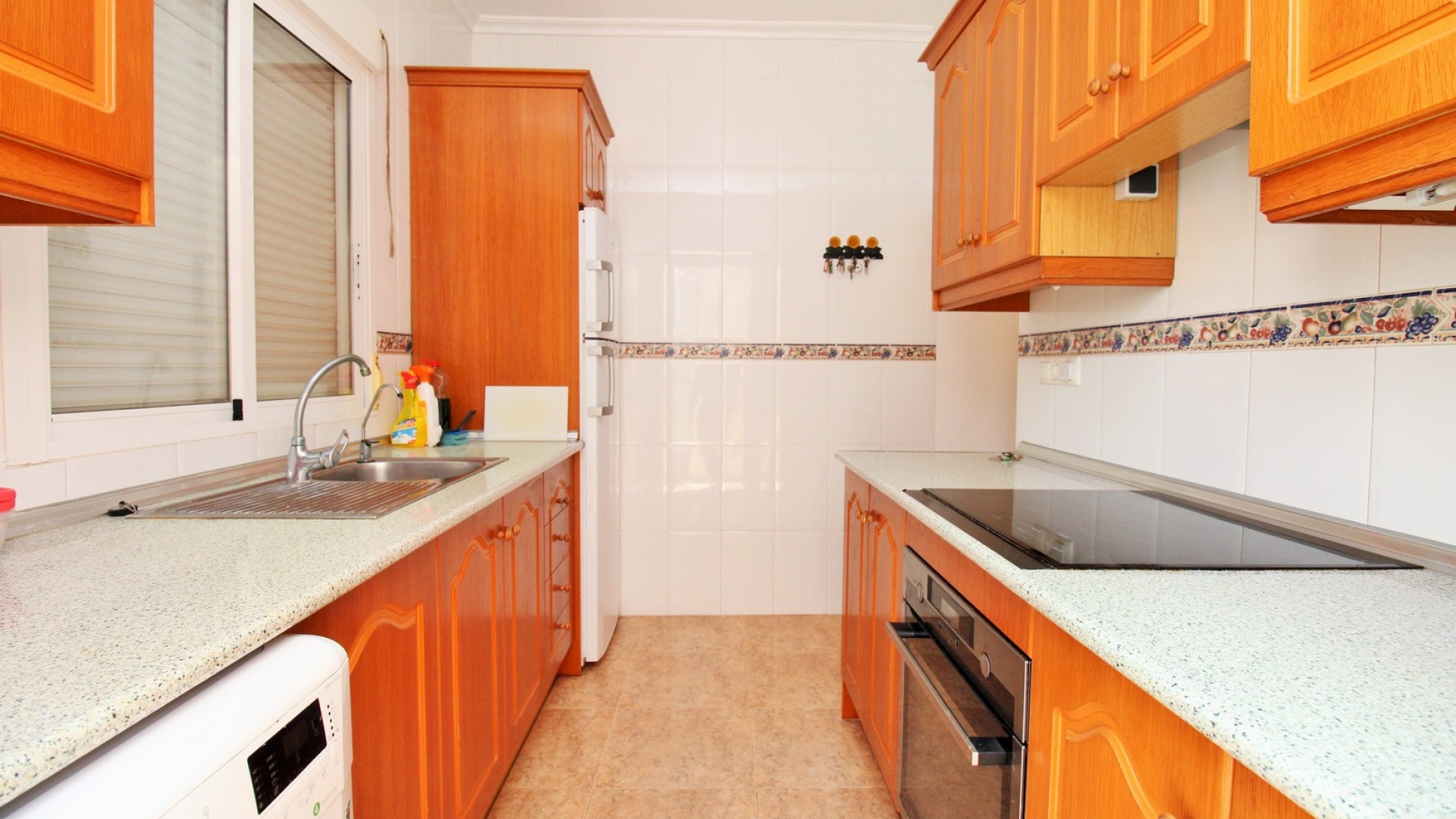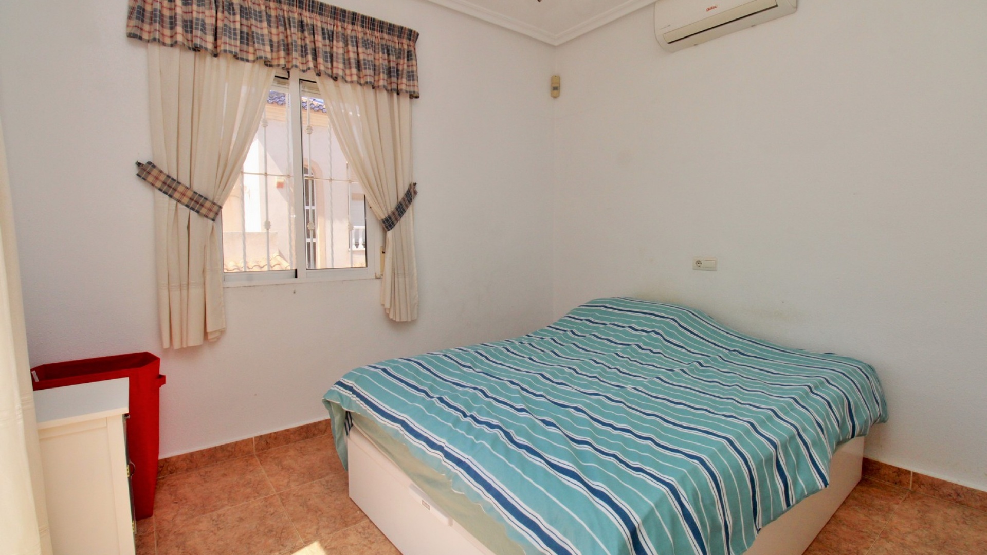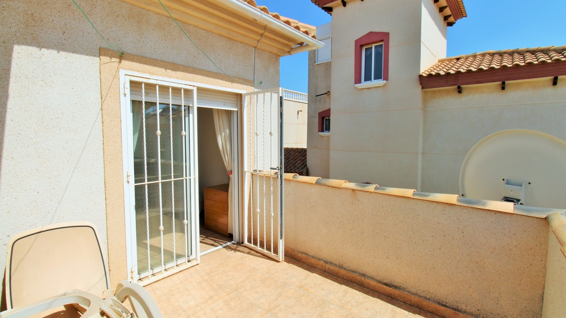 Villa de 3 chambres avec piscine commune à vendre dans le complexe résidentiel de La Pinada à Playa Flamenca. Idéalement située, à quelques pas des bars, restaurants et boutiques, du populaire marché du samedi et du centre commercial Zenia Boulevard, qui compte plus de 155 boutiques, cette villa est nichée au cœur du complexe, à l'écart de la circulation, offrant un havre de paix. La propriété est répartie sur deux niveaux. Au rez-de-chaussée, vous trouverez un jardin carrelé à l'avant avec une allée fermée, l'entrée principale menant à un lumineux salon-salle à manger et une cuisine séparée entièrement équipée avec accès à une terrasse arrière. Ce niveau comprend également une troisième chambre polyvalente, idéale comme chambre d'amis ou bureau. À l'étage, vous trouverez deux chambres doubles avec placards intégrés, toutes deux donnant accès à des balcons privés ensoleillés, ainsi qu'une salle de bains familiale. Vendue meublée avec électroménagers et climatisation. Cette villa offre un excellent rapport qualité-prix et bénéficie d'un emplacement idéal, à proximité de la plage et de nombreux équipements. La Pinada est une charmante résidence bien entretenue avec accès à une piscine commune. Contactez-nous dès aujourd'hui pour organiser votre visite !