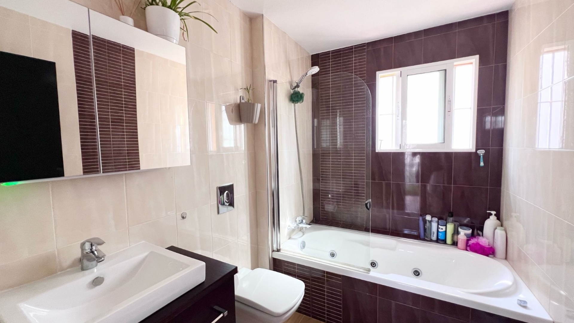 Superbe villa individuelle d'angle avec vue sur les montagnes. Cette superbe villa individuelle d'angle offre une expérience de vie exceptionnelle, avec 4 chambres spacieuses et 3 salles de bains modernes, idéale pour les familles ou ceux qui ont besoin d'espace supplémentaire. La propriété comprend également un appartement séparé, idéal pour les invités ou les locations, ajoutant polyvalence et valeur. Profitez de votre propre piscine privée, conçue pour la détente et les loisirs, agrémentée d'une généreuse terrasse pour les repas en plein air et les loisirs. Le balcon vitré offre une vue panoramique imprenable sur les montagnes environnantes, offrant un cadre paisible et pittoresque pour la vie quotidienne. Cette villa allie harmonieusement luxe et confort, ce qui en fait l'investissement idéal pour quiconque recherche la maison de ses rêves.