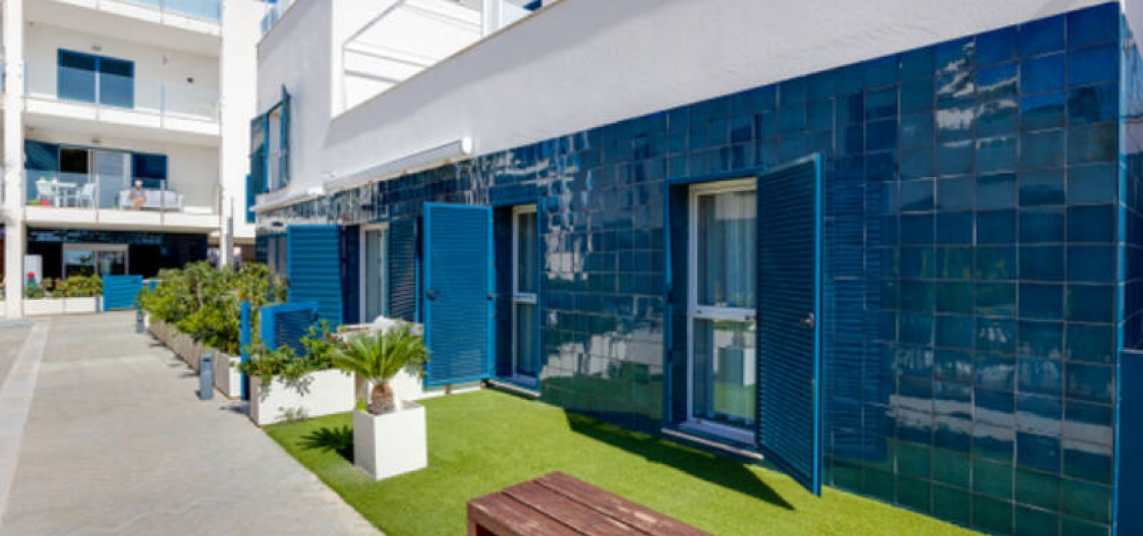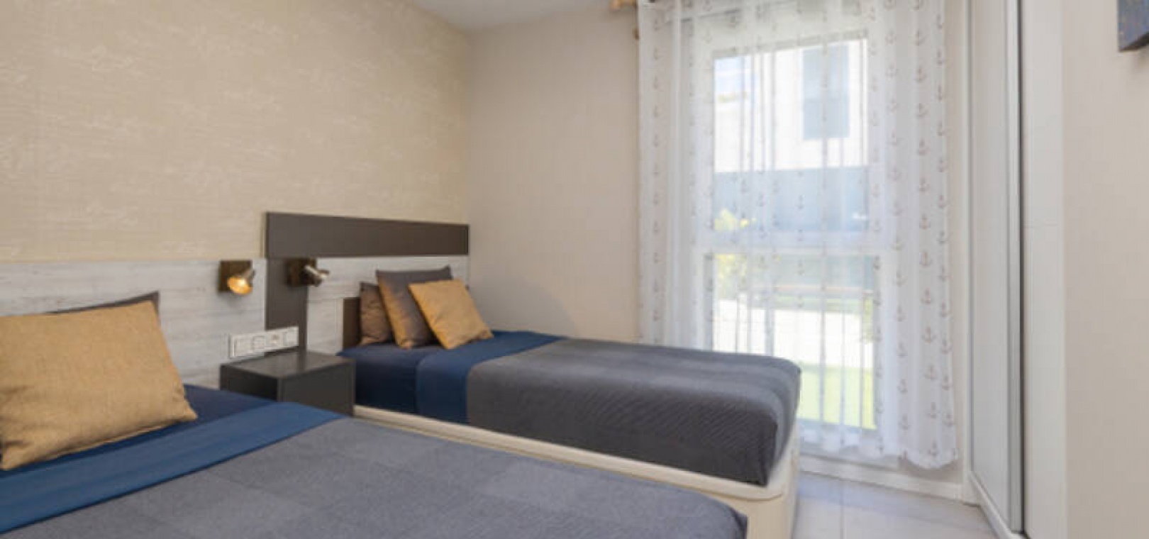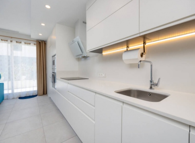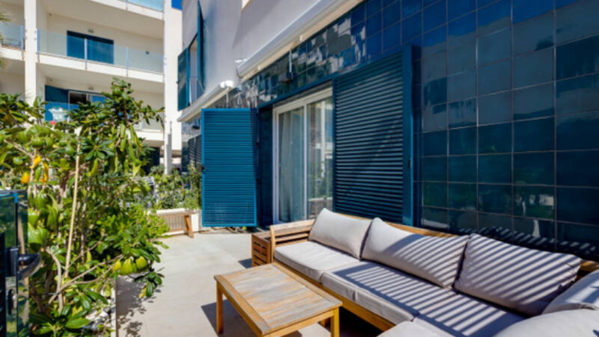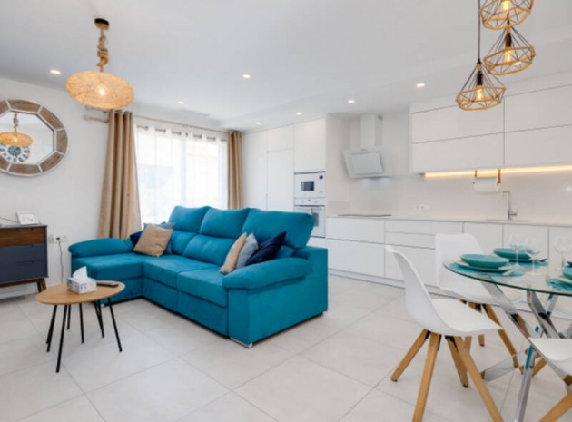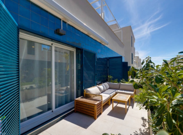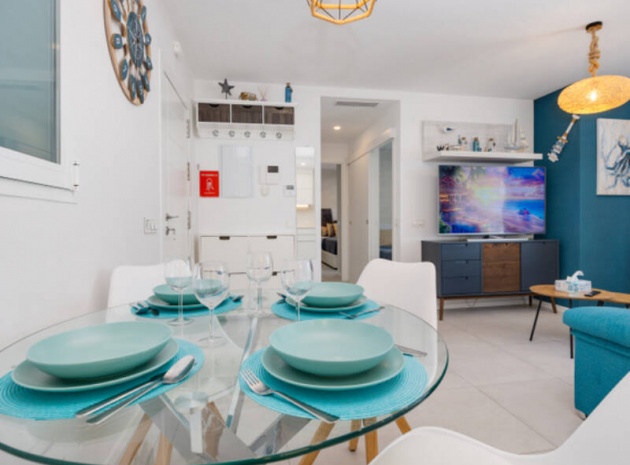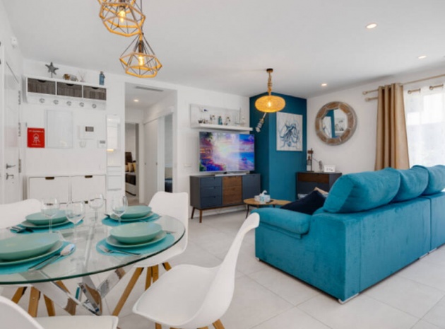 Appartement de 2 chambres et 2 salles de bain, exposé plein sud, situé au rez-de-chaussée de la résidence Turquesa del Mar, à Playa Flamenca, sur la Costa Blanca Sud.