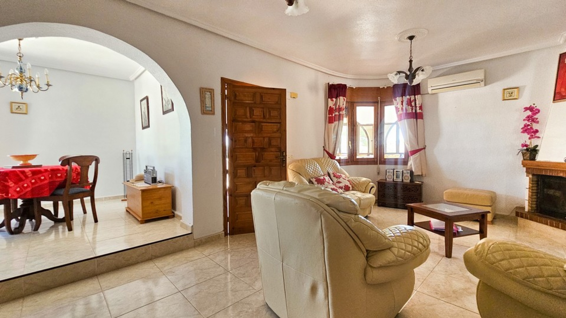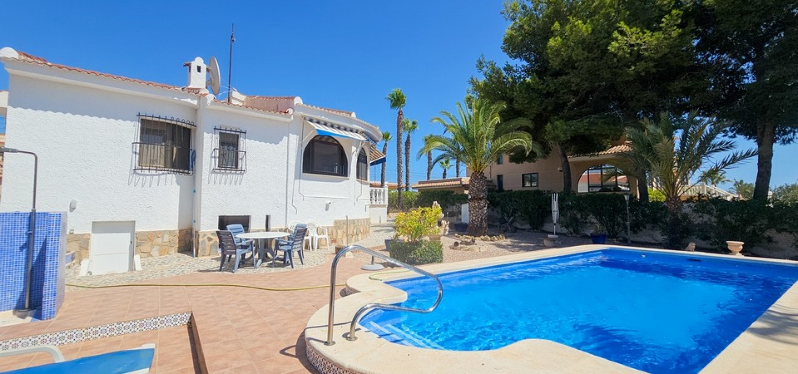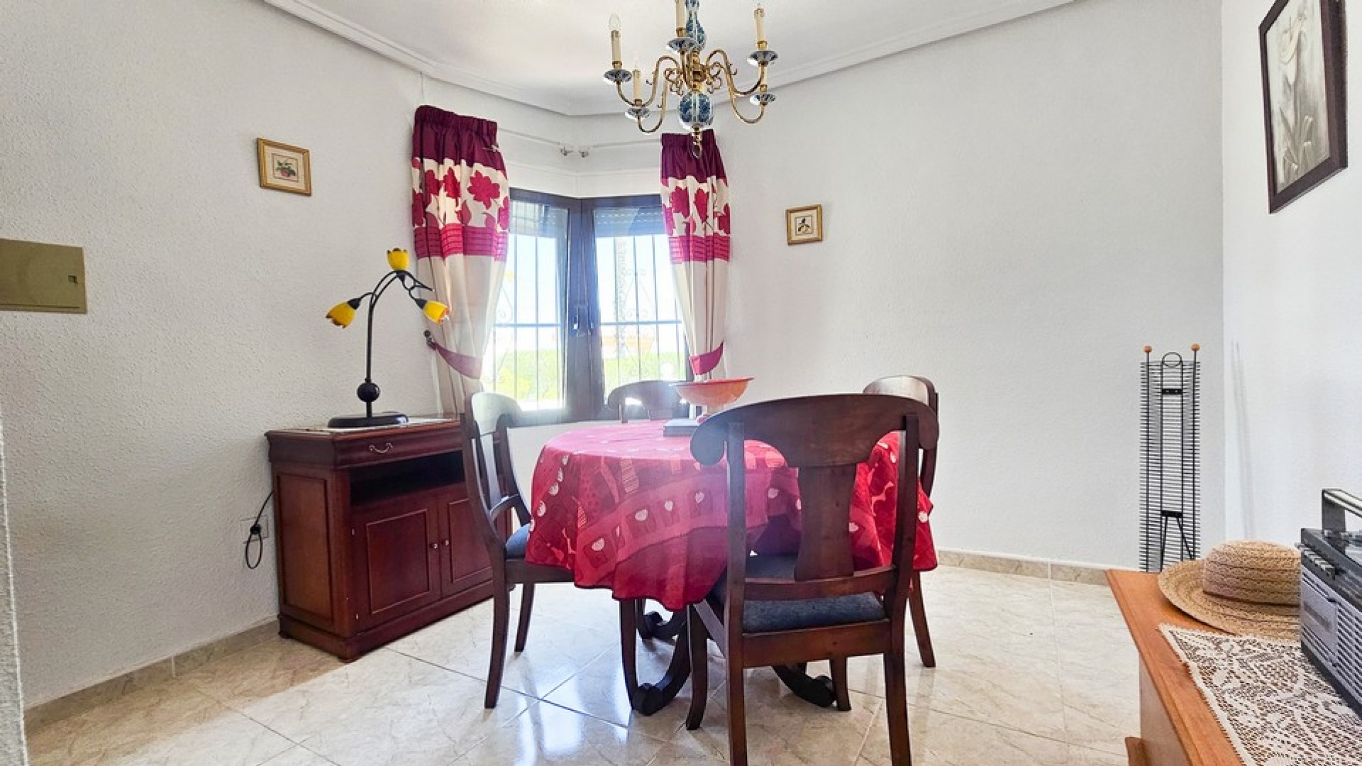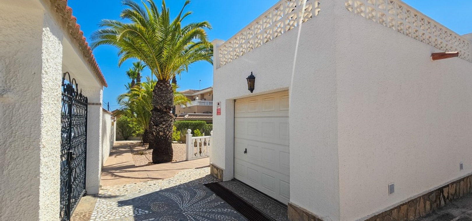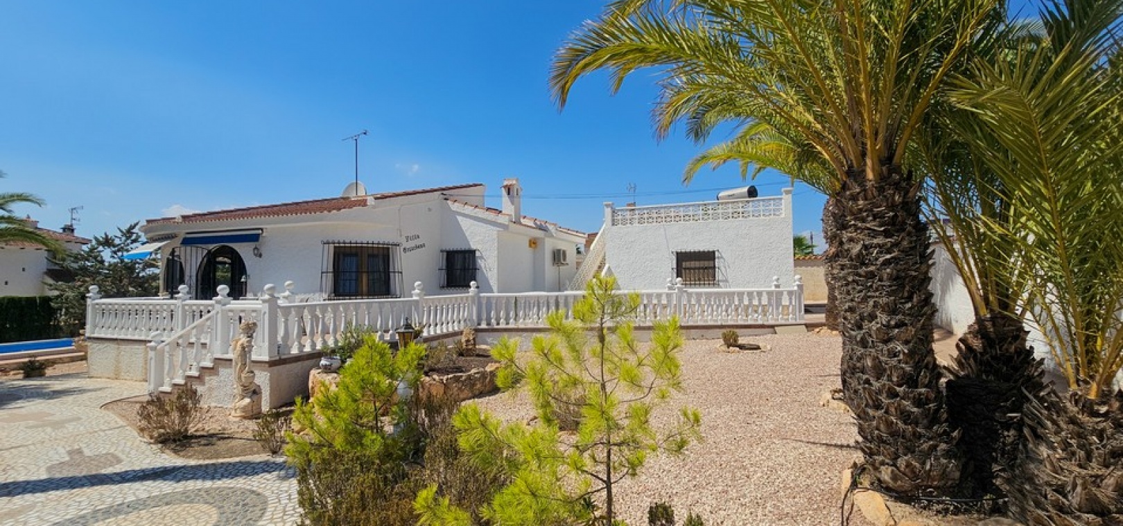 Construite en 1987, cette propriété de 3 chambres et 2 salles de bains est située sur un terrain de 1 057 m². Elle dispose d'un parking extérieur avec garage, d'un grand espace barbecue, d'une piscine privée et d'un solarium. À l'intérieur, tout est de plain-pied. Le séjour, aux dimensions généreuses, est accessible par une grande terrasse vitrée et dessert toutes les autres pièces, dont un coin repas séparé. La maison est entièrement climatisée et équipée d'un chauffe-eau solaire. Le grand terrain comprend un espace barbecue sur le côté de la maison, suffisamment grand pour accueillir facilement 8 ou 10 personnes, ainsi que divers espaces pour profiter du soleil ou de l'ombre. Située dans l'un des quartiers les plus prisés de Ciudad Quesada, cette maison offre une atmosphère très tranquille ; le centre-ville n'est qu'à 10/15 minutes à pied. Certes, cette propriété aurait besoin d'un peu d'entretien, mais son prix est excellent, et son terrain, qui coûterait au moins le double du prix demandé s'il s'agissait d'une construction neuve. Nous pensons que c'est une bonne affaire. Venez le voir et vous faire votre propre opinion.