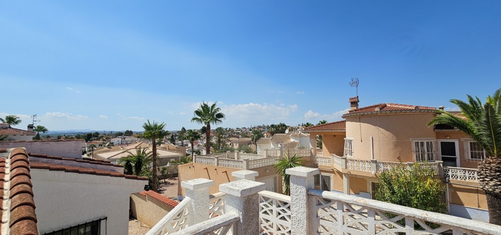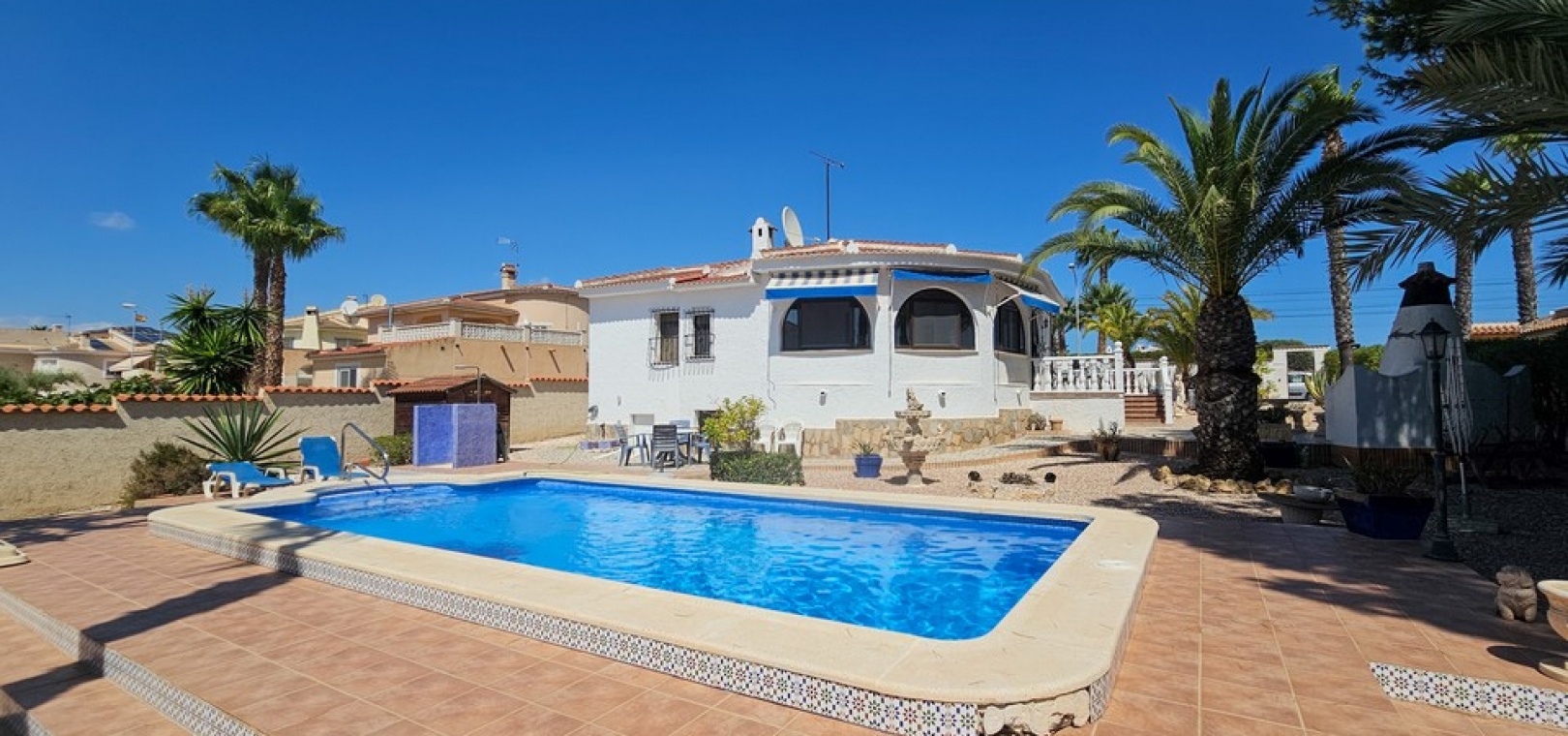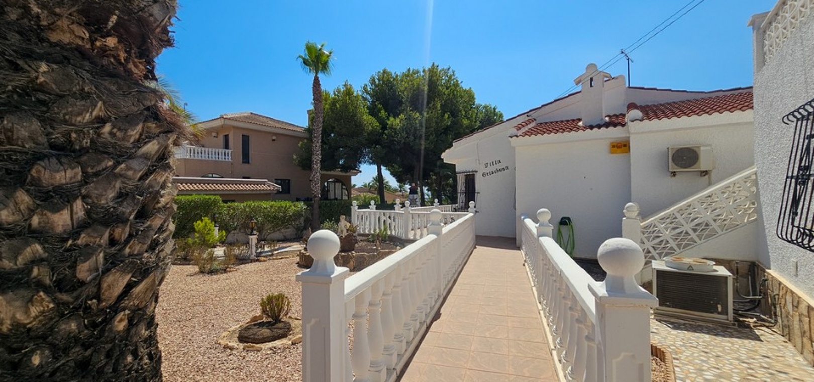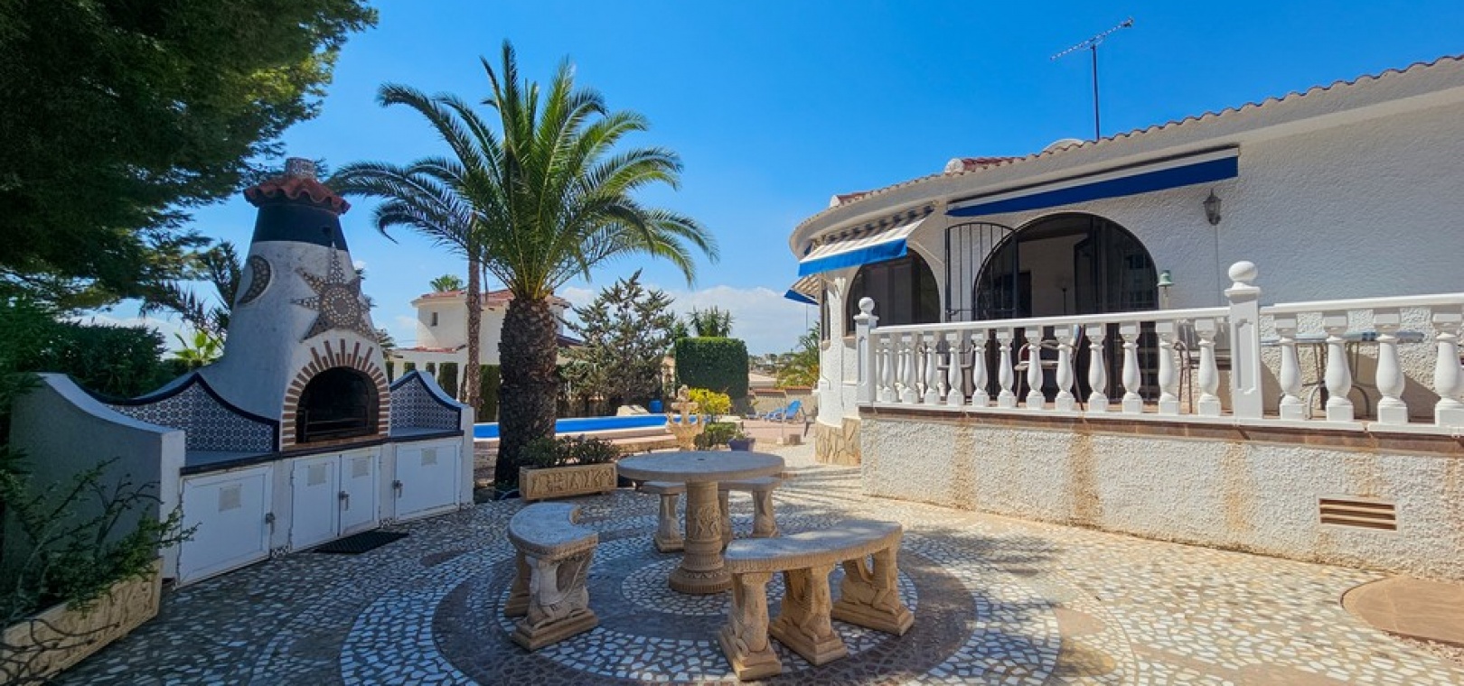 Construite en 1987, cette propriété de 3 chambres et 2 salles de bains est située sur un terrain de 1 057 m². Elle dispose d'un parking extérieur avec garage, d'un grand espace barbecue, d'une piscine privée et d'un solarium. À l'intérieur, tout est de plain-pied. Le séjour, aux dimensions généreuses, est accessible par une grande terrasse vitrée et dessert toutes les autres pièces, dont un coin repas séparé. La maison est entièrement climatisée et équipée d'un chauffe-eau solaire. Le grand terrain comprend un espace barbecue sur le côté de la maison, suffisamment grand pour accueillir facilement 8 ou 10 personnes, ainsi que divers espaces pour profiter du soleil ou de l'ombre. Située dans l'un des quartiers les plus prisés de Ciudad Quesada, cette maison offre une atmosphère très tranquille ; le centre-ville n'est qu'à 10/15 minutes à pied. Certes, cette propriété aurait besoin d'un peu d'entretien, mais son prix est excellent, et son terrain, qui coûterait au moins le double du prix demandé s'il s'agissait d'une construction neuve. Nous pensons que c'est une bonne affaire. Venez le voir et vous faire votre propre opinion.