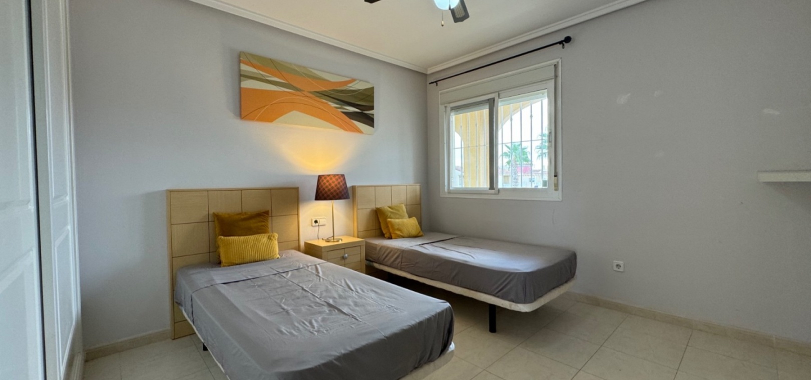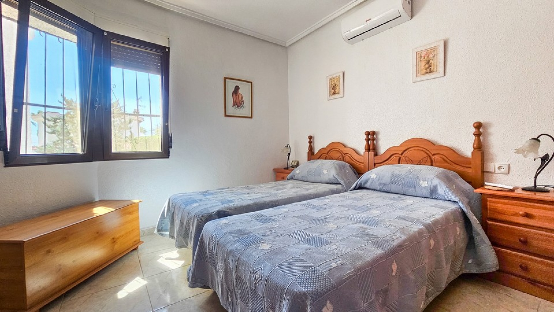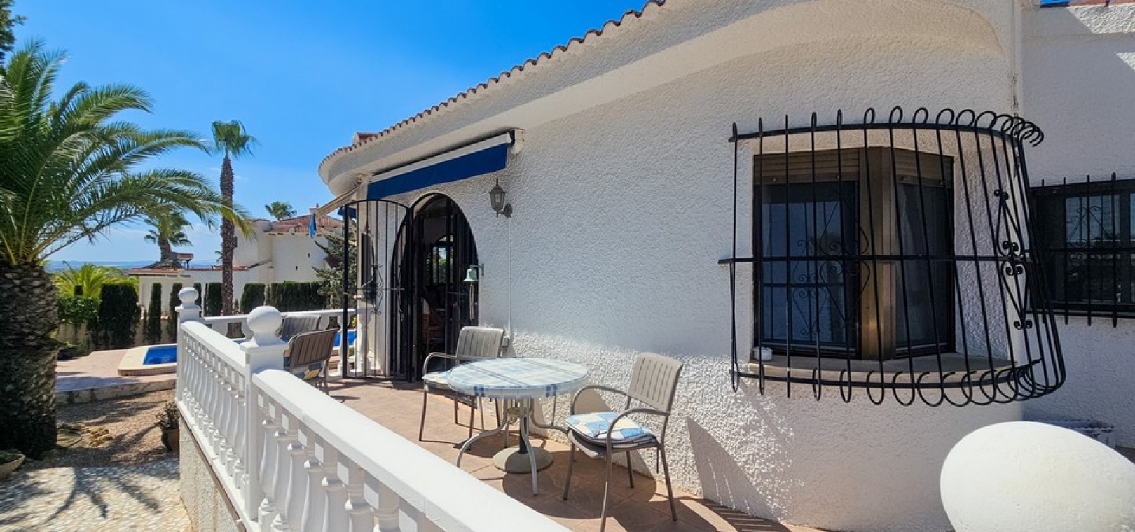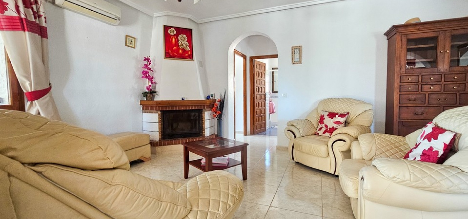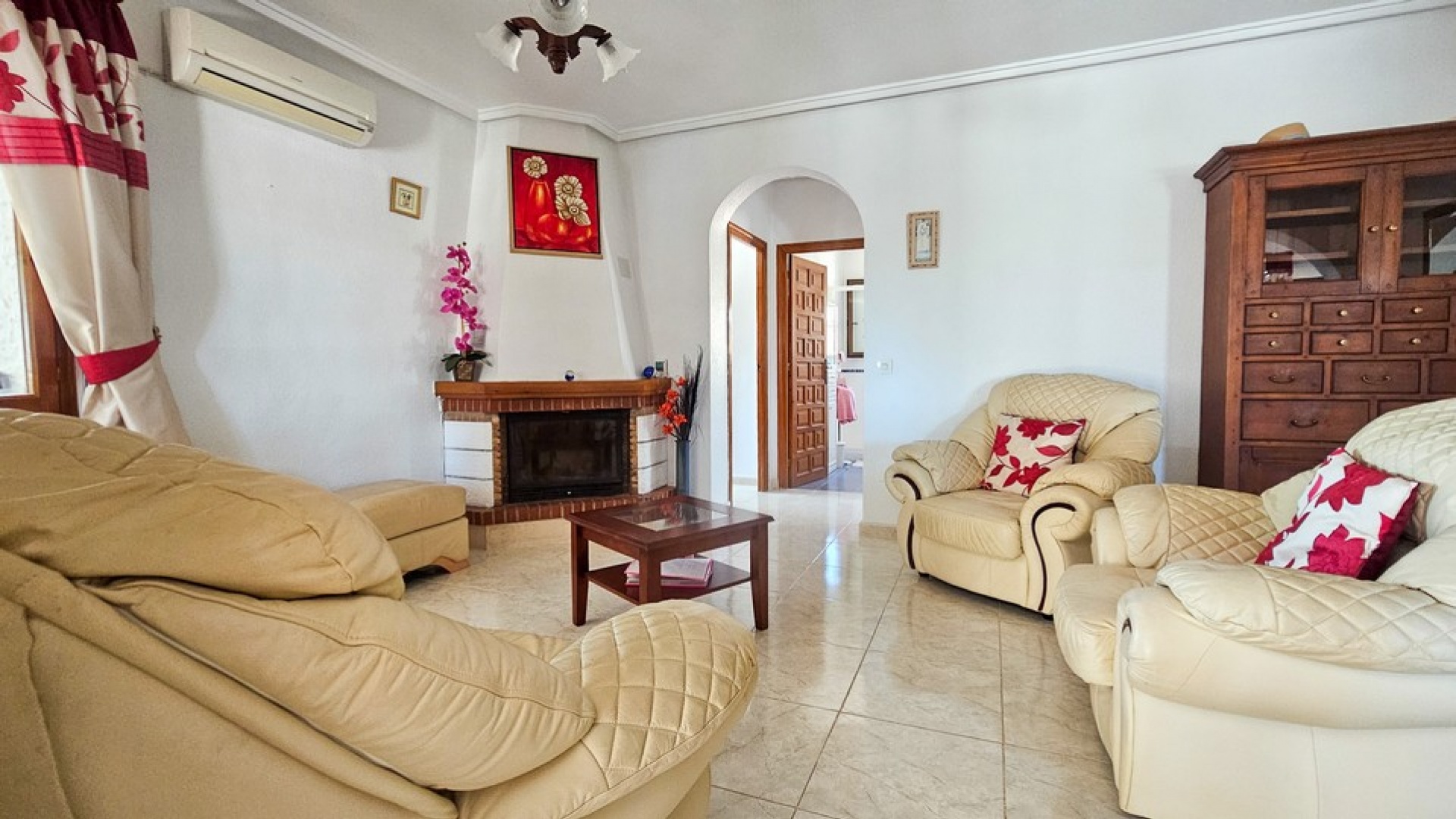 Construite en 1987, cette propriété de 3 chambres et 2 salles de bains est située sur un terrain de 1 057 m². Elle dispose d'un parking extérieur avec garage, d'un grand espace barbecue, d'une piscine privée et d'un solarium. À l'intérieur, tout est de plain-pied. Le séjour, aux dimensions généreuses, est accessible par une grande terrasse vitrée et dessert toutes les autres pièces, dont un coin repas séparé. La maison est entièrement climatisée et équipée d'un chauffe-eau solaire. Le grand terrain comprend un espace barbecue sur le côté de la maison, suffisamment grand pour accueillir facilement 8 ou 10 personnes, ainsi que divers espaces pour profiter du soleil ou de l'ombre. Située dans l'un des quartiers les plus prisés de Ciudad Quesada, cette maison offre une atmosphère très tranquille ; le centre-ville n'est qu'à 10/15 minutes à pied. Certes, cette propriété aurait besoin d'un peu d'entretien, mais son prix est excellent, et son terrain, qui coûterait au moins le double du prix demandé s'il s'agissait d'une construction neuve. Nous pensons que c'est une bonne affaire. Venez le voir et vous faire votre propre opinion.