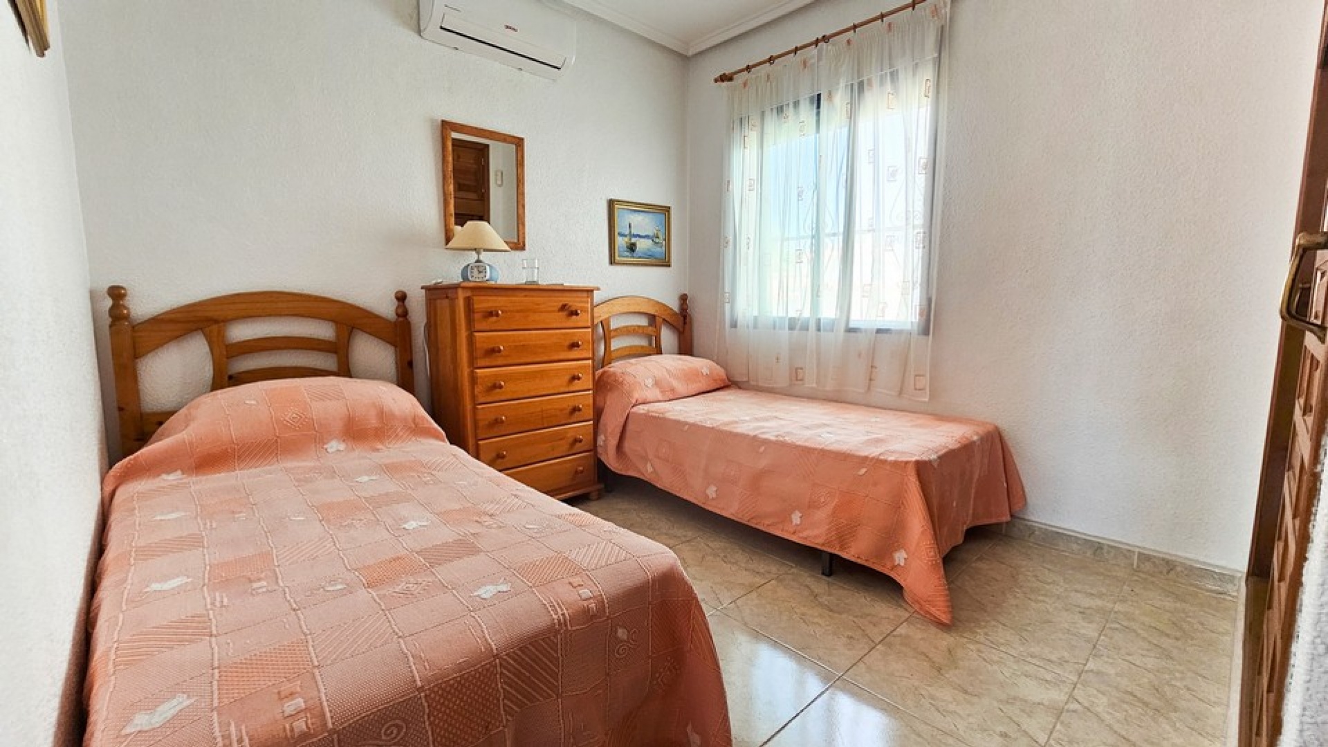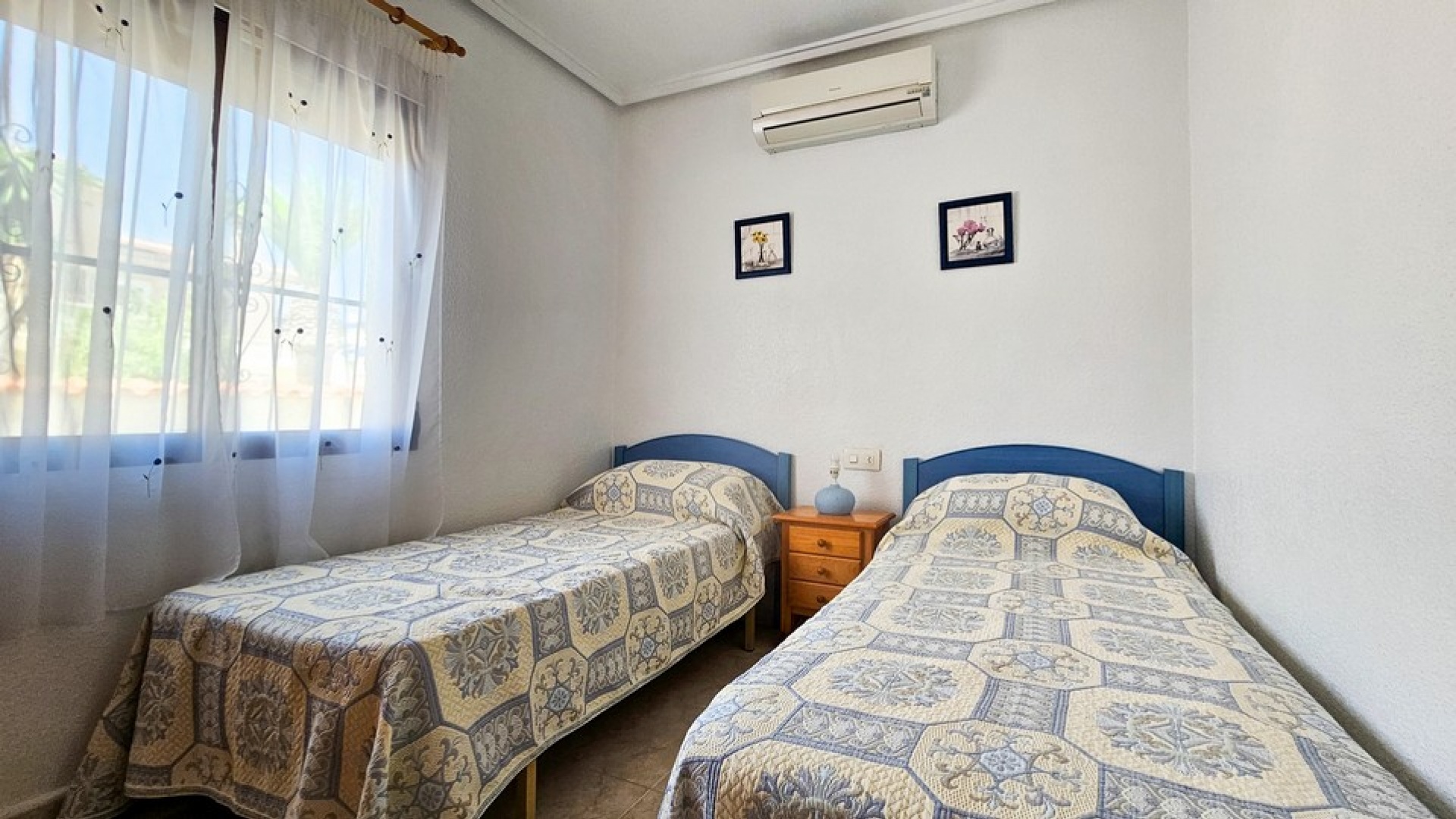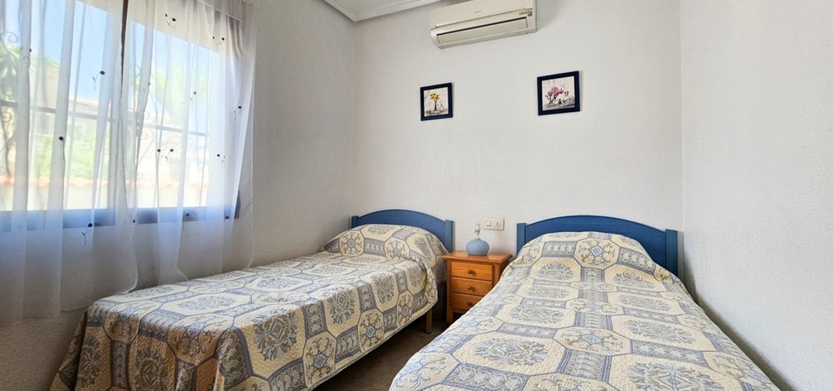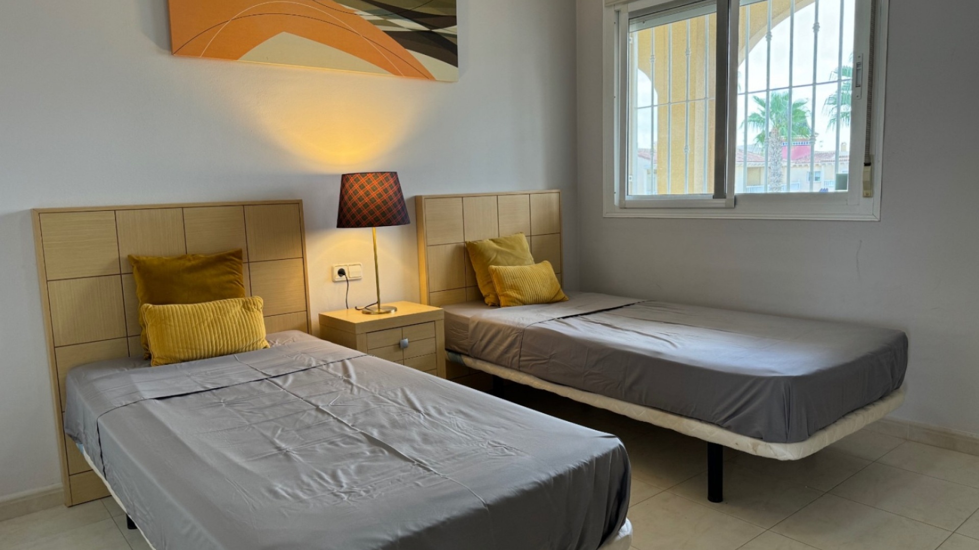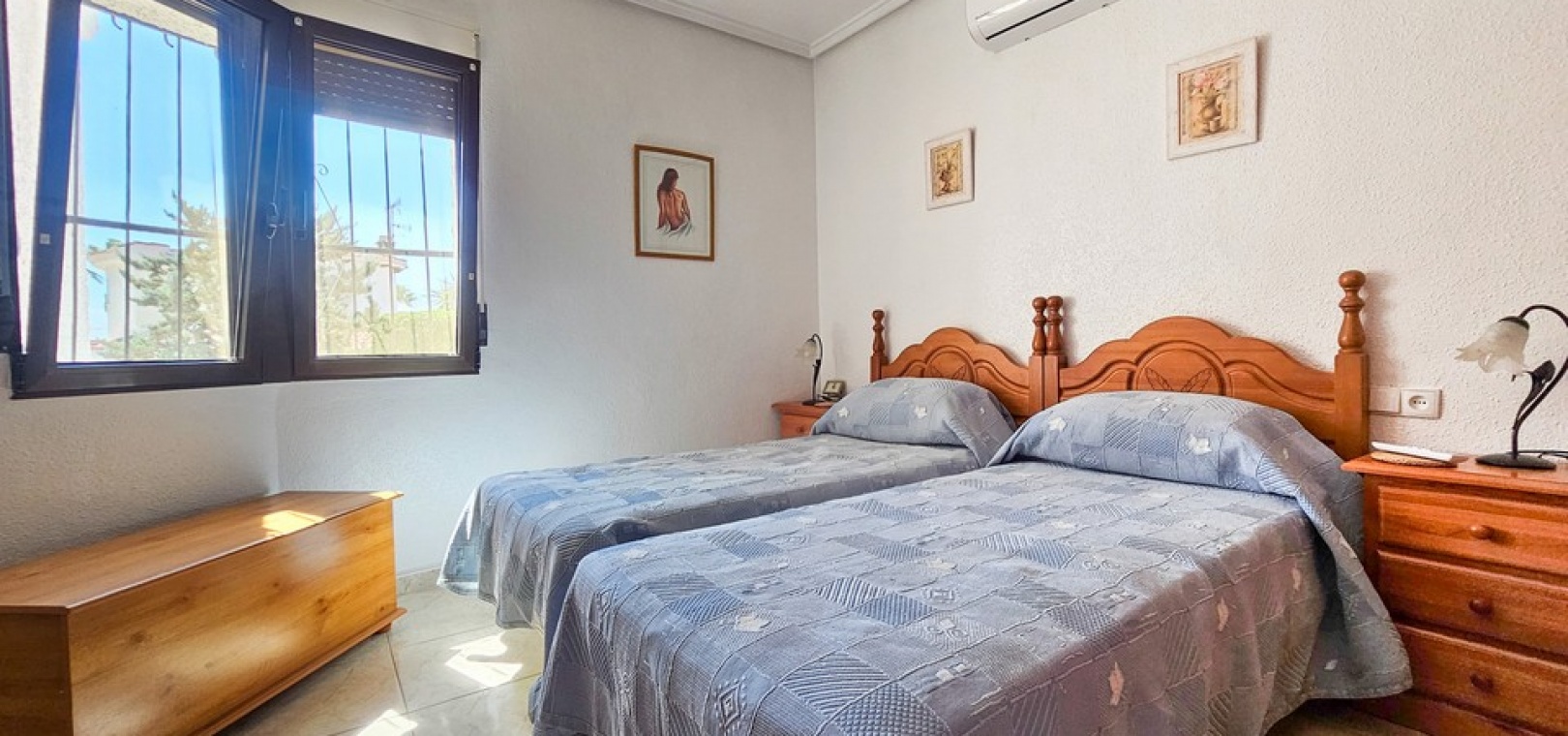 Construite en 1987, cette propriété de 3 chambres et 2 salles de bains est située sur un terrain de 1 057 m². Elle dispose d'un parking extérieur avec garage, d'un grand espace barbecue, d'une piscine privée et d'un solarium. À l'intérieur, tout est de plain-pied. Le séjour, aux dimensions généreuses, est accessible par une grande terrasse vitrée et dessert toutes les autres pièces, dont un coin repas séparé. La maison est entièrement climatisée et équipée d'un chauffe-eau solaire. Le grand terrain comprend un espace barbecue sur le côté de la maison, suffisamment grand pour accueillir facilement 8 ou 10 personnes, ainsi que divers espaces pour profiter du soleil ou de l'ombre. Située dans l'un des quartiers les plus prisés de Ciudad Quesada, cette maison offre une atmosphère très tranquille ; le centre-ville n'est qu'à 10/15 minutes à pied. Certes, cette propriété aurait besoin d'un peu d'entretien, mais son prix est excellent, et son terrain, qui coûterait au moins le double du prix demandé s'il s'agissait d'une construction neuve. Nous pensons que c'est une bonne affaire. Venez le voir et vous faire votre propre opinion.
