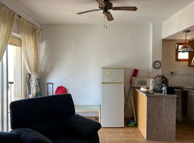 Appartement d'une chambre, situé à seulement 50 m de la mer, avec toutes les commodités accessibles à pied, dont une ligne de bus régulière pour Torrevieja. Il comprend un salon/salle à manger et une cuisine ouverte, une chambre double, une salle de bains et un balcon avec vue sur la mer. Le bien nécessite des travaux de rénovation, d'où son prix.