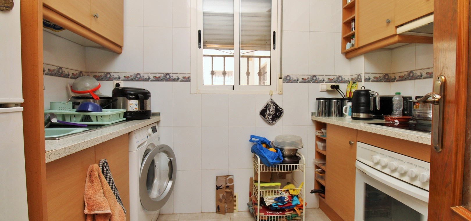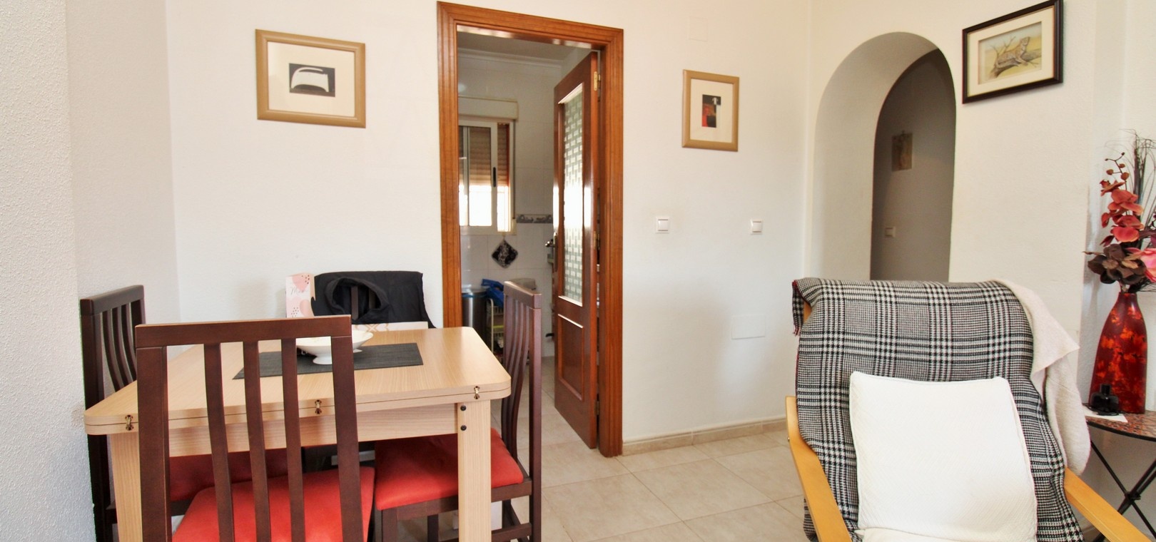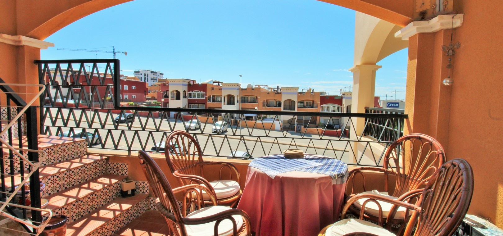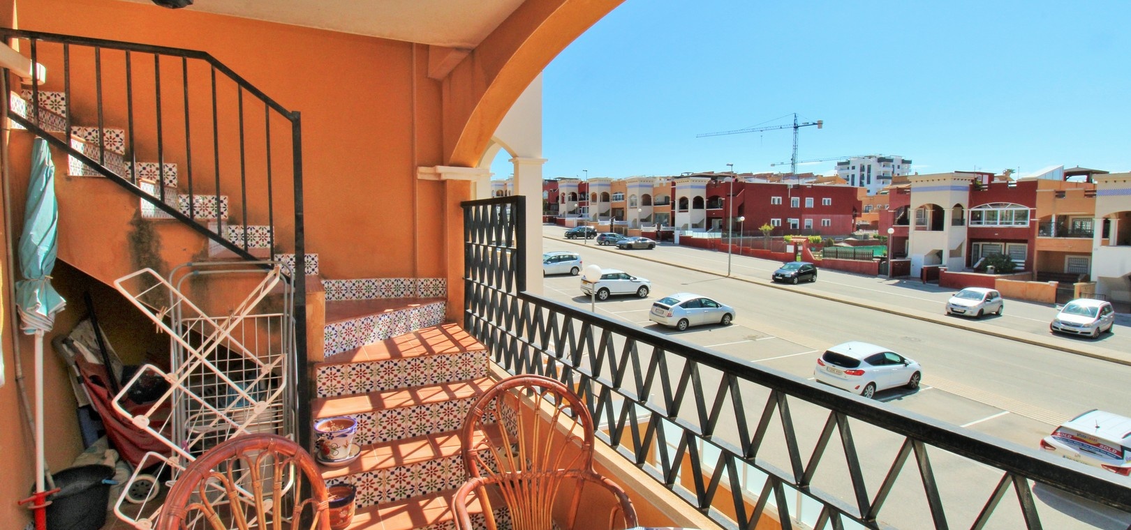 Lumineux appartement en attique exposé plein sud, comprenant deux chambres, deux salles de bains et un vaste solarium privé sur le toit, situé dans le quartier recherché de Dream Hills II à Los Altos, Orihuela Costa. Profitez d'un ensoleillement permanent grâce à son orientation idéale et à l'accès à une piscine commune et à un parking. Idéalement situé, à quelques pas d'un supermarché et du centre commercial Via Park III, qui propose une variété de bars, restaurants et boutiques. L'appartement comprend un salon et une salle à manger spacieux, une cuisine séparée à l'arrière, deux chambres avec placards intégrés et deux salles de bains. Des placards de rangement supplémentaires se trouvent dans le couloir. Les portes-fenêtres du salon s'ouvrent sur un balcon couvert exposé sud, avec un escalier extérieur menant à l'impressionnant solarium privé sur le toit, idéal pour les barbecues, les réceptions ou tout simplement pour profiter du soleil. Vendu meublé et équipé de la climatisation. Dream Hills II se situe à la frontière entre Orihuela Costa et Torrevieja (Los Balcones), offrant un excellent accès à l'autoroute AP-7 et à la route côtière N-332. L'aéroport d'Alicante est à moins de 45 minutes en voiture. Visionnage anticipé recommandé.