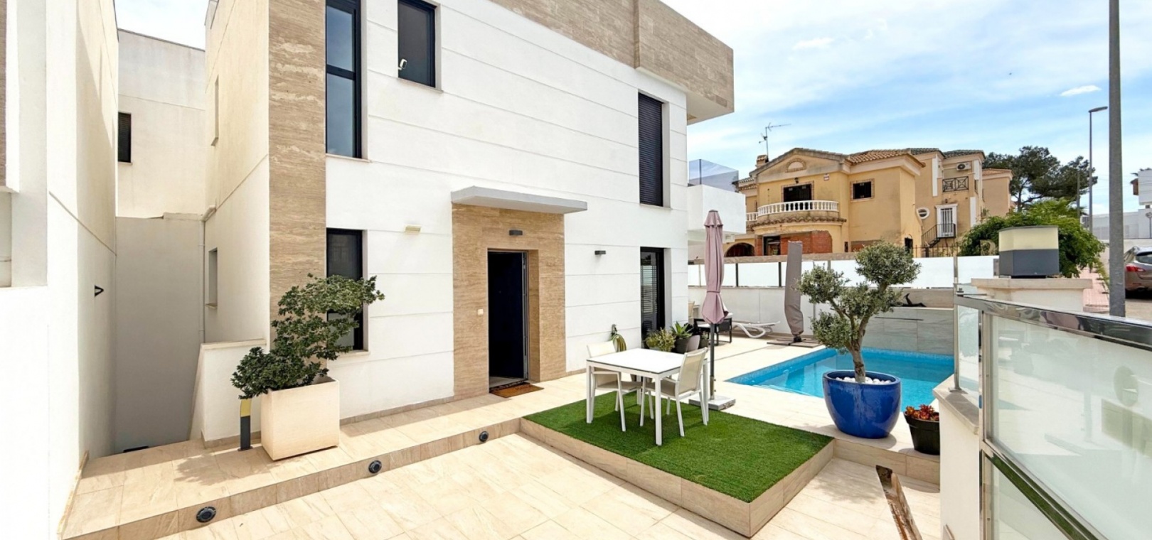 Située dans le quartier recherché de Villamartin, cette superbe villa individuelle moderne allie à la perfection luxe, confort et fonctionnalité. Implantée sur un grand terrain d'angle, elle dispose d'une piscine privée avec pré-installation pour le chauffage, idéale pour en profiter toute l'année.