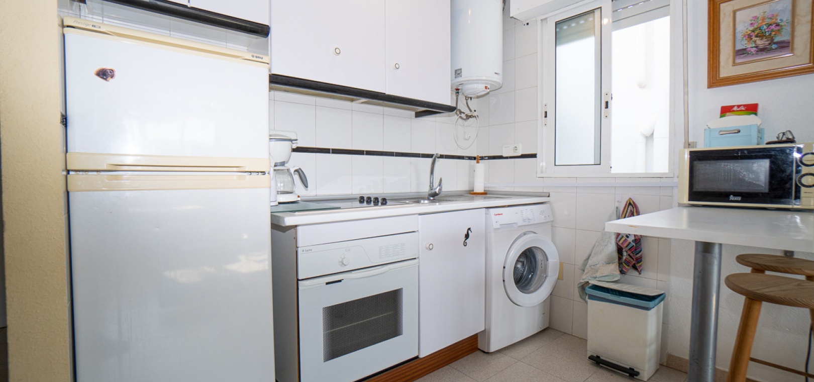 Studio idéalement situé à vendre, à deux pas de la plage d'Acequion à Torrevieja. Très lumineux, il offre une vue dégagée sur le parc et le lac salé de Torrevieja. Il comprend un spacieux séjour-salle à manger avec cuisine ouverte, une salle de bains et une terrasse vitrée, actuellement utilisée comme chambre. Vendu entièrement meublé et clé en main. Situé dans une résidence sécurisée avec ascenseur et piscine réservée aux résidents, il bénéficie d'un emplacement idéal, à quelques pas de toutes les commodités et à seulement 200 mètres des plages de Torrevieja. Contactez-nous dès aujourd'hui pour une visite.