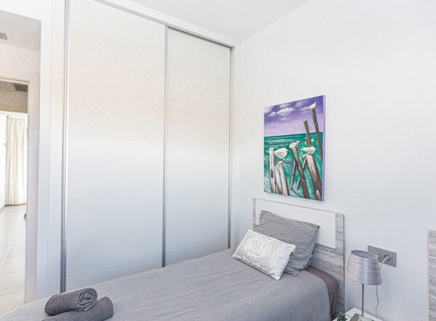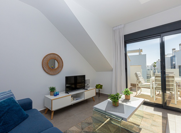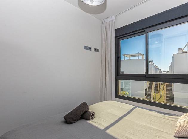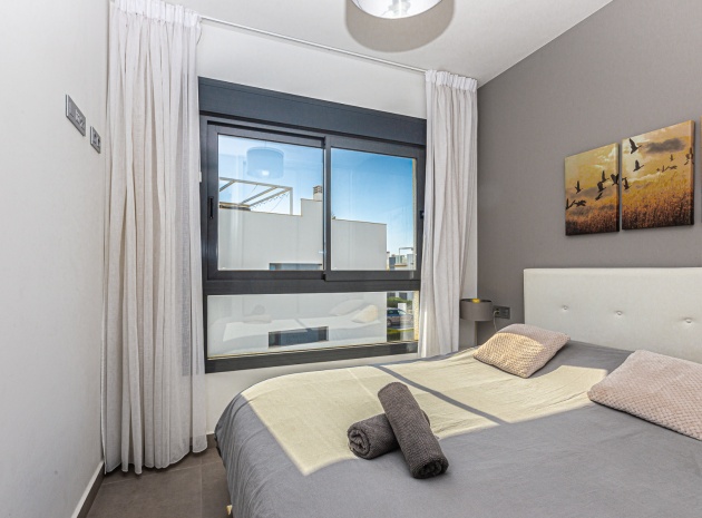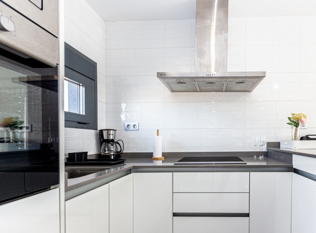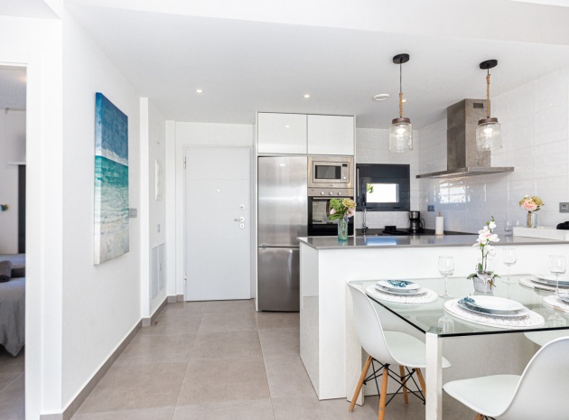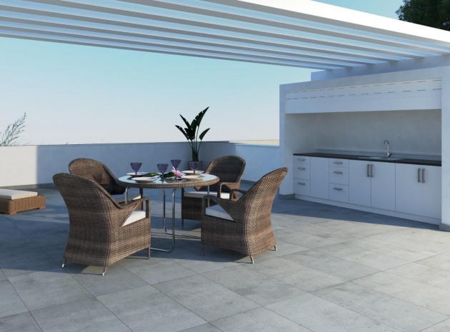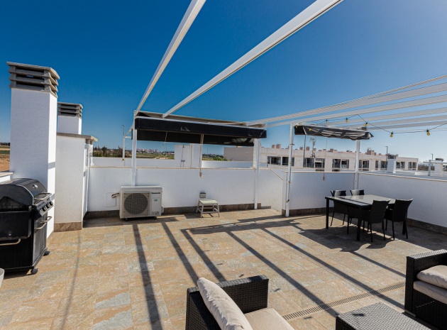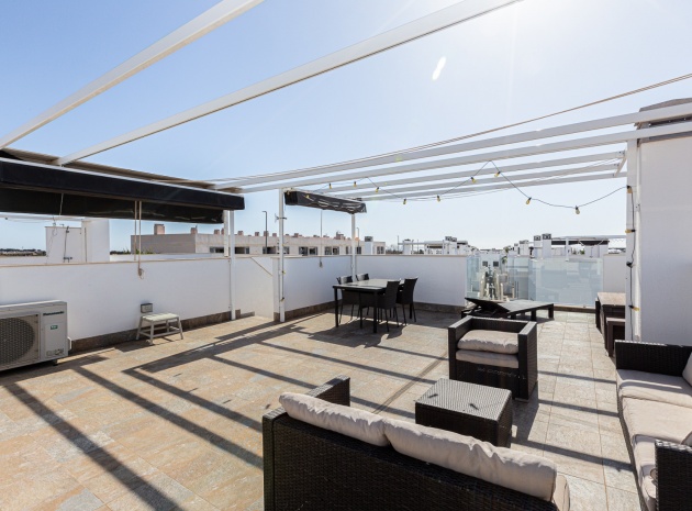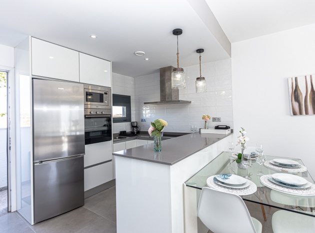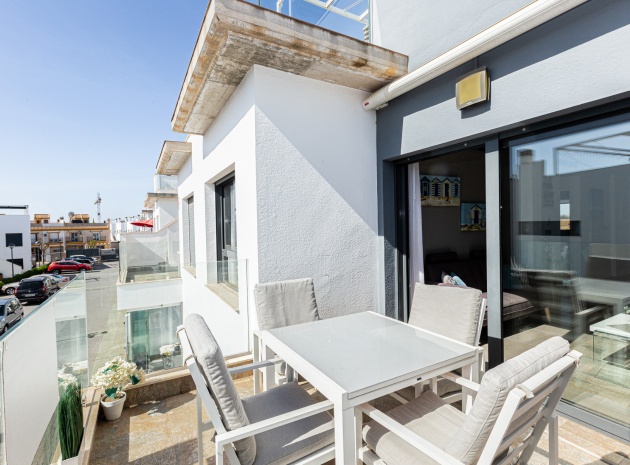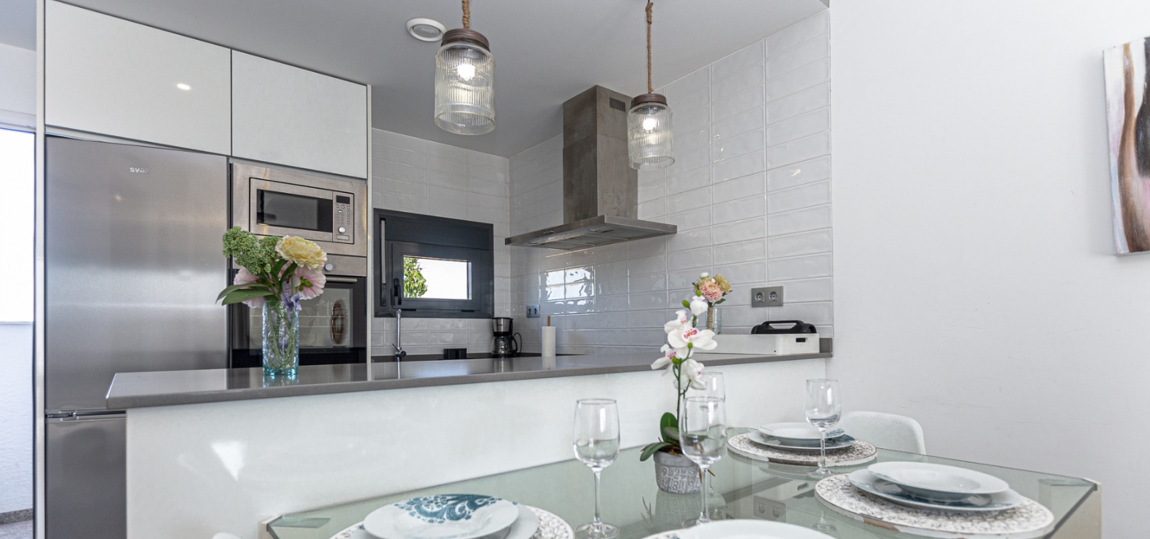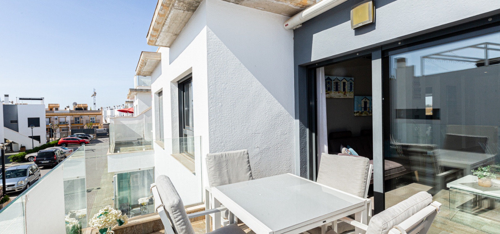 Nous vous présentons ce charmant appartement situé au dernier étage du prestigieux complexe résidentiel Lamar II à Pilar de la Horadada. Doté d'une entrée indépendante par un escalier extérieur, vous serez accueilli par une lumineuse cuisine américaine avec bar à droite, ouverte sur un spacieux salon-salle à manger. De là, vous accéderez à une terrasse ensoleillée et à un escalier menant à un solarium privé équipé d'un store, idéal pour profiter du soleil toute l'année.
