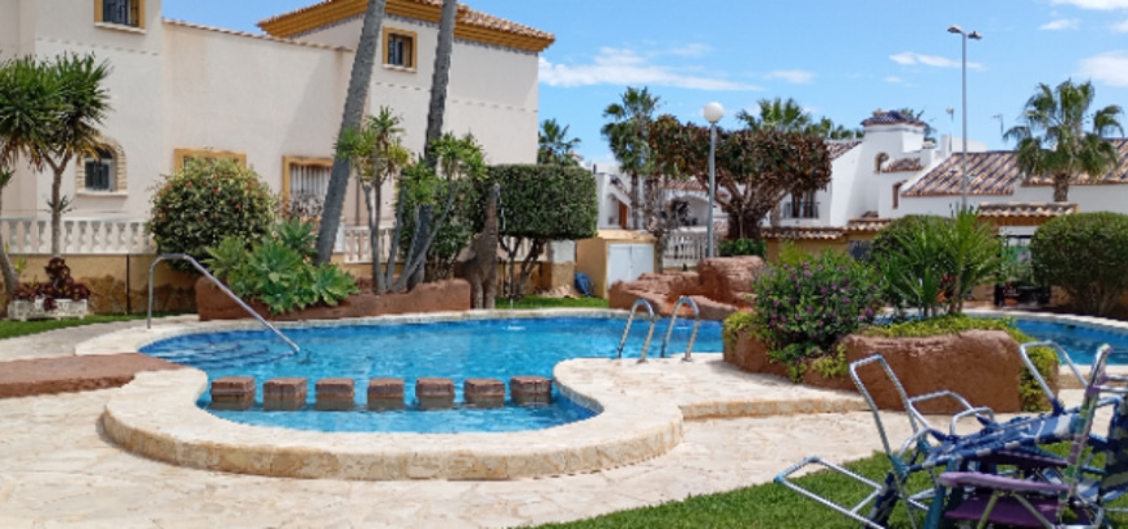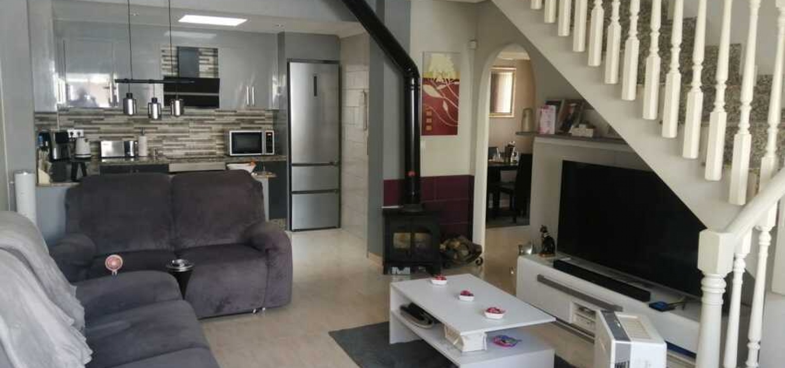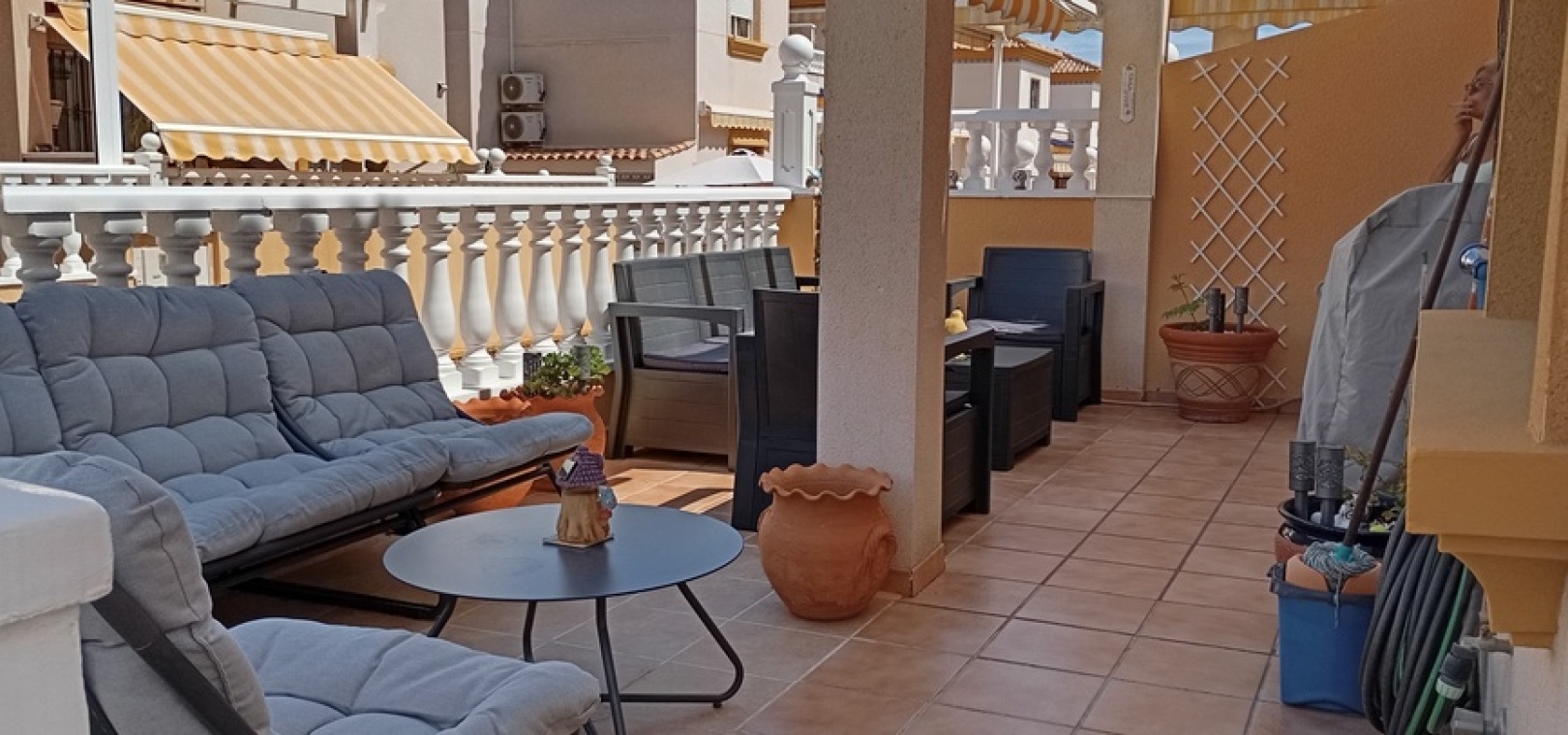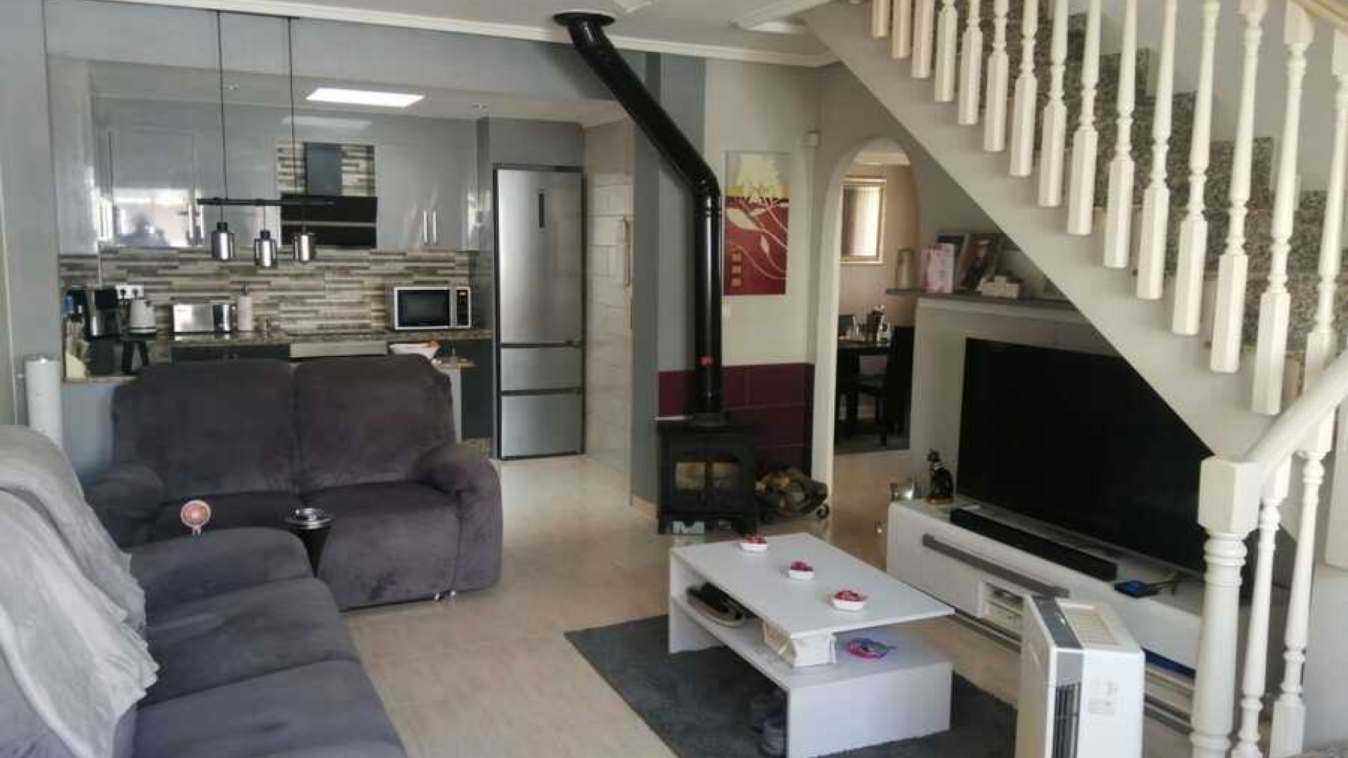 Nous sommes ravis de mettre en vente cette villa de 3 chambres de style quadruple dans le très recherché programme immobilier PAU8, Residencial Inspiration II. Idéalement située dans une impasse, elle offre une intimité optimale et un cadre paisible. La propriété comprend une cuisine ouverte à l'avant avec un grand salon/salle à manger, une salle de bains familiale et deux chambres à deux lits, toutes deux avec placards intégrés. Un escalier intérieur mène à une troisième chambre double avec placards intégrés, salle de douche et accès au solarium. À l'extérieur, la propriété bénéficie d'une spacieuse terrasse, d'une pergola et d'un parking. La propriété est entièrement climatisée et, pour les nuits d'hiver, d'un poêle à bois entièrement fonctionnel. Villamartin offre un large choix de services et d'équipements, ainsi que les magnifiques parcours de golf de Las Ramblas, Las Colinas, Campoamor et le célèbre parcours de Camo De Golf Villamartin, qui a accueilli l'Open de la Méditerranée en 1994. La place a été décorée avec goût et est agrémentée de palmiers qui offrent un refuge temporaire à certaines espèces d'oiseaux, dont le perroquet à collier africain ! La place est ouverte toute l'année et offre un large choix de services, notamment des boutiques, des banques, des supermarchés, des bars et des restaurants. Un service de bus régulier permet de rejoindre facilement le reste de la côte et les grandes villes de Guardamar del Segura et Torrevieja. L'école El Limonar, une école internationale qui enseigne en anglais et en espagnol, est également située à Villamartin. Grâce à sa proximité avec deux aéroports (Alicante et Covera, tous deux à environ 45 minutes), Villamartin est un lieu idéal pour les vacances comme pour une résidence permanente.