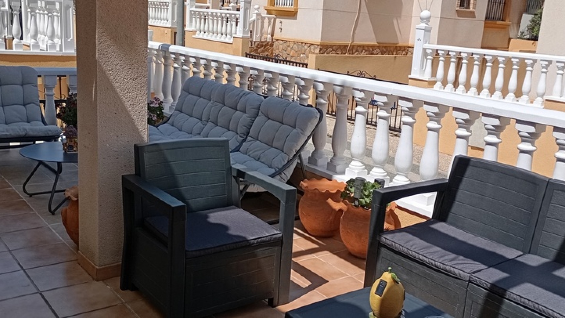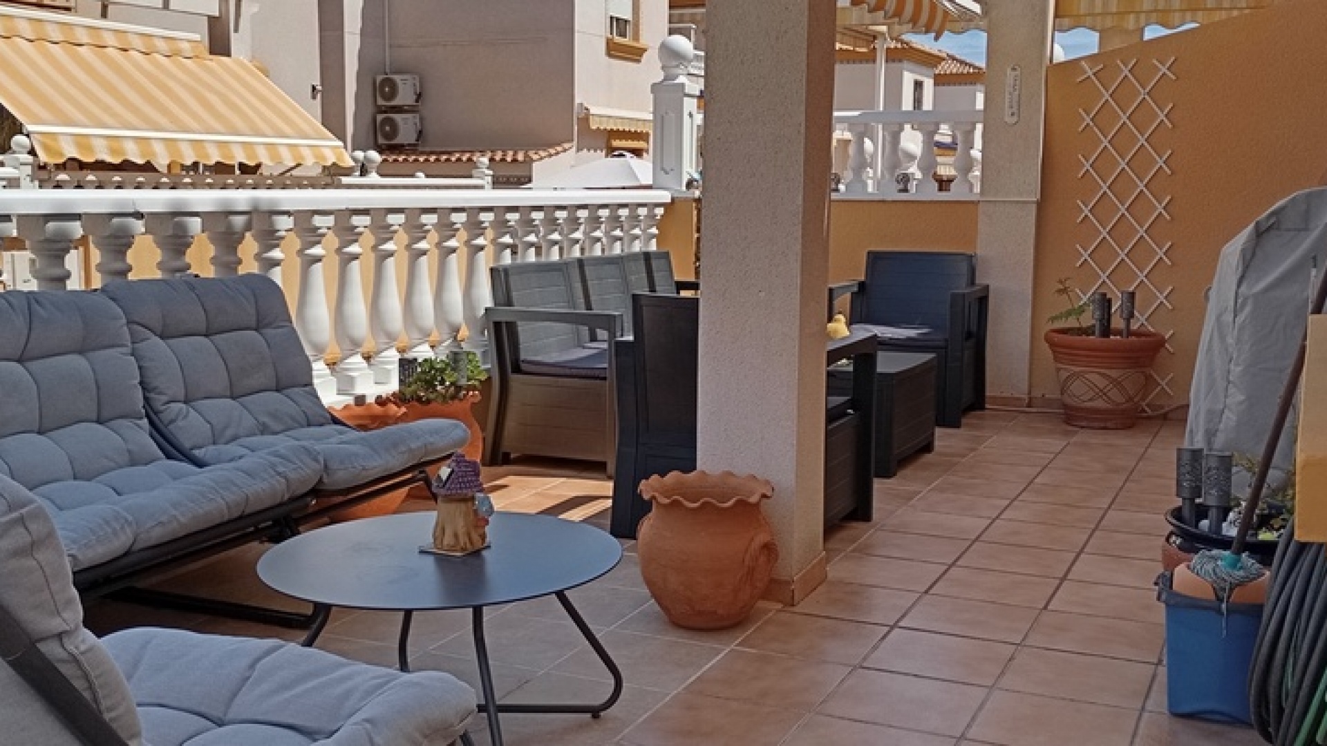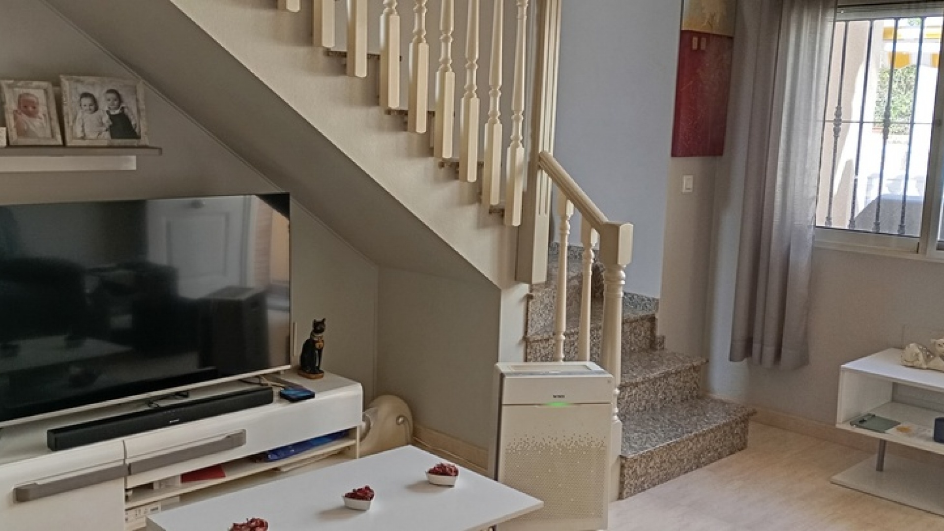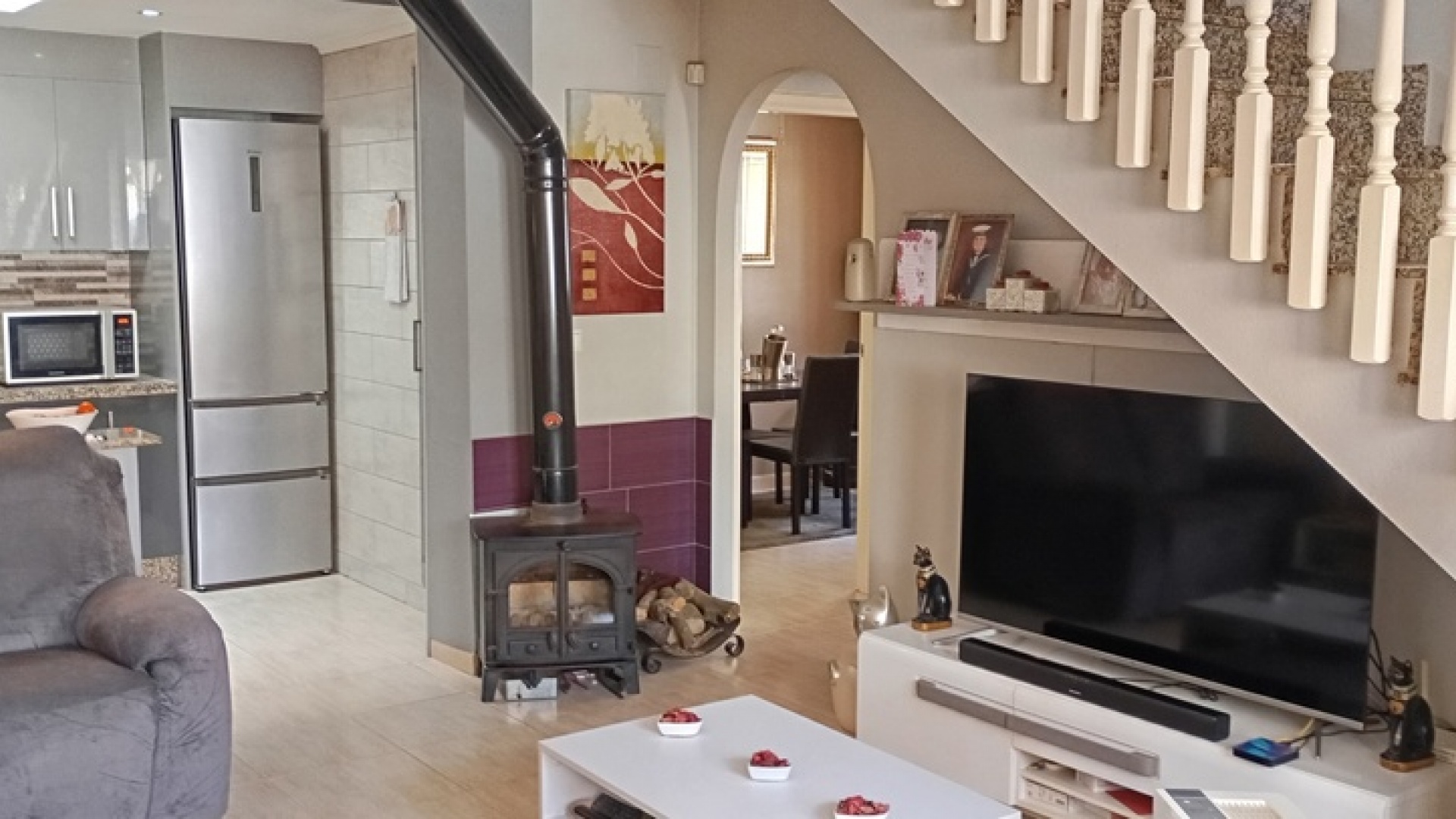 Nous sommes ravis de mettre en vente cette villa de 3 chambres de style quadruple dans le très recherché programme immobilier PAU8, Residencial Inspiration II. Idéalement située dans une impasse, elle offre une intimité optimale et un cadre paisible. La propriété comprend une cuisine ouverte à l'avant avec un grand salon/salle à manger, une salle de bains familiale et deux chambres à deux lits, toutes deux avec placards intégrés. Un escalier intérieur mène à une troisième chambre double avec placards intégrés, salle de douche et accès au solarium. À l'extérieur, la propriété bénéficie d'une spacieuse terrasse, d'une pergola et d'un parking. La propriété est entièrement climatisée et, pour les nuits d'hiver, d'un poêle à bois entièrement fonctionnel. Villamartin offre un large choix de services et d'équipements, ainsi que les magnifiques parcours de golf de Las Ramblas, Las Colinas, Campoamor et le célèbre parcours de Camo De Golf Villamartin, qui a accueilli l'Open de la Méditerranée en 1994. La place a été décorée avec goût et est agrémentée de palmiers qui offrent un refuge temporaire à certaines espèces d'oiseaux, dont le perroquet à collier africain ! La place est ouverte toute l'année et offre un large choix de services, notamment des boutiques, des banques, des supermarchés, des bars et des restaurants. Un service de bus régulier permet de rejoindre facilement le reste de la côte et les grandes villes de Guardamar del Segura et Torrevieja. L'école El Limonar, une école internationale qui enseigne en anglais et en espagnol, est également située à Villamartin. Grâce à sa proximité avec deux aéroports (Alicante et Covera, tous deux à environ 45 minutes), Villamartin est un lieu idéal pour les vacances comme pour une résidence permanente.