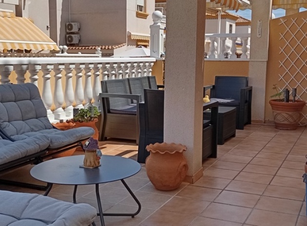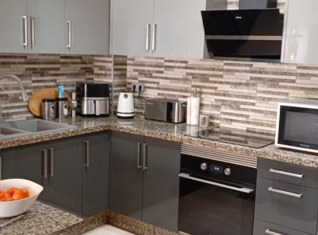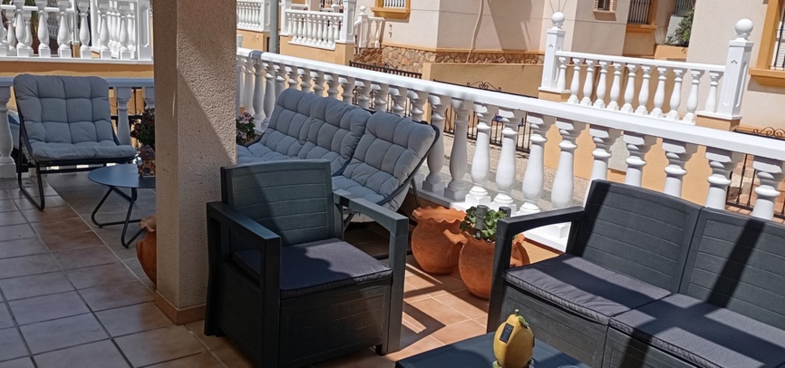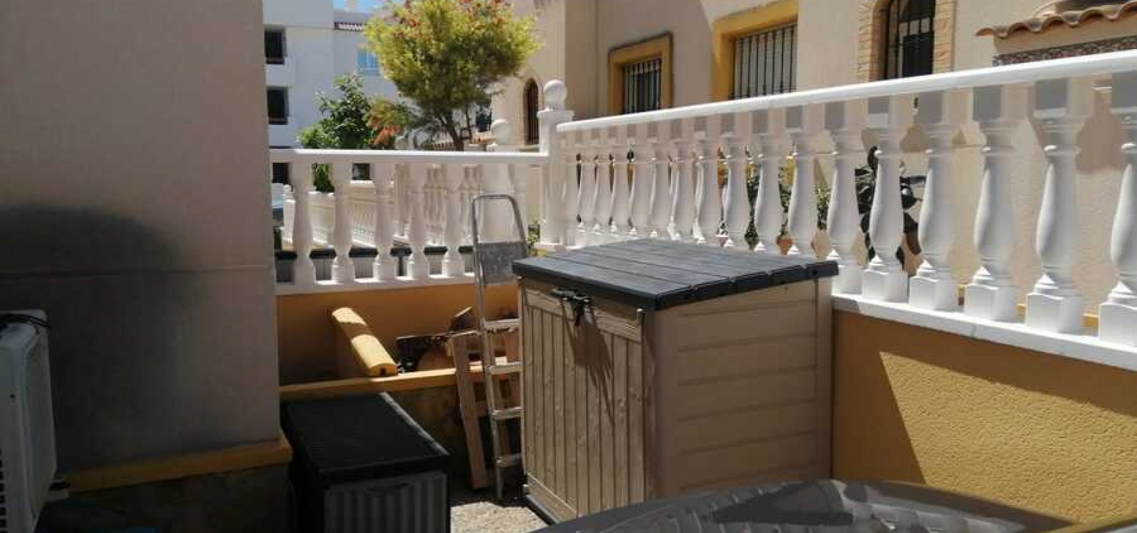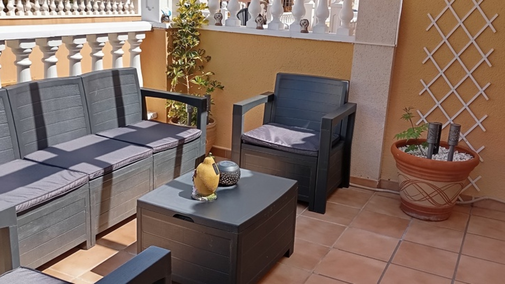 Nous sommes ravis de mettre en vente cette villa de 3 chambres de style quadruple dans le très recherché programme immobilier PAU8, Residencial Inspiration II. Idéalement située dans une impasse, elle offre une intimité optimale et un cadre paisible. La propriété comprend une cuisine ouverte à l'avant avec un grand salon/salle à manger, une salle de bains familiale et deux chambres à deux lits, toutes deux avec placards intégrés. Un escalier intérieur mène à une troisième chambre double avec placards intégrés, salle de douche et accès au solarium. À l'extérieur, la propriété bénéficie d'une spacieuse terrasse, d'une pergola et d'un parking. La propriété est entièrement climatisée et, pour les nuits d'hiver, d'un poêle à bois entièrement fonctionnel. Villamartin offre un large choix de services et d'équipements, ainsi que les magnifiques parcours de golf de Las Ramblas, Las Colinas, Campoamor et le célèbre parcours de Camo De Golf Villamartin, qui a accueilli l'Open de la Méditerranée en 1994. La place a été décorée avec goût et est agrémentée de palmiers qui offrent un refuge temporaire à certaines espèces d'oiseaux, dont le perroquet à collier africain ! La place est ouverte toute l'année et offre un large choix de services, notamment des boutiques, des banques, des supermarchés, des bars et des restaurants. Un service de bus régulier permet de rejoindre facilement le reste de la côte et les grandes villes de Guardamar del Segura et Torrevieja. L'école El Limonar, une école internationale qui enseigne en anglais et en espagnol, est également située à Villamartin. Grâce à sa proximité avec deux aéroports (Alicante et Covera, tous deux à environ 45 minutes), Villamartin est un lieu idéal pour les vacances comme pour une résidence permanente.