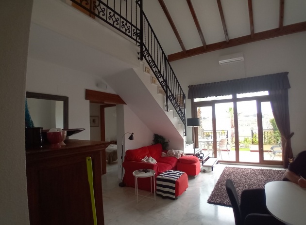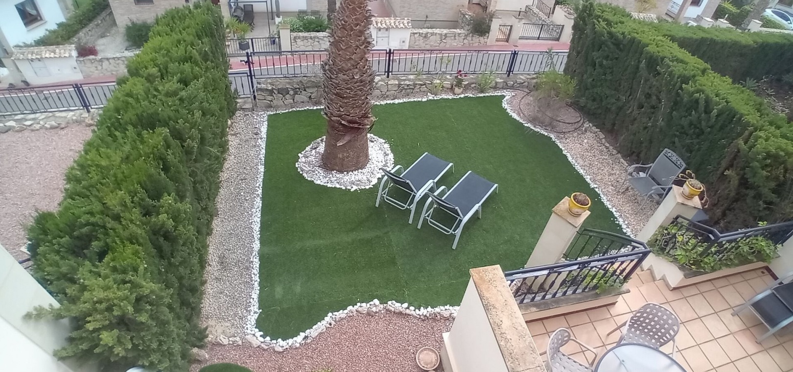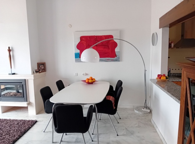 Charmante maison de ville à vendre située dans le quartier recherché d'Algorfa, La Finca Golf. Cette propriété, en revente, offre un espace intérieur confortable, avec trois chambres spacieuses et deux salles de bains bien équipées. Entièrement meublée et équipée, elle vous permettra d'emménager en toute simplicité. Le rez-de-chaussée comprend un salon-salle à manger ouvert avec plafond voûté et cheminée. La cuisine séparée est entièrement équipée, deux chambres doubles avec placards intégrés et une salle de bains familiale. Du salon, des portes-fenêtres s'ouvrent sur une jolie terrasse meublée. De là, quelques marches descendent vers le jardin facile d'entretien avec vue sur le golf. Un escalier depuis le salon mène à la chambre principale et à sa salle de bains attenante. Les portes-fenêtres s'ouvrent sur une belle terrasse, un espace idéal pour profiter de la vue magnifique. Nichée dans une résidence sécurisée, la propriété offre aux résidents un accès à des espaces communs magnifiquement entretenus, dont une piscine rafraîchissante, idéale pour profiter des après-midis chauds. Le cadre offre une vue imprenable sur la campagne et est idéalement situé à proximité d'un golf réputé, ce qui en fait un lieu idéal pour les amateurs de golf. Algorfa, La Finca Golf est une communauté dynamique alliant tranquillité et accessibilité. Vous trouverez de nombreuses commodités locales, notamment des boutiques, des restaurants et des installations de loisirs, à quelques pas seulement. Ce quartier est réputé pour ses magnifiques paysages et son atmosphère chaleureuse. Si vous recherchez le parfait équilibre entre détente et activités, cette maison de ville est un incontournable. Contactez-nous dès aujourd'hui pour prendre rendez-vous pour une visite ou pour faire une offre.
