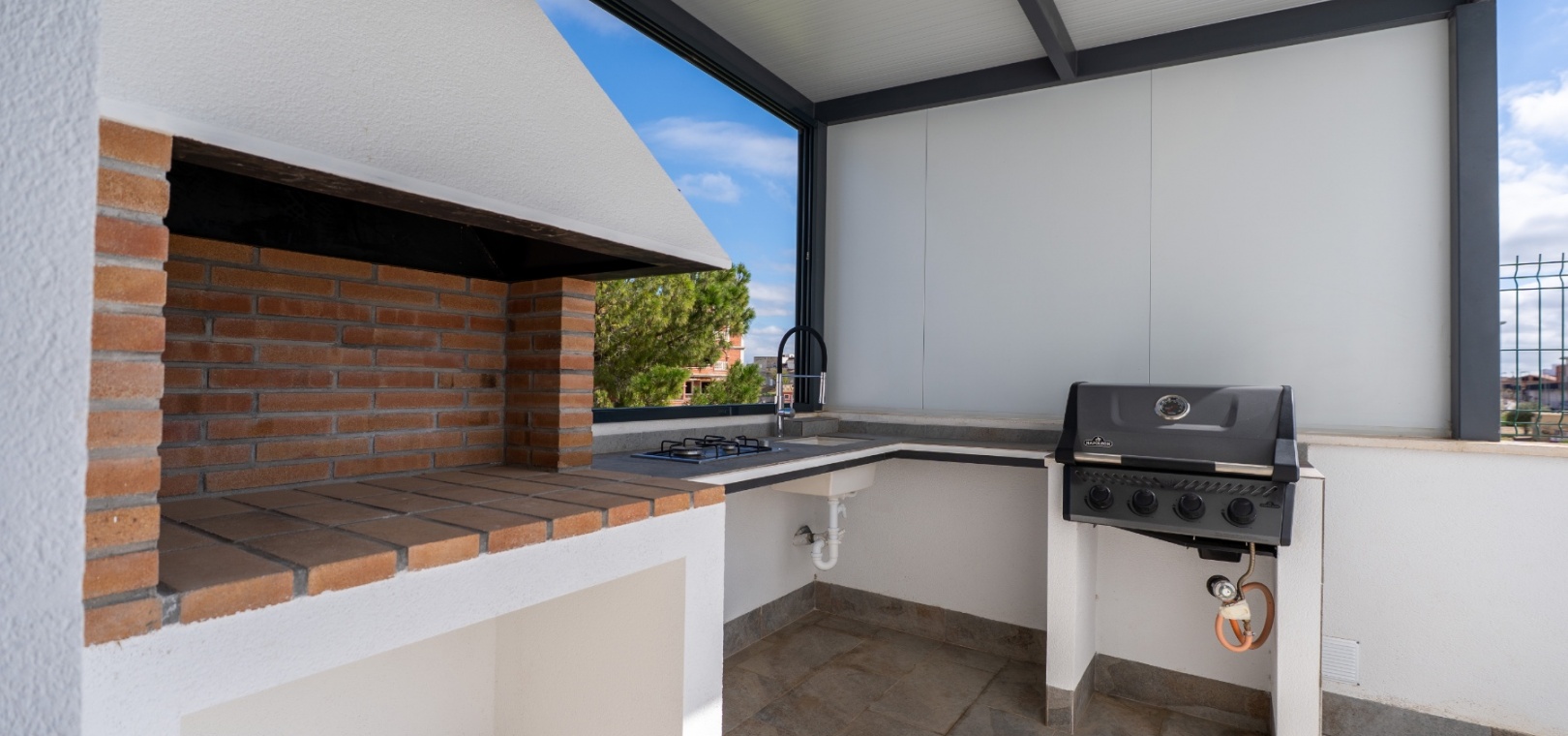 Piscine privée pour se détendre au soleil. Espace barbecue intégré pour cuisiner au bois et au gaz. Douche extérieure intégrée pour plus de confort. Grande table à manger extérieure pouvant accueillir 12 convives.