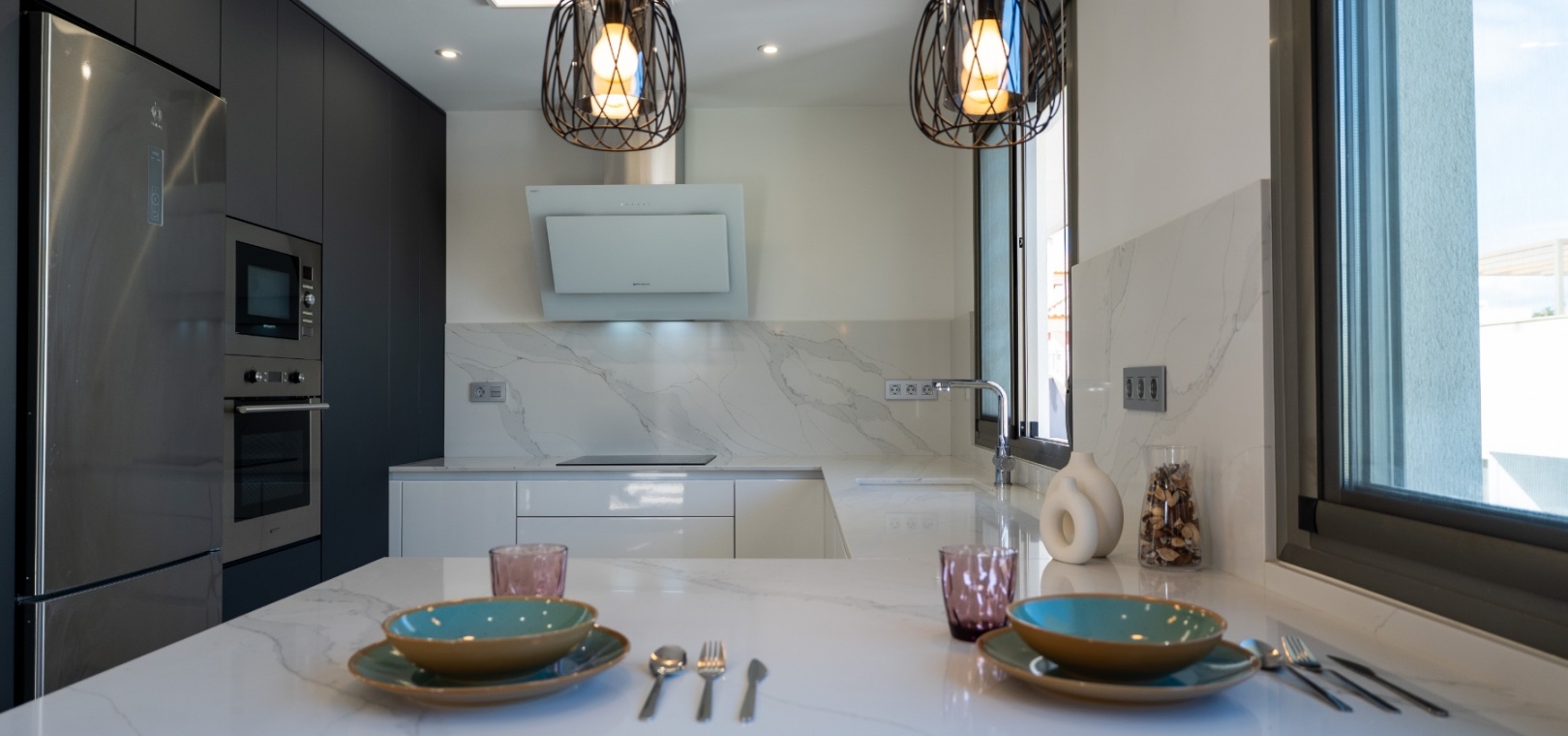 Découvrez cette spectaculaire maison jumelée dans l'un des quartiers résidentiels les plus prometteurs de Bigastro, Alicante . Avec une surface habitable de 178 m² répartie sur trois étages et une superficie de terrain de 148 m², cette impressionnante maison est prête à emménager et vous permet de profiter pleinement du style de vie méditerranéen.