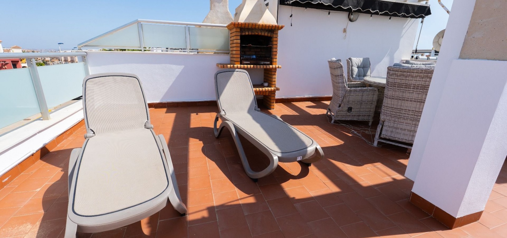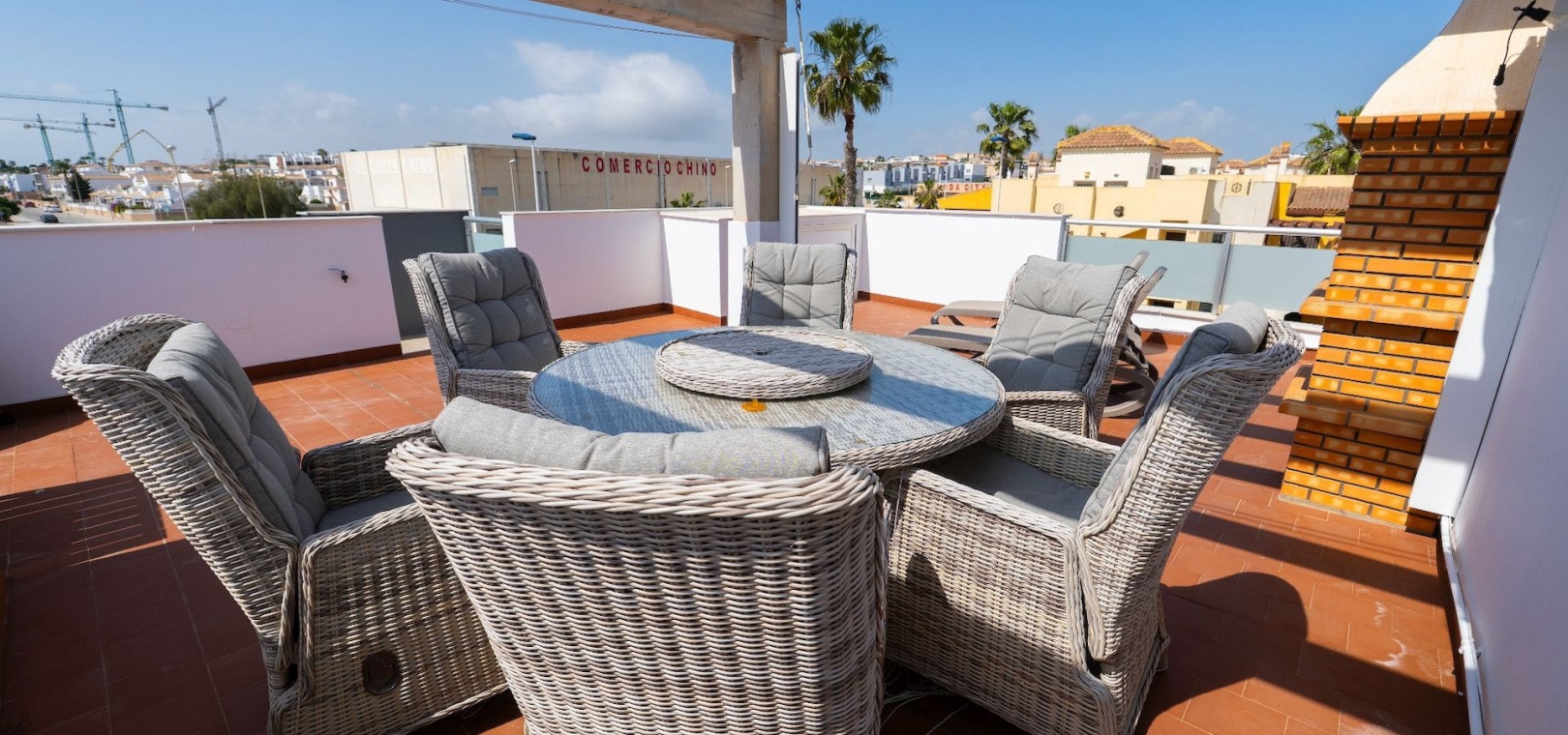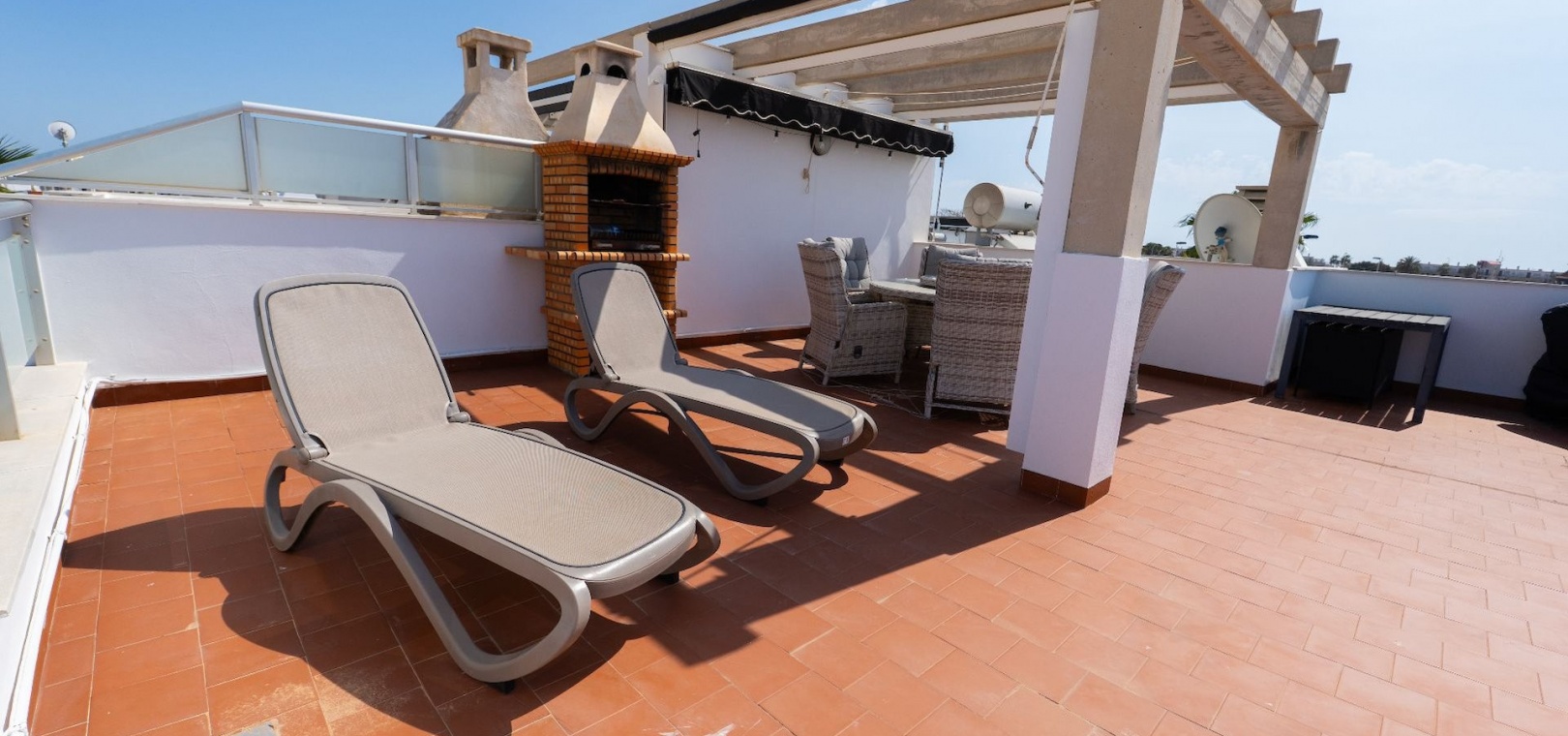Charmant bungalow situé au dernier étage dans le quartier recherché de Punta Prima, à Orihuela Costa, à vendre. Ce bien d'occasion offre 75 m² d'espace intérieur bien conçu, comprenant deux chambres confortables et deux salles de bains modernes. Construit en 2012, il est entièrement meublé et prêt à emménager.