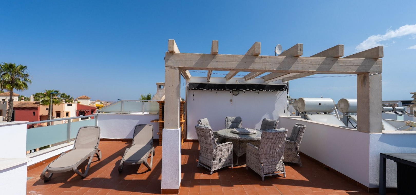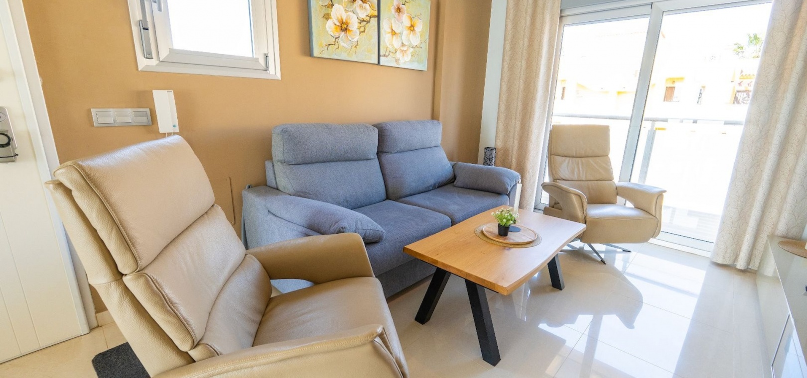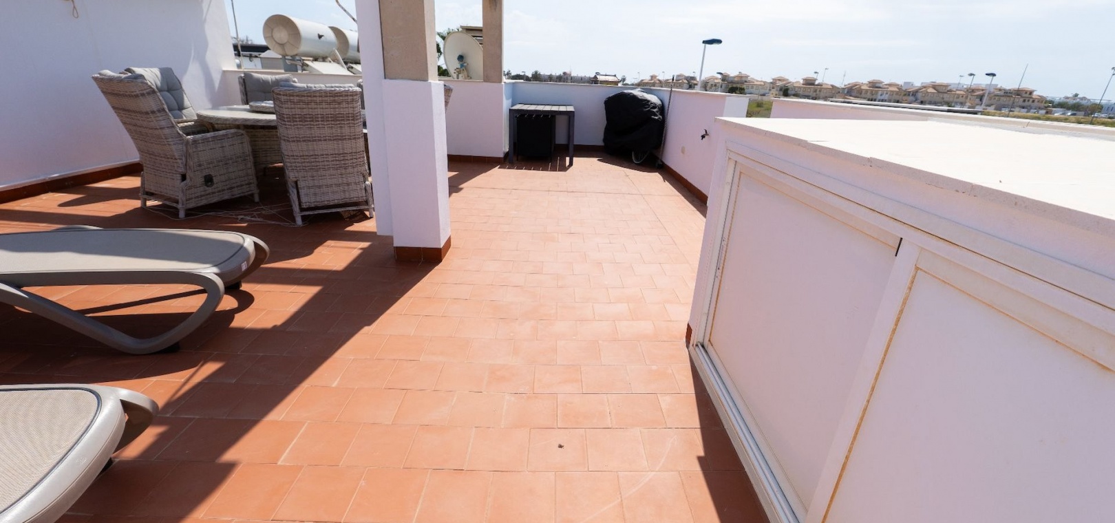 Charmant bungalow situé au dernier étage dans le quartier recherché de Punta Prima, à Orihuela Costa, à vendre. Ce bien d'occasion offre 75 m² d'espace intérieur bien conçu, comprenant deux chambres confortables et deux salles de bains modernes. Construit en 2012, il est entièrement meublé et prêt à emménager.