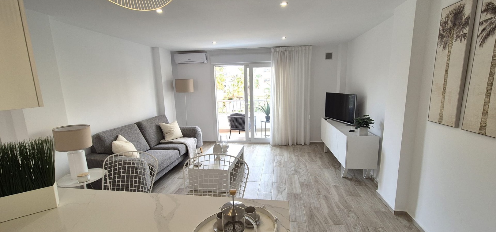 L'appartement bénéficie également de la climatisation partout et est proposé à la vente entièrement meublé.