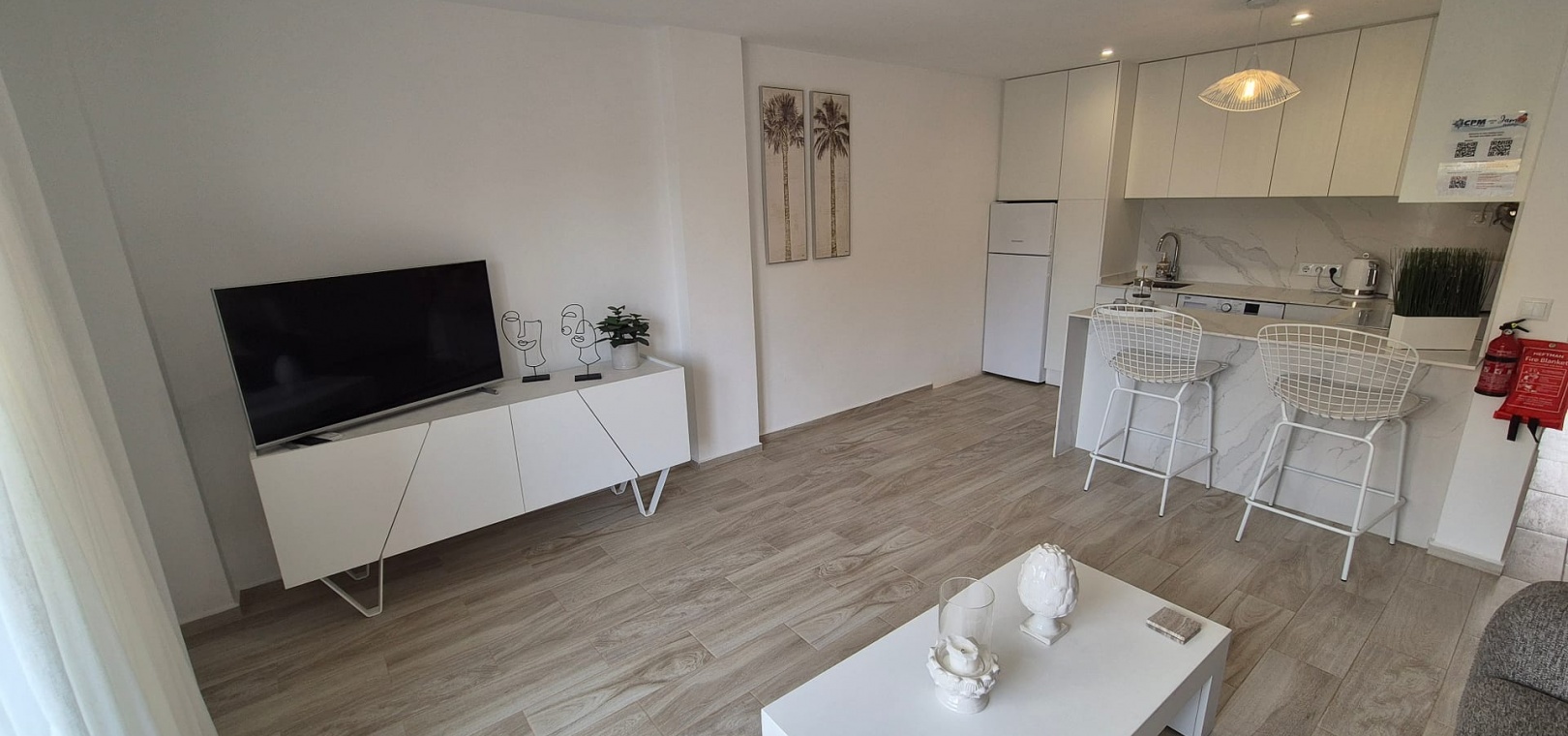 Découvrez le luxe de la vie côtière dans cet appartement T2, magnifiquement rénové et exposé plein sud, situé au 3e étage d'une résidence bien entretenue à Punta Prima, Torrevieja. À quelques pas de la mer, de la promenade et du célèbre restaurant Nautilus, cet appartement allie parfaitement confort et praticité.