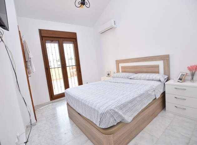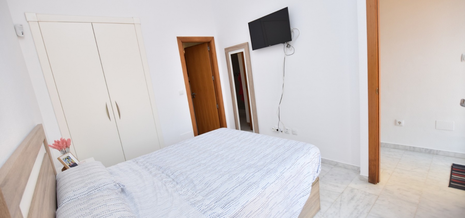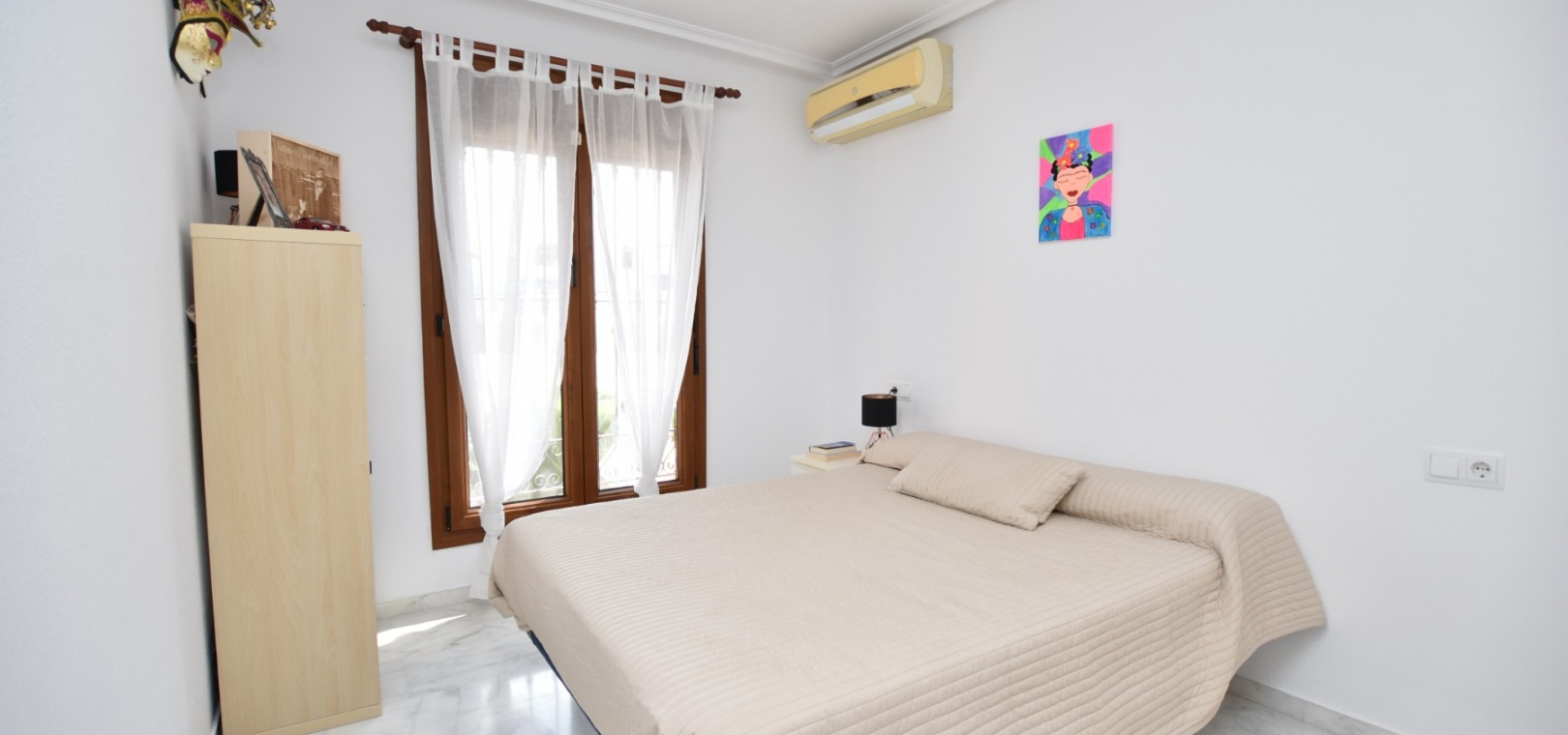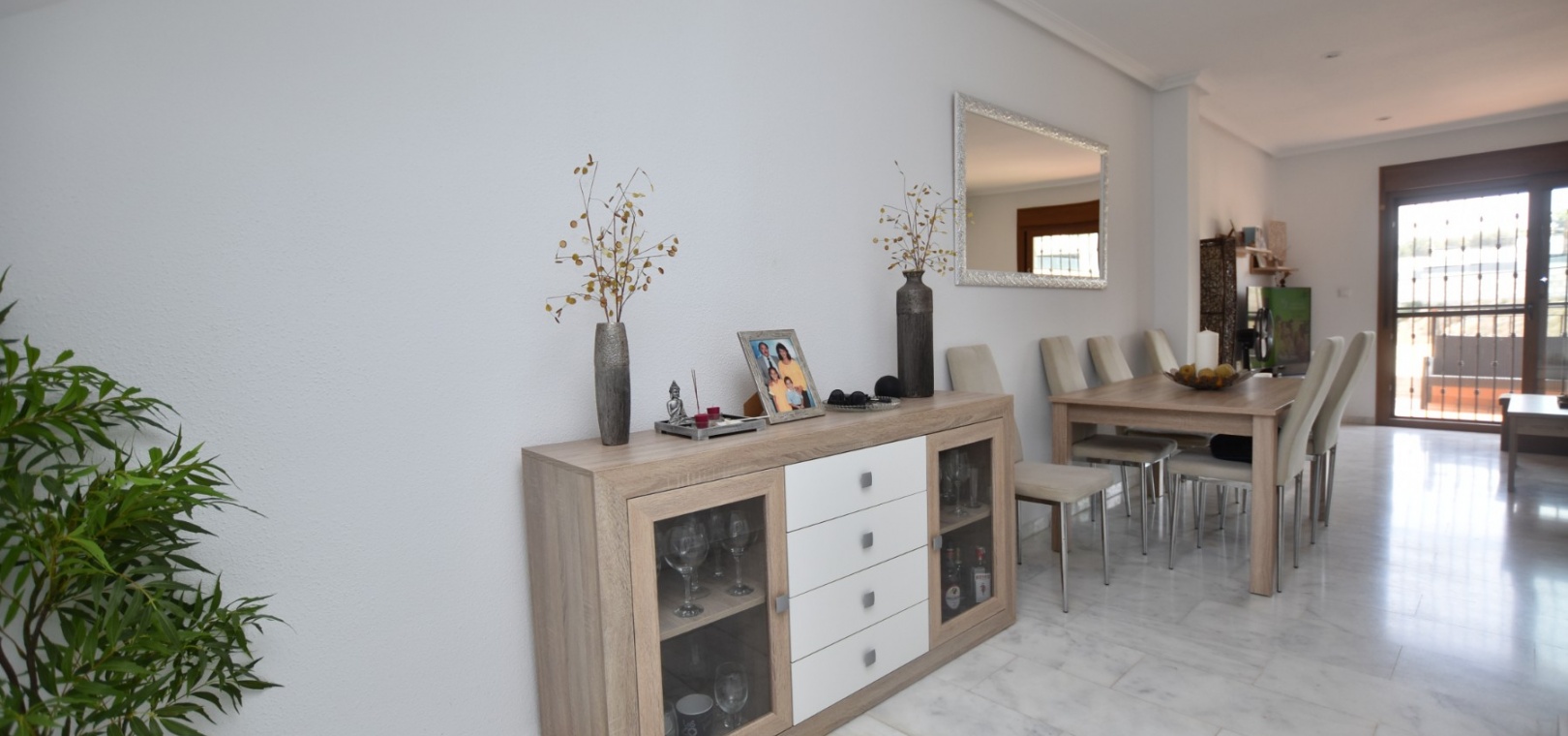 Cette charmante maison de 110 m² habitables comprend 3 chambres et 2 salles de bains. En excellent état, elle dispose de placards intégrés, facilitant ainsi l'organisation. Le jardin est l'endroit idéal pour se détendre après une longue journée, sous le soleil espagnol.
