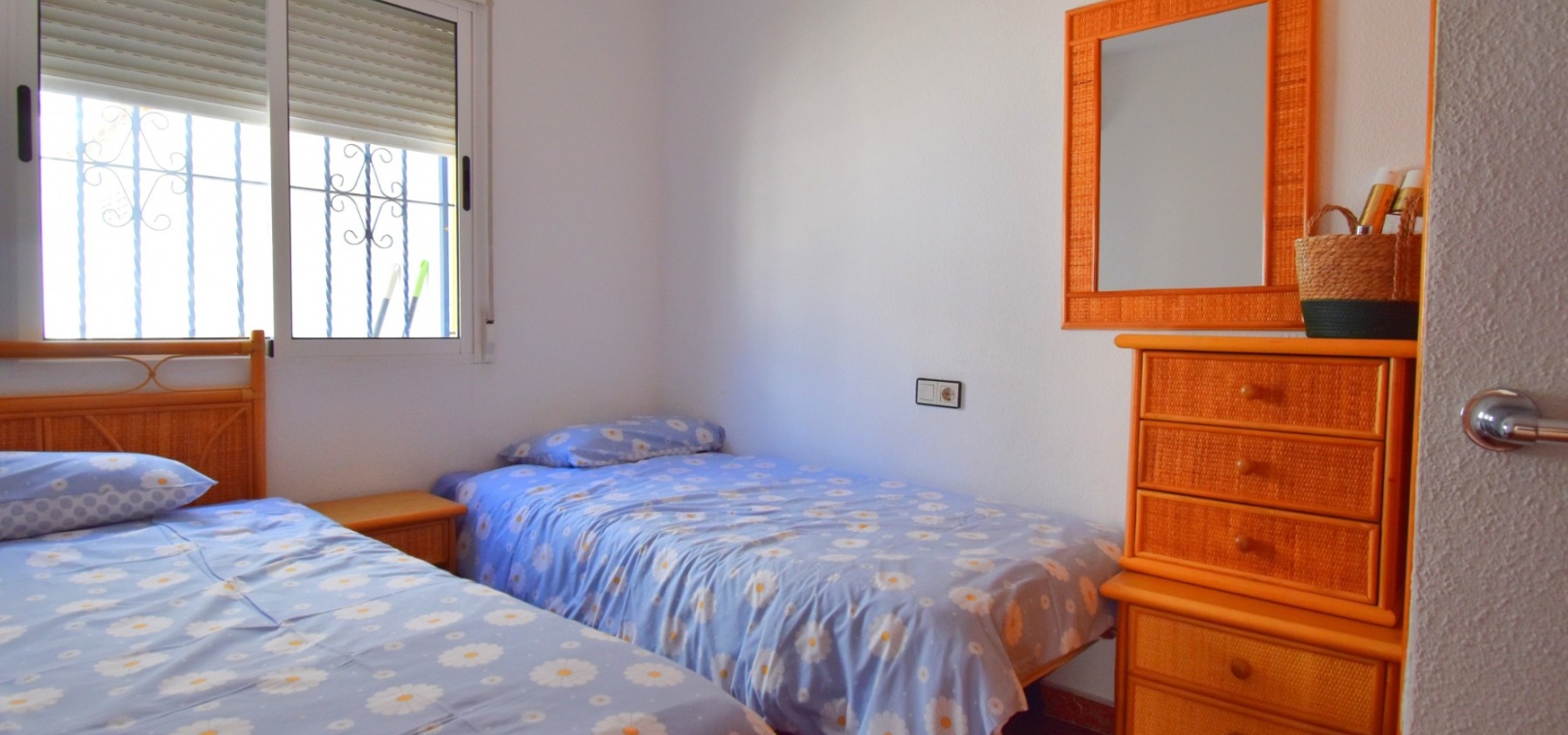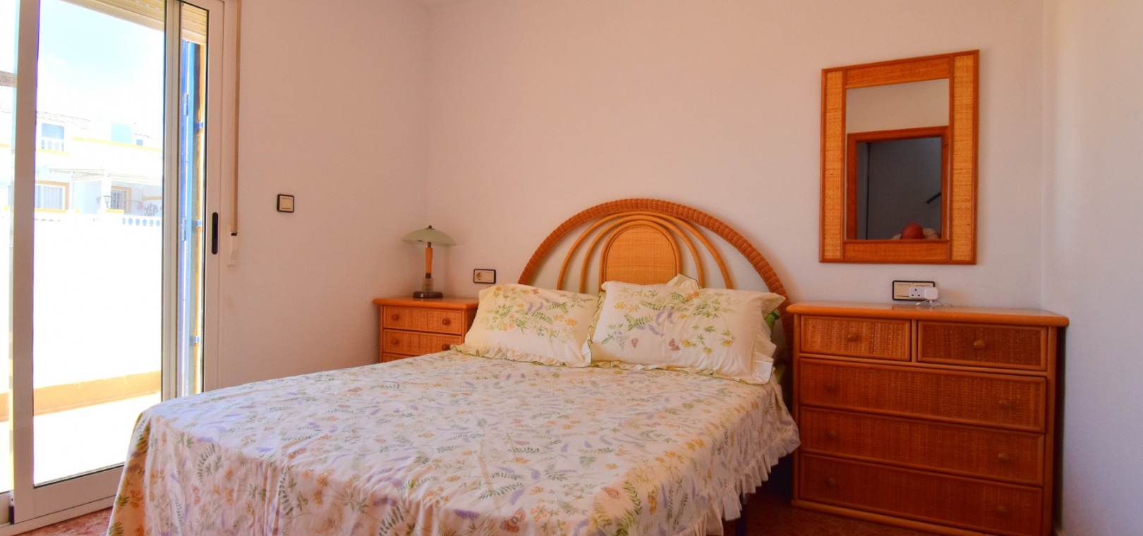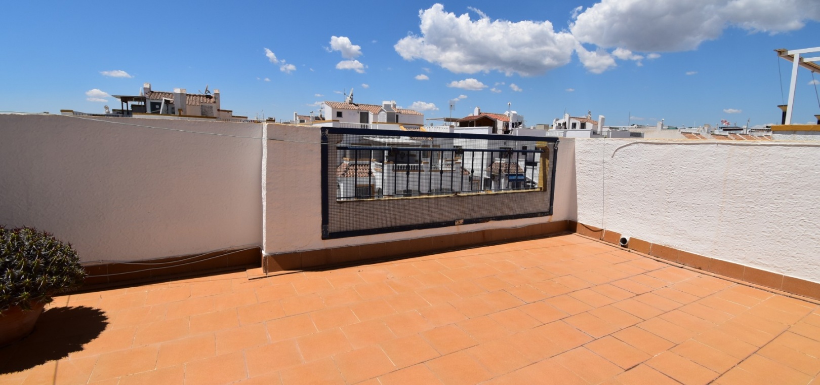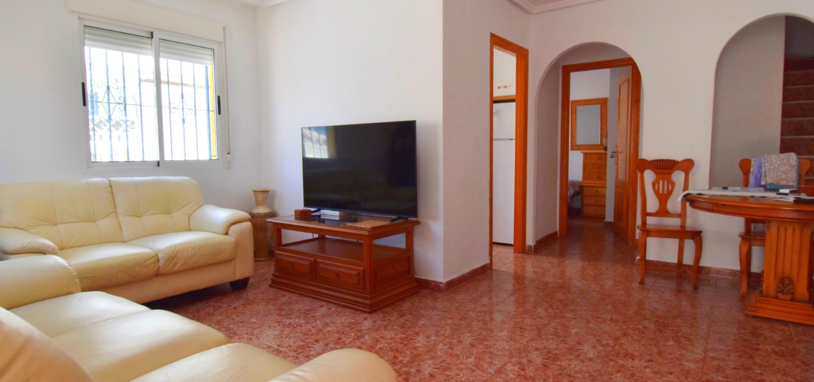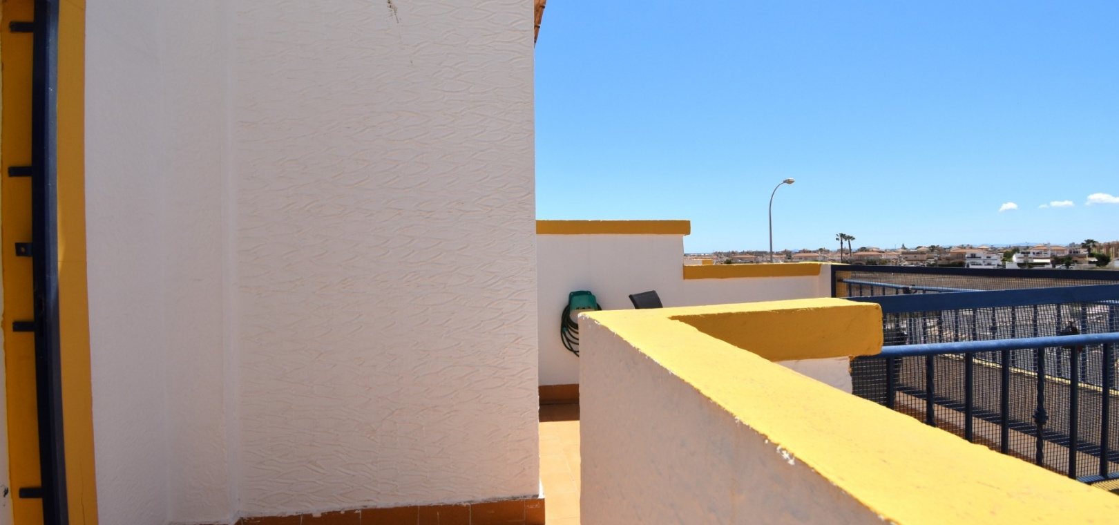 Cette villa mitoyenne de trois chambres, exposée sud-ouest, à Playa Flamenca est située à seulement cinq minutes à pied de nombreux commerces et services, et à seulement cinq minutes en voiture des magnifiques plages d'Orihuela Costa. Spacieuse et en très bon état, cette villa dispose d'une cuisine séparée entièrement équipée et de grilles de sécurité aux fenêtres et aux portes. Les trois chambres sont doubles et disposent de placards intégrés. La chambre principale donne accès à une terrasse privée au premier étage. La propriété comprend une salle de bains et une salle d'eau, toutes climatisées pour un confort optimal toute l'année. À l'entrée, une petite terrasse couverte offre un espace extérieur accueillant, tandis qu'un escalier intérieur mène au solarium privé, offrant une vue imprenable sur les environs et la mer au loin. À l'extérieur, la villa bénéficie d'un jardin carrelé facile d'entretien avec un parking hors voirie, un cellier et un accès à une belle piscine commune. Située au cœur de la Costa Blanca Sud, cette maison allie parfaitement commodité, confort et style de vie côtier.