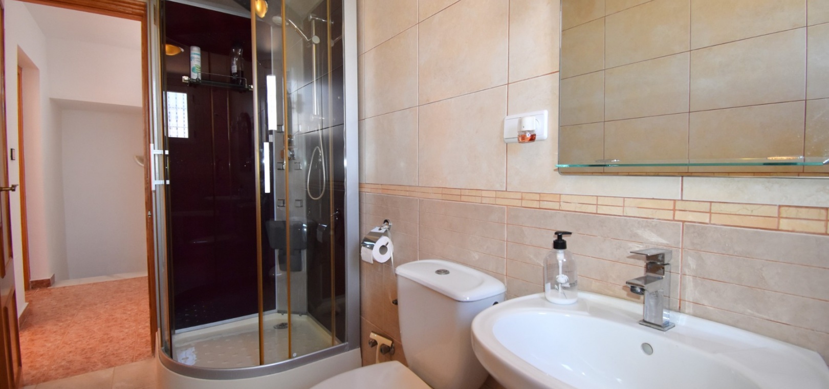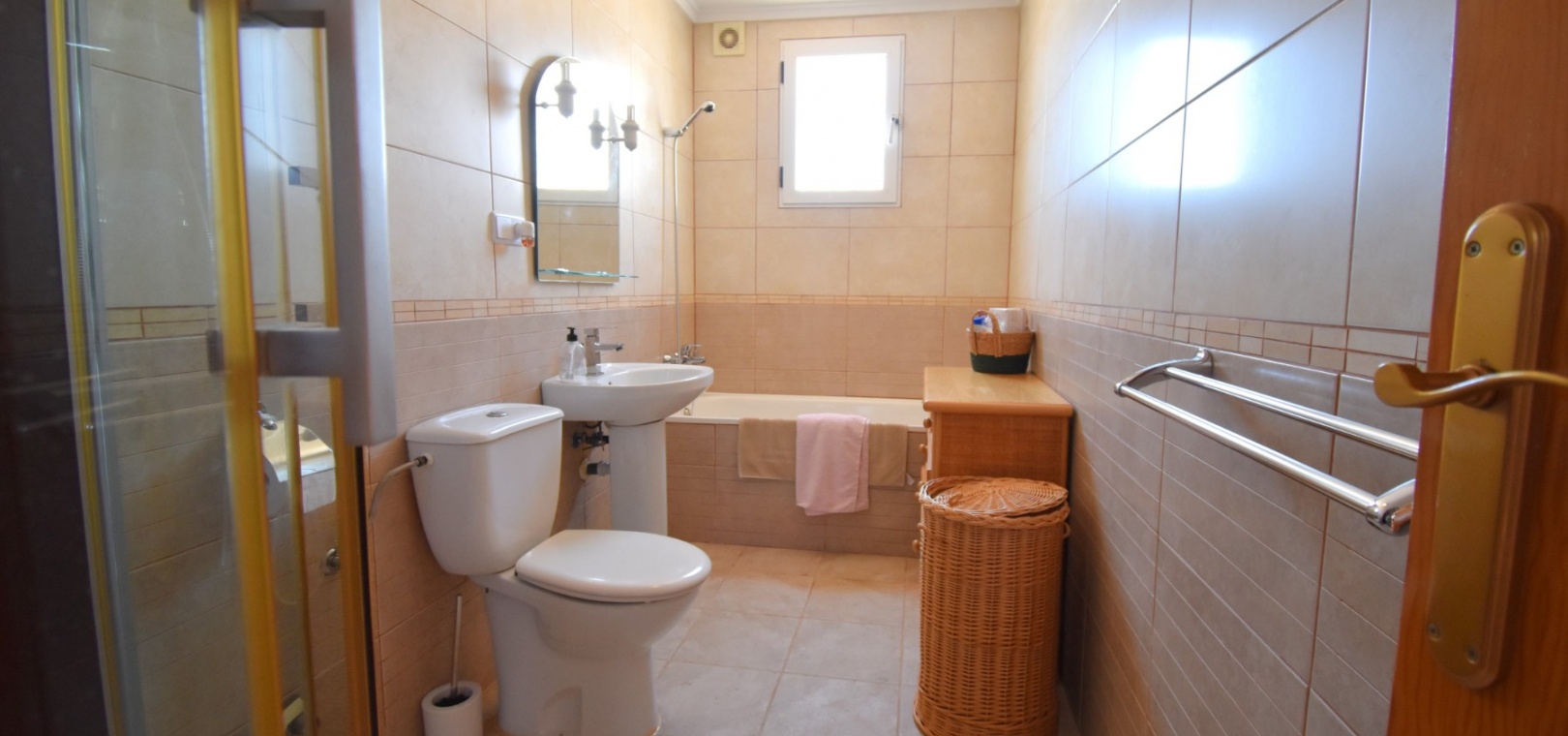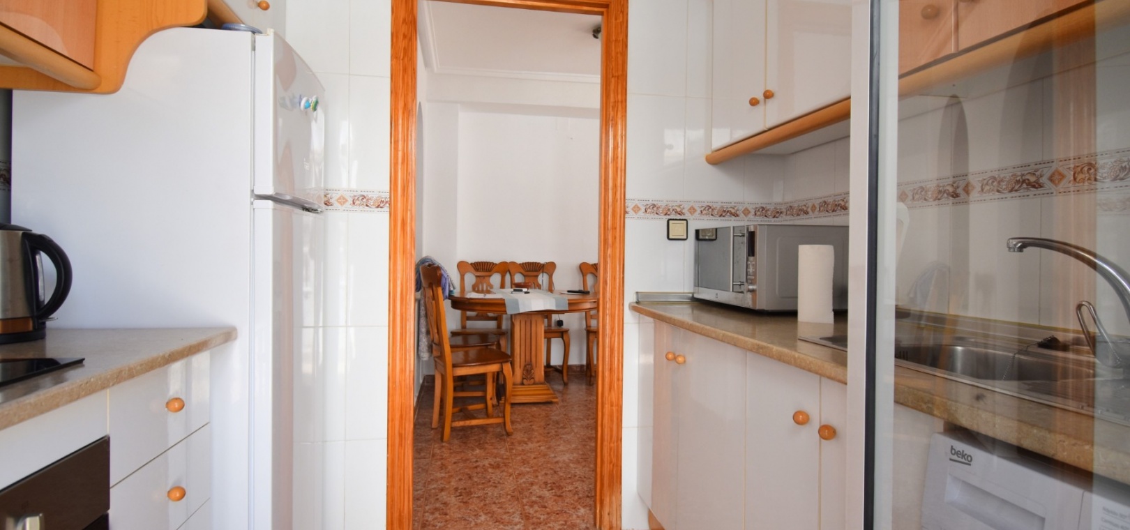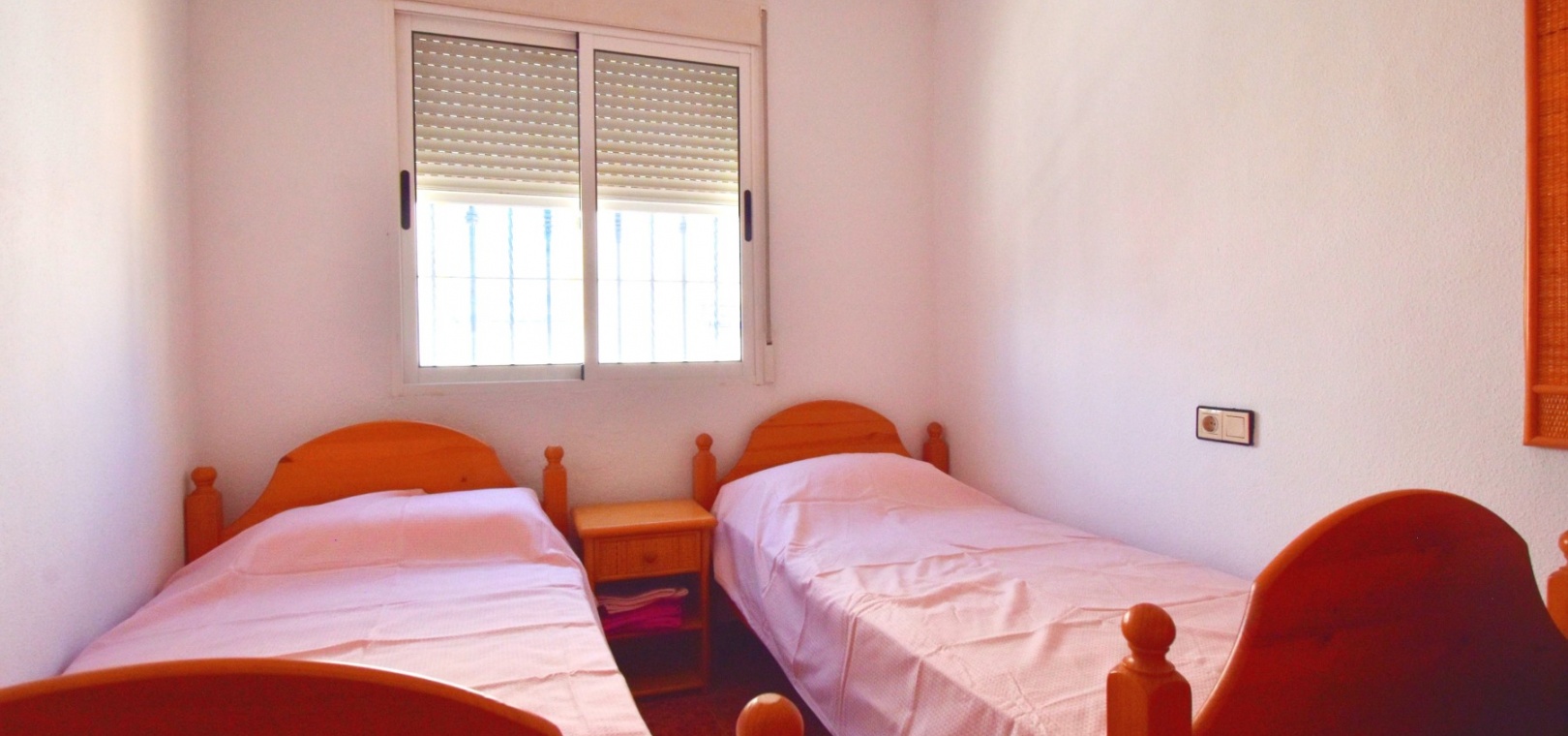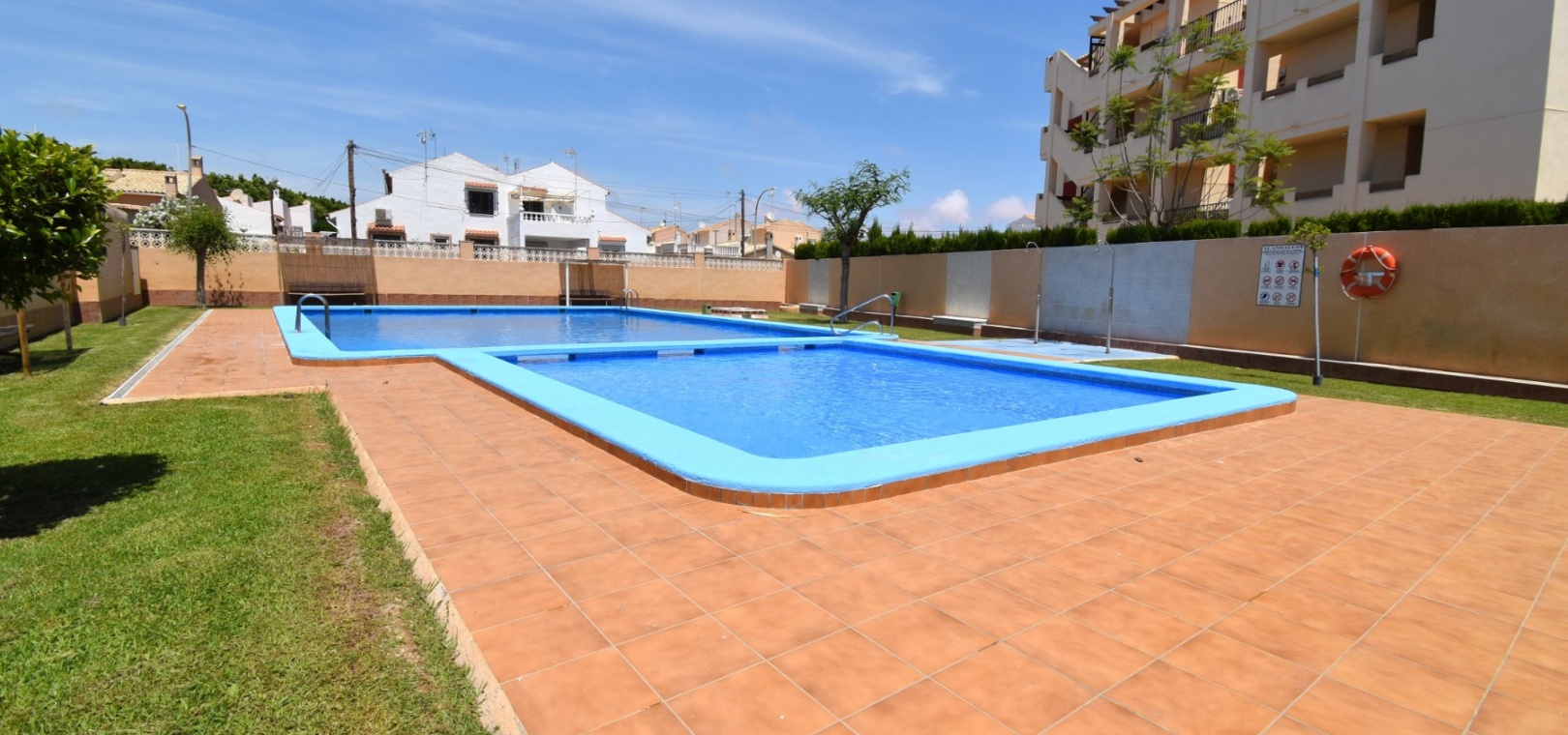 Cette villa mitoyenne de trois chambres, exposée sud-ouest, à Playa Flamenca est située à seulement cinq minutes à pied de nombreux commerces et services, et à seulement cinq minutes en voiture des magnifiques plages d'Orihuela Costa. Spacieuse et en très bon état, cette villa dispose d'une cuisine séparée entièrement équipée et de grilles de sécurité aux fenêtres et aux portes. Les trois chambres sont doubles et disposent de placards intégrés. La chambre principale donne accès à une terrasse privée au premier étage. La propriété comprend une salle de bains et une salle d'eau, toutes climatisées pour un confort optimal toute l'année. À l'entrée, une petite terrasse couverte offre un espace extérieur accueillant, tandis qu'un escalier intérieur mène au solarium privé, offrant une vue imprenable sur les environs et la mer au loin. À l'extérieur, la villa bénéficie d'un jardin carrelé facile d'entretien avec un parking hors voirie, un cellier et un accès à une belle piscine commune. Située au cœur de la Costa Blanca Sud, cette maison allie parfaitement commodité, confort et style de vie côtier.