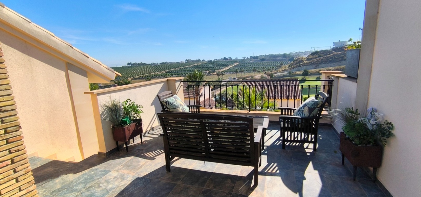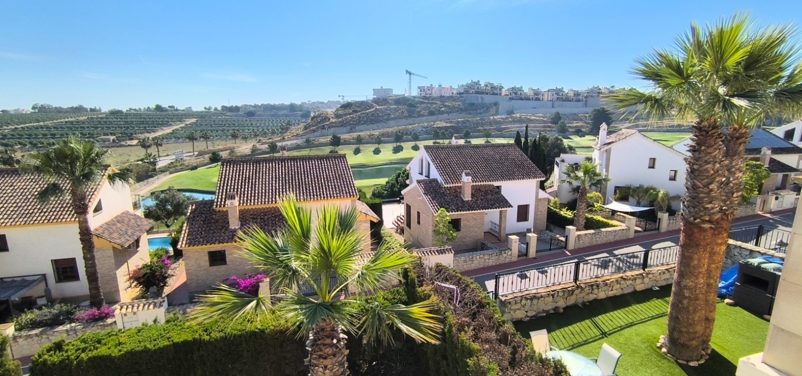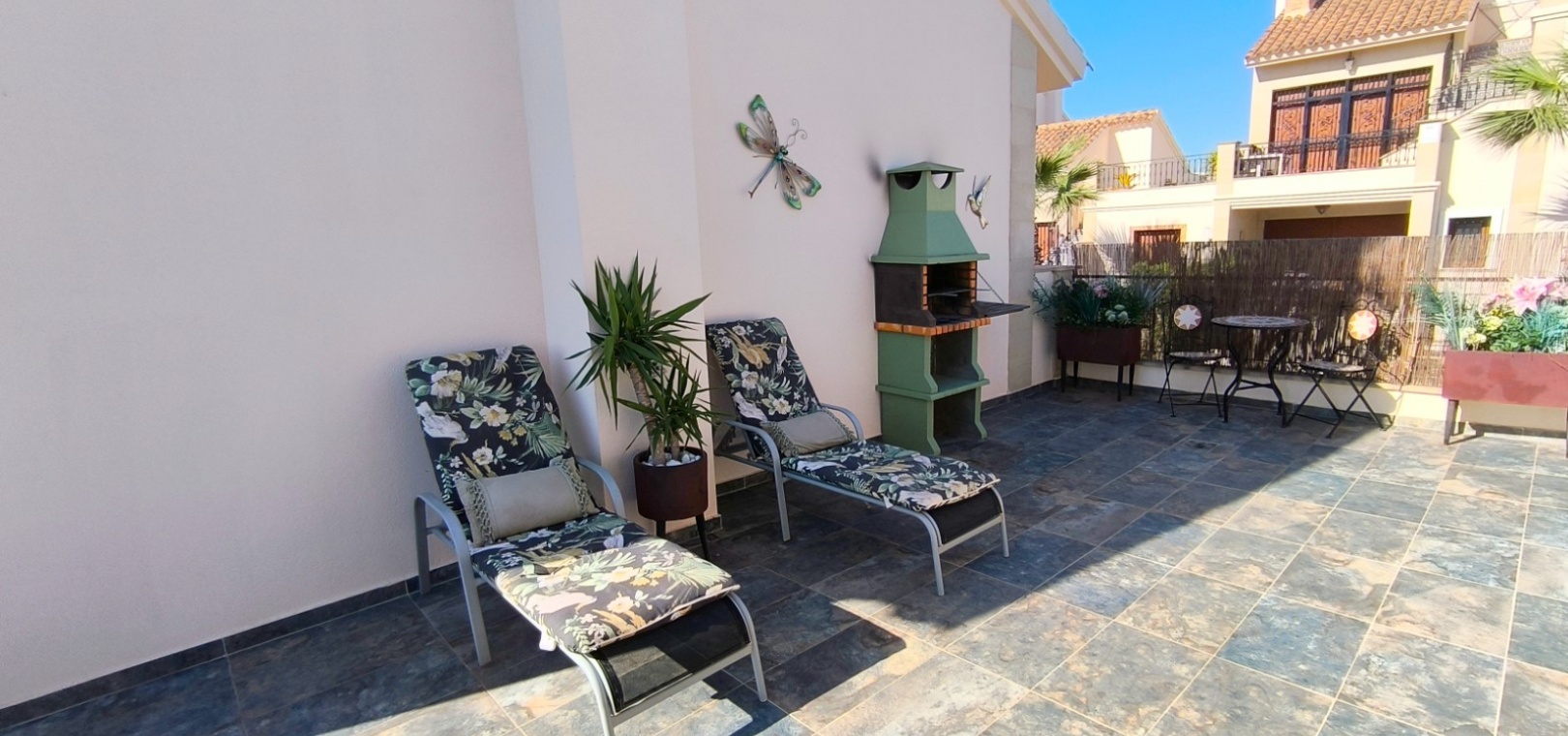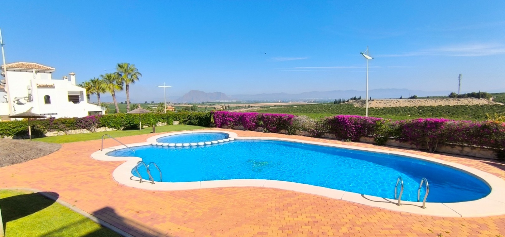 Ce bungalow « LOLA » de deux chambres et deux salles de bains, magnifiquement présenté, est situé sur le populaire La Finca Golf Resort, à Algorfa Bénéficiant de deux chambres doubles spacieuses et de deux salles de bains de bonne taille, dont une salle de bains moderne, cette propriété est idéale pour ceux qui recherchent une retraite tranquille. Pénétrez dans le vaste séjour, où un superbe plafond voûté accentue l'impression d'espace et d'élégance. La cuisine bien équipée a été réaménagée avec des éléments bas et hauts en blanc brillant moderne. Elle dispose également d'un four, d'une plaque de cuisson et d'une hotte intégrés, d'un lave-vaisselle, d'un lave-linge et d'un réfrigérateur-congélateur encastrable. Profitez de moments de sérénité sur la terrasse paisible ou détendez-vous dans le jardin privé facile d'entretien. Montez l'escalier fixe jusqu'au solarium privé et laissez-vous séduire par la vue imprenable sur le golf, les montagnes et au-delà. Les résidents peuvent également profiter de la fabuleuse piscine commune et d'un parking fermé. Avec des placards intégrés dans les deux chambres, la climatisation dans toutes les pièces et étant entièrement meublée, cette maison est prête à emménager et à commencer à vivre votre meilleure vie. De plus, le charmant village d'Algorfa est à seulement quelques minutes en voiture, et les magnifiques plages Pavillon Bleu de la Costa Blanca sont accessibles en 20 minutes. Ne manquez pas cette opportunité exceptionnelle !