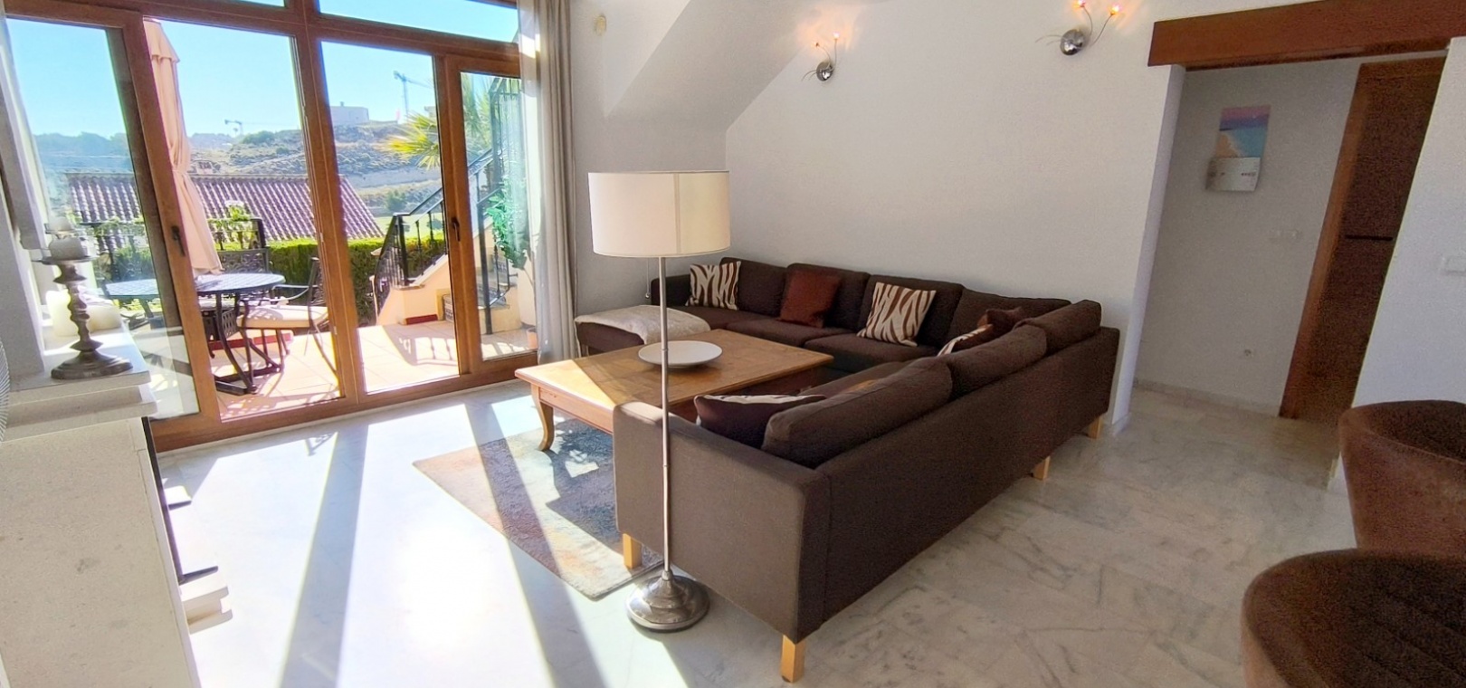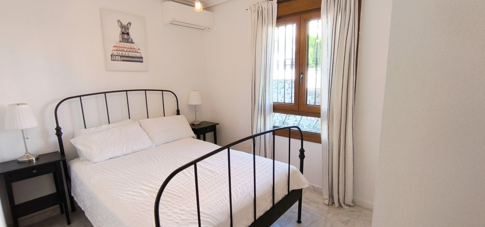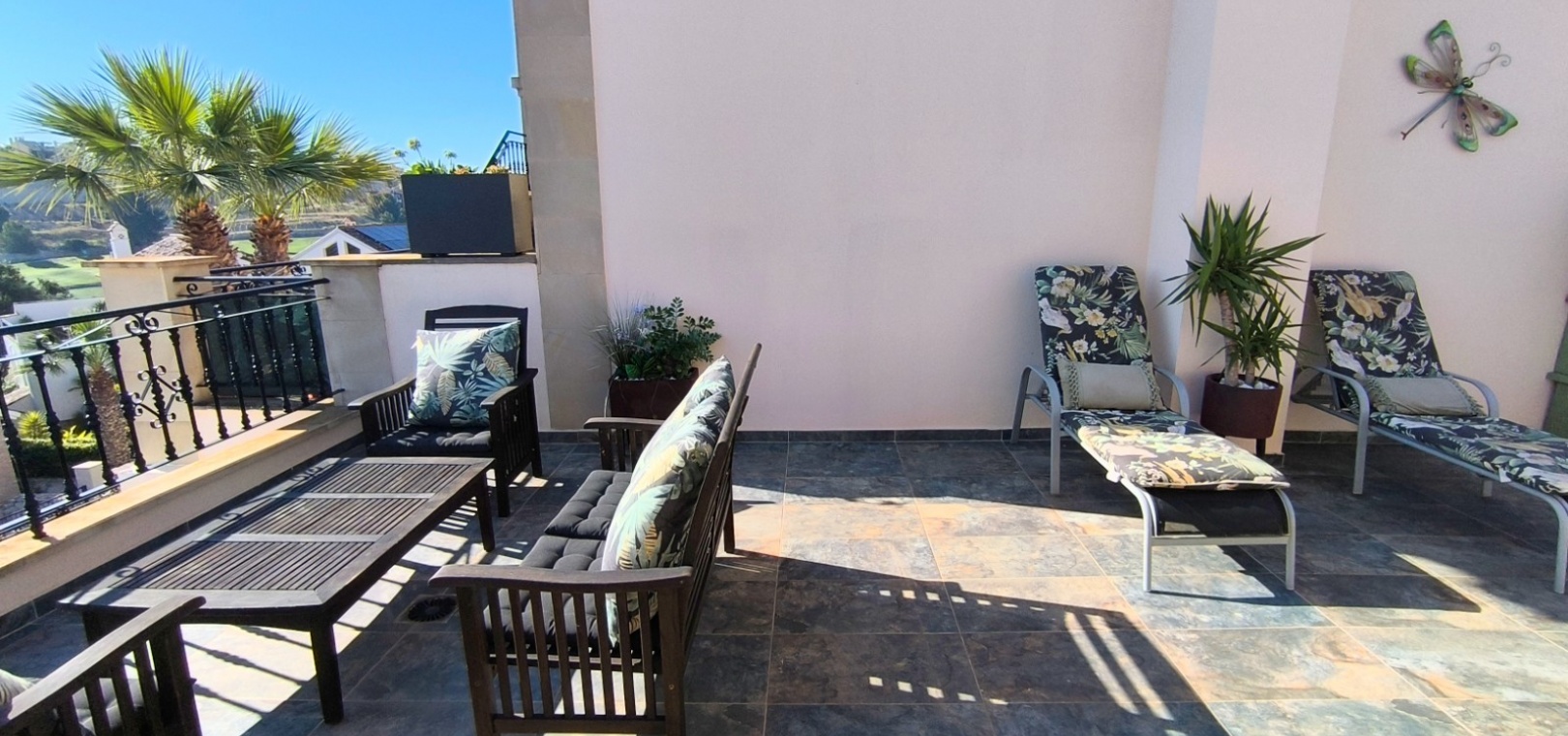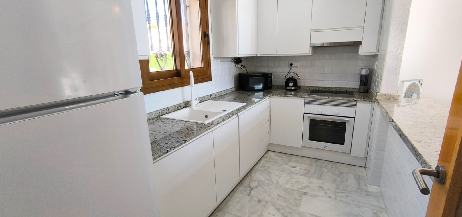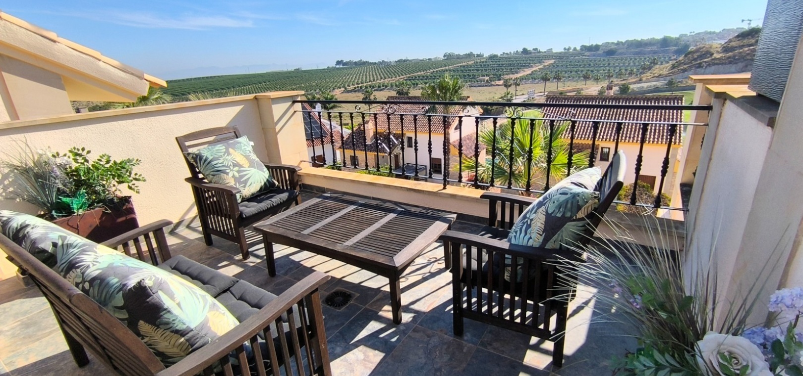 Ce bungalow « LOLA » de deux chambres et deux salles de bains, magnifiquement présenté, est situé sur le populaire La Finca Golf Resort, à Algorfa Bénéficiant de deux chambres doubles spacieuses et de deux salles de bains de bonne taille, dont une salle de bains moderne, cette propriété est idéale pour ceux qui recherchent une retraite tranquille. Pénétrez dans le vaste séjour, où un superbe plafond voûté accentue l'impression d'espace et d'élégance. La cuisine bien équipée a été réaménagée avec des éléments bas et hauts en blanc brillant moderne. Elle dispose également d'un four, d'une plaque de cuisson et d'une hotte intégrés, d'un lave-vaisselle, d'un lave-linge et d'un réfrigérateur-congélateur encastrable. Profitez de moments de sérénité sur la terrasse paisible ou détendez-vous dans le jardin privé facile d'entretien. Montez l'escalier fixe jusqu'au solarium privé et laissez-vous séduire par la vue imprenable sur le golf, les montagnes et au-delà. Les résidents peuvent également profiter de la fabuleuse piscine commune et d'un parking fermé. Avec des placards intégrés dans les deux chambres, la climatisation dans toutes les pièces et étant entièrement meublée, cette maison est prête à emménager et à commencer à vivre votre meilleure vie. De plus, le charmant village d'Algorfa est à seulement quelques minutes en voiture, et les magnifiques plages Pavillon Bleu de la Costa Blanca sont accessibles en 20 minutes. Ne manquez pas cette opportunité exceptionnelle !
