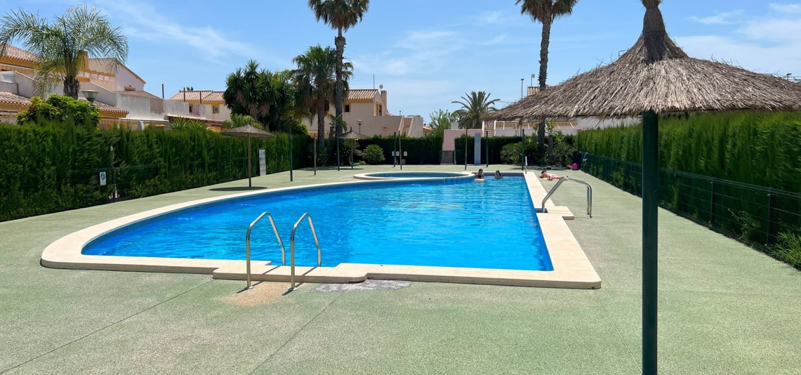 Cette charmante maison de ville de deux chambres est située dans le quartier résidentiel et accueillant d'El Chaparral, à quelques minutes en voiture des plages de Torrevieja et de toutes les commodités.