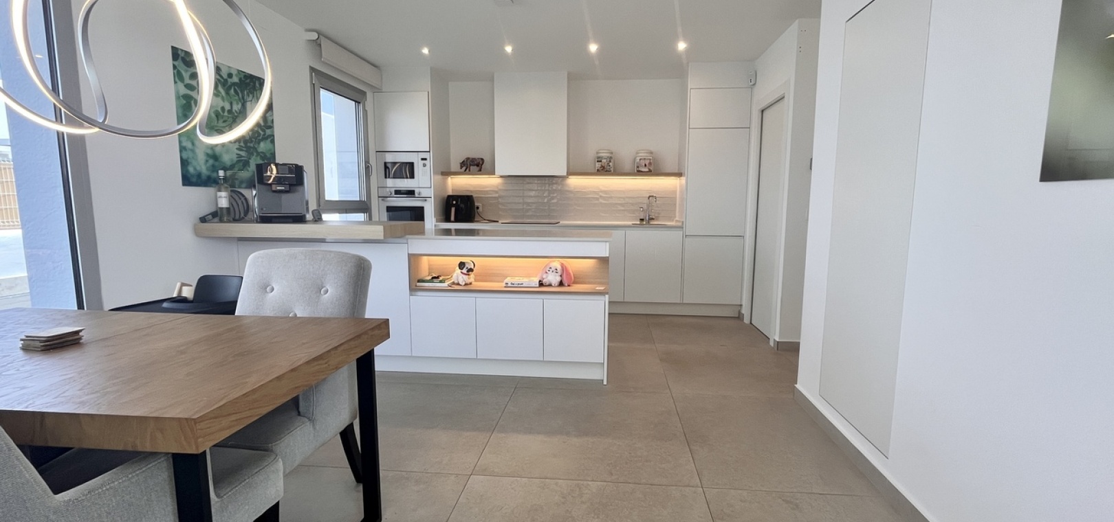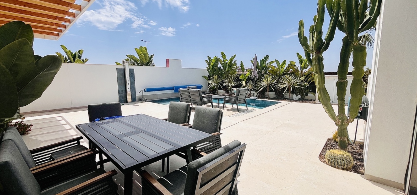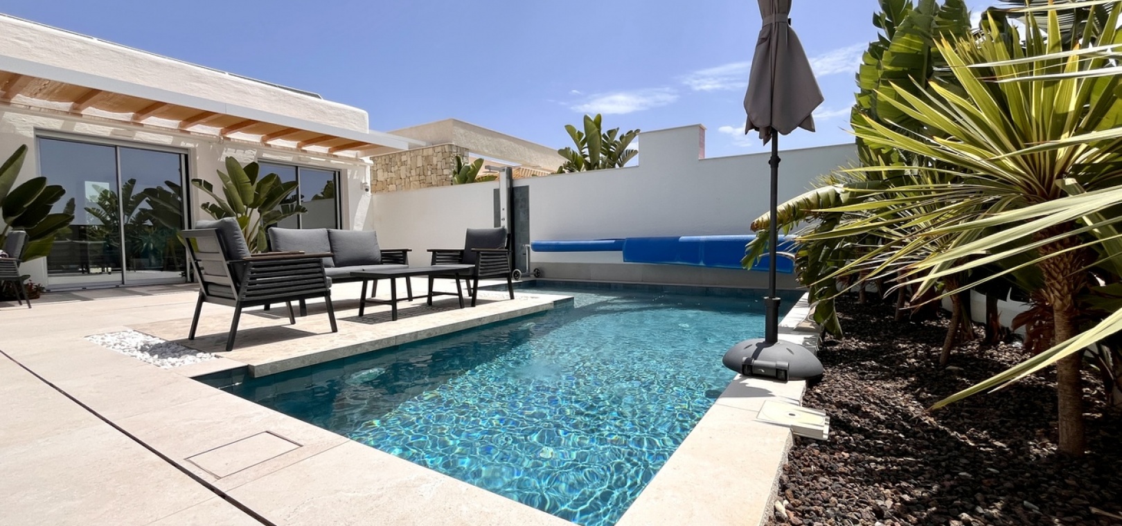 Superbe villa moderne avec piscine chauffée et vue sur le lac salé ! Ne manquez pas cette incroyable opportunité de devenir propriétaire d'une magnifique villa de 3 chambres et 2 salles de bain avec piscine privée chauffée, dans le quartier résidentiel prisé de La Herrada, à Los Montesinos. Cette propriété immaculée est située sur un terrain de 257 m² avec une construction de 114 m², soigneusement aménagée sur un seul niveau dans un design élégant en forme de L pour un maximum de confort et d'intimité. Profitez d'une vue imprenable sur le lac salé depuis votre solarium privé de 47 m², l'endroit idéal pour vous détendre. Son orientation sud-ouest inonde la villa de lumière naturelle, créant des espaces lumineux et aérés tout au long de la journée. À l'extérieur, vous trouverez une piscine privée chauffée, idéale pour des baignades toute l'année, ainsi qu'un jardin privé ensoleillé et un local de rangement pratique. Située à seulement 10 minutes des plages de sable de la Costa Blanca, et avec des supermarchés, des restaurants et des magasins à proximité, cette villa allie calme, intimité et commodité imbattable. C'est une maison dont vous tomberez amoureux dès que vous la verrez, parfaite pour vivre à temps plein, pour des vacances ou pour un investissement locatif à haut rendement.