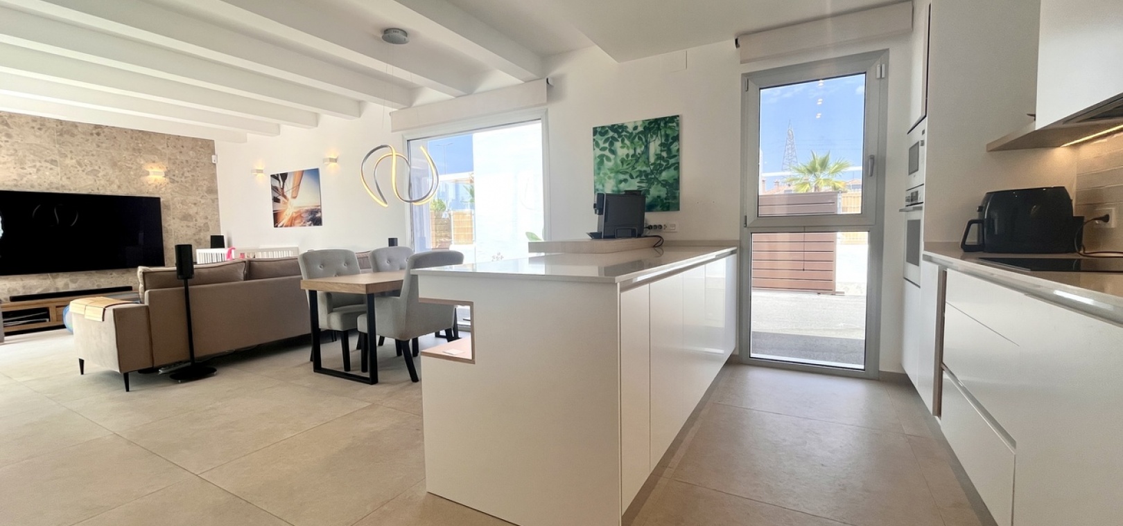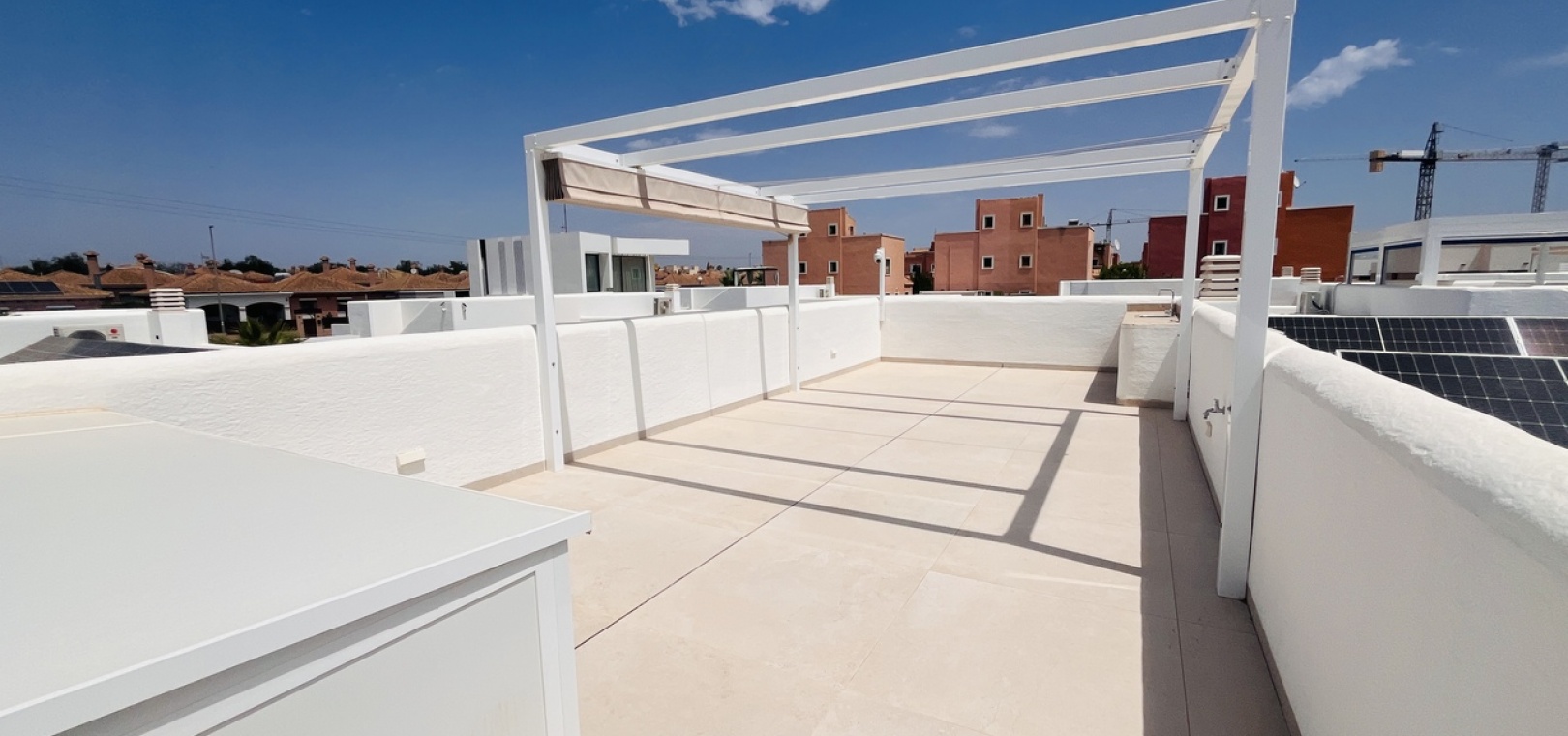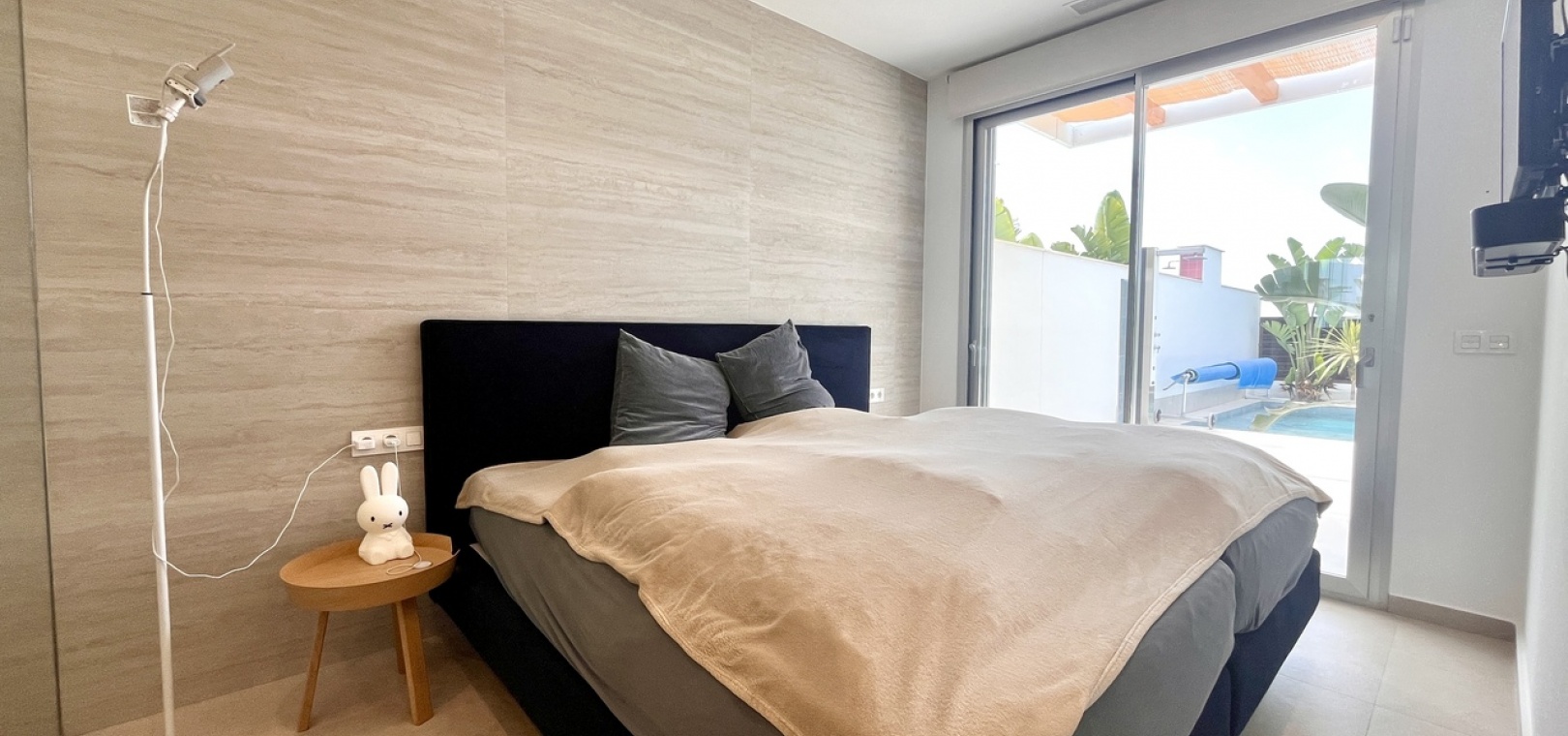 Superbe villa moderne avec piscine chauffée et vue sur le lac salé ! Ne manquez pas cette incroyable opportunité de devenir propriétaire d'une magnifique villa de 3 chambres et 2 salles de bain avec piscine privée chauffée, dans le quartier résidentiel prisé de La Herrada, à Los Montesinos. Cette propriété immaculée est située sur un terrain de 257 m² avec une construction de 114 m², soigneusement aménagée sur un seul niveau dans un design élégant en forme de L pour un maximum de confort et d'intimité. Profitez d'une vue imprenable sur le lac salé depuis votre solarium privé de 47 m², l'endroit idéal pour vous détendre. Son orientation sud-ouest inonde la villa de lumière naturelle, créant des espaces lumineux et aérés tout au long de la journée. À l'extérieur, vous trouverez une piscine privée chauffée, idéale pour des baignades toute l'année, ainsi qu'un jardin privé ensoleillé et un local de rangement pratique. Située à seulement 10 minutes des plages de sable de la Costa Blanca, et avec des supermarchés, des restaurants et des magasins à proximité, cette villa allie calme, intimité et commodité imbattable. C'est une maison dont vous tomberez amoureux dès que vous la verrez, parfaite pour vivre à temps plein, pour des vacances ou pour un investissement locatif à haut rendement.