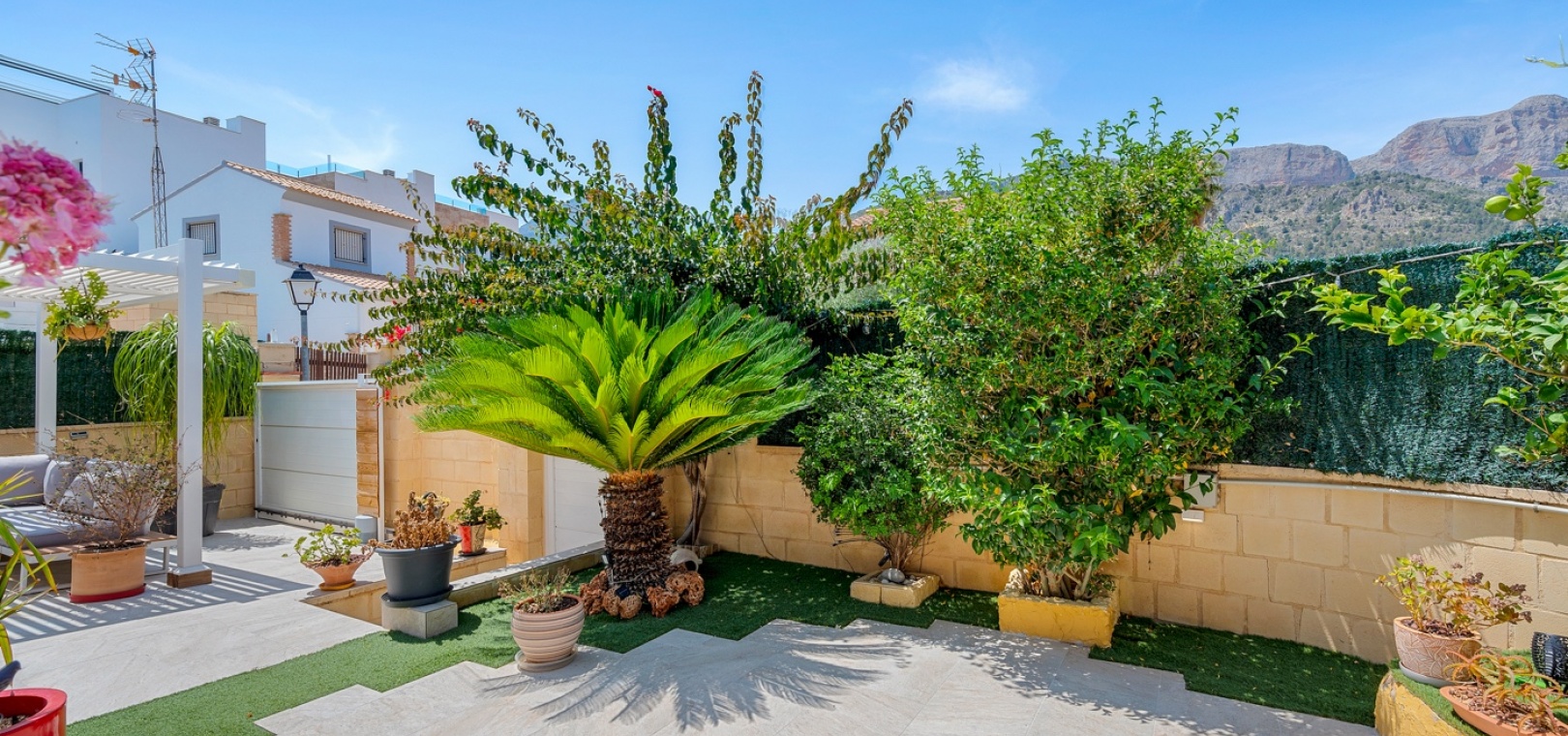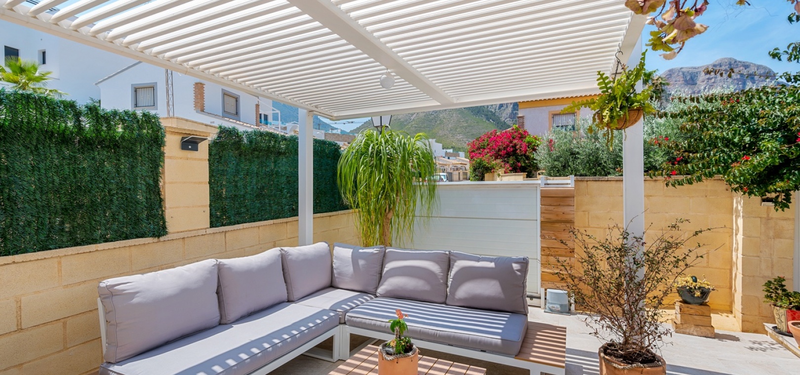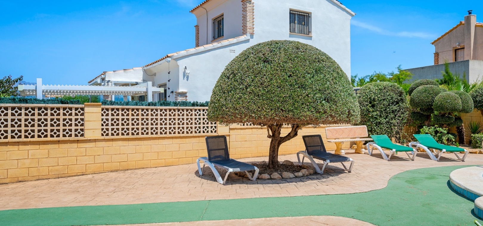 La villa fait partie d’une communauté, et juste à côté de la maison se trouve une belle piscine commune avec espace de détente.