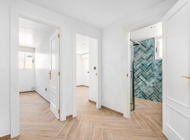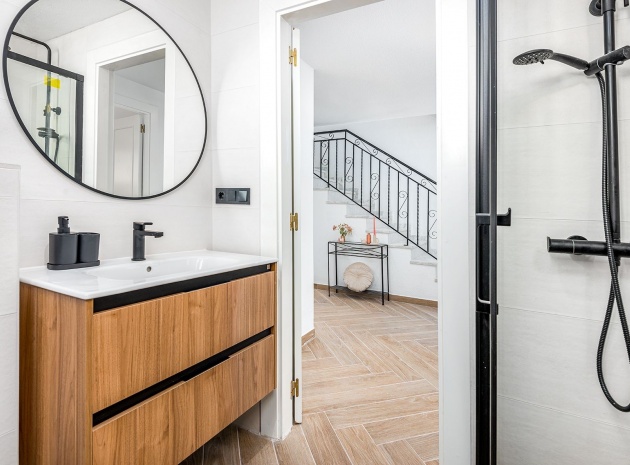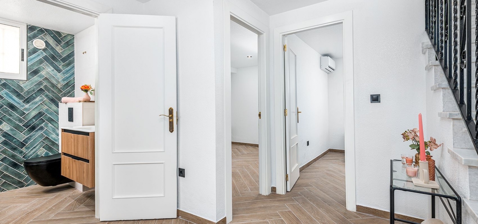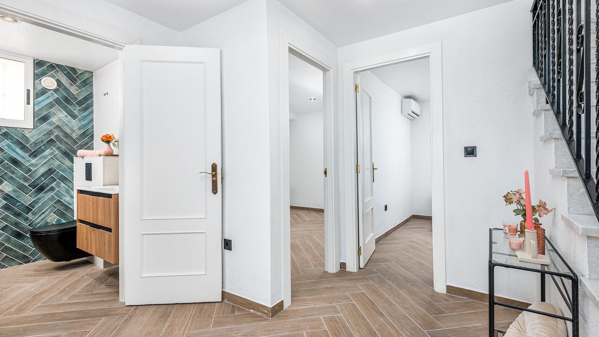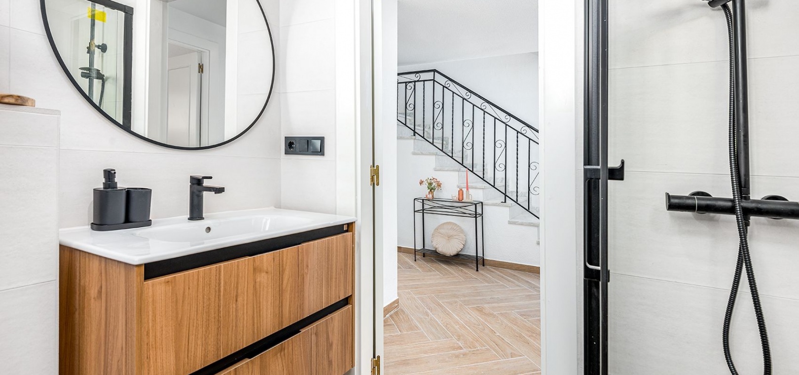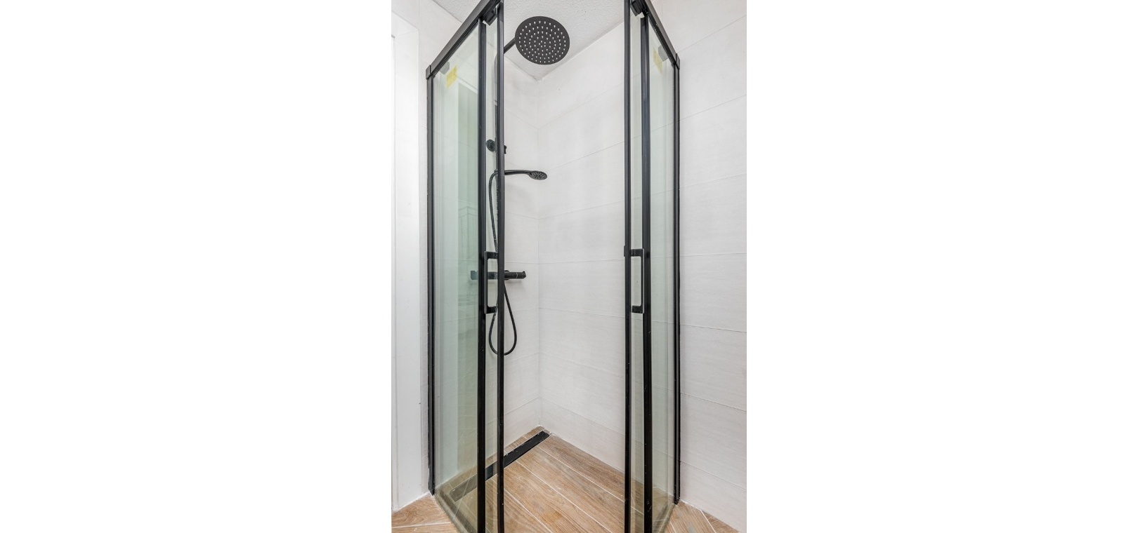 Au niveau inférieur, vous trouverez quatre chambres : trois doubles et une simple. La suite parentale comprend une élégante salle de douche attenante, tandis qu'une deuxième salle de bains moderne avec douche à l'italienne dessert les autres chambres.