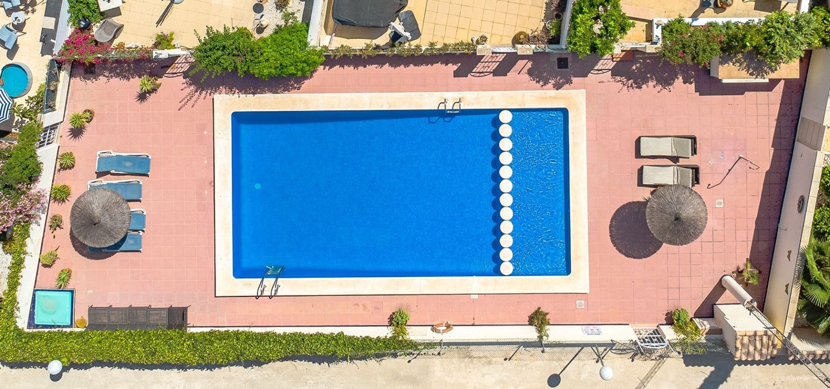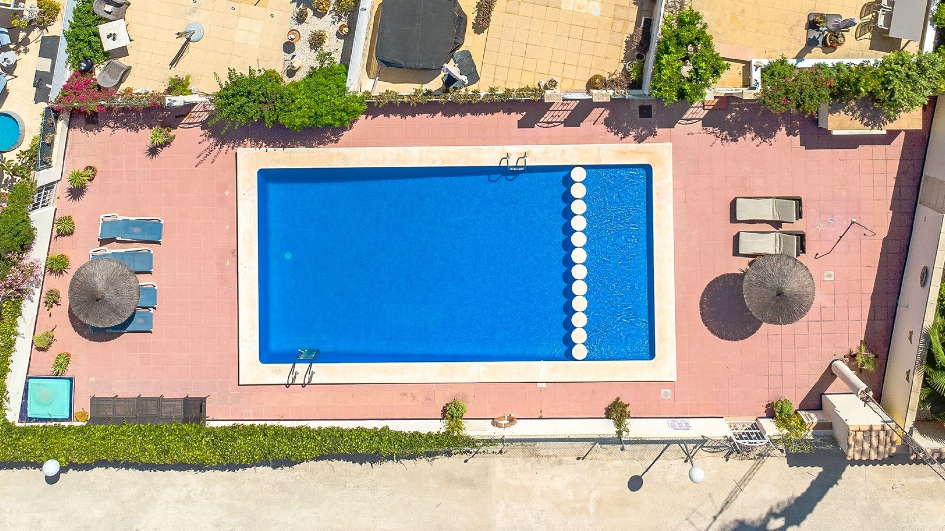 Les espaces extérieurs sont un véritable atout. Un solarium privé sur le toit offre une vue panoramique sur les montagnes et constitue l'endroit idéal pour bronzer ou se détendre. La propriété dispose également d'un jardin privé, d'une allée et d'un accès à une piscine commune magnifiquement entretenue, partagée par seulement sept maisons.