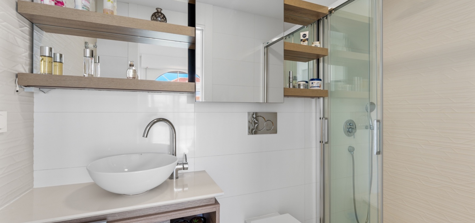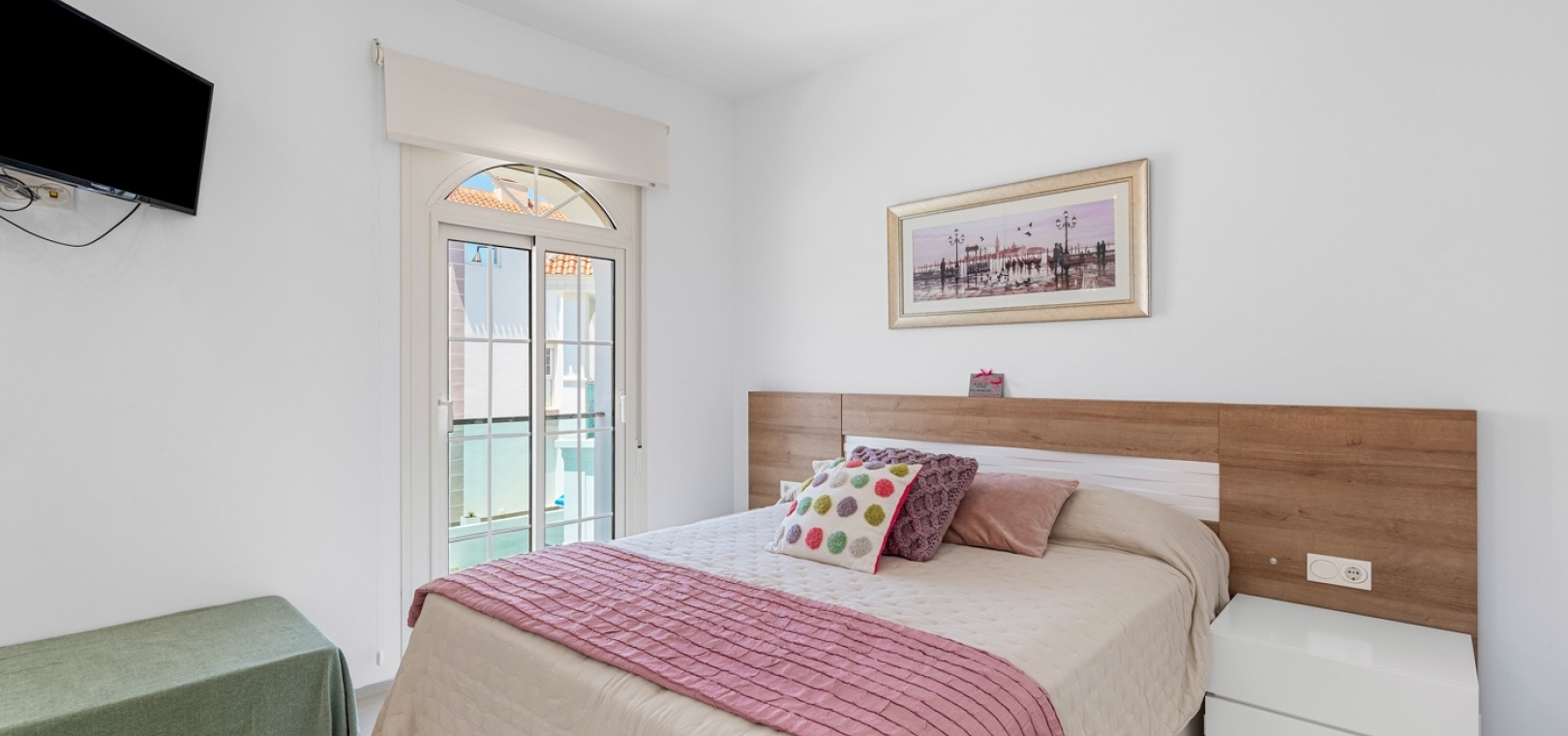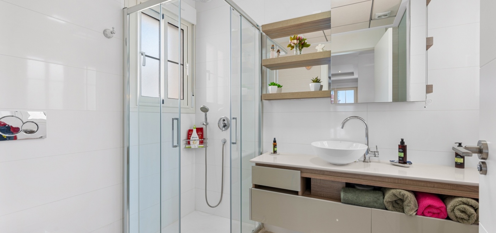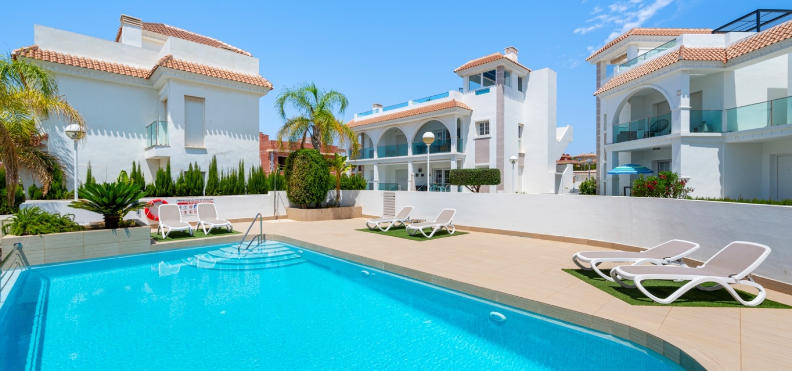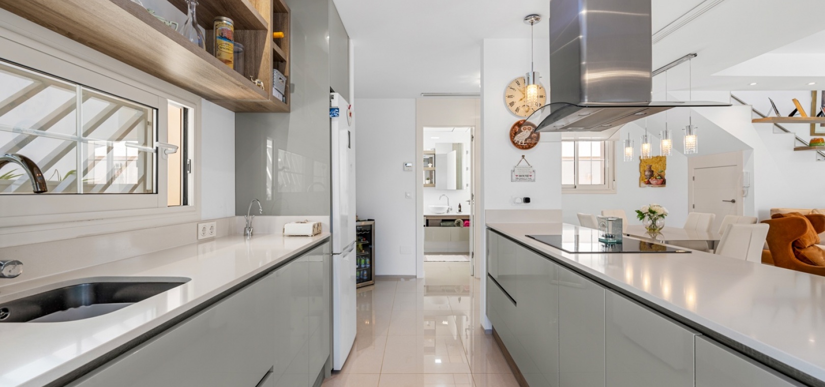 Située sur un terrain privé de 350 m², la villa dispose de 122 m² de surface construite sur deux étages, ainsi que d'un solarium sur le toit de 45 m² accessible indépendamment de la terrasse supérieure, parfait pour bronzer, se détendre ou se divertir.