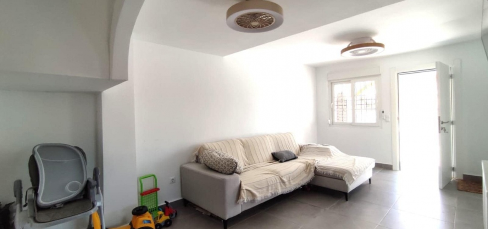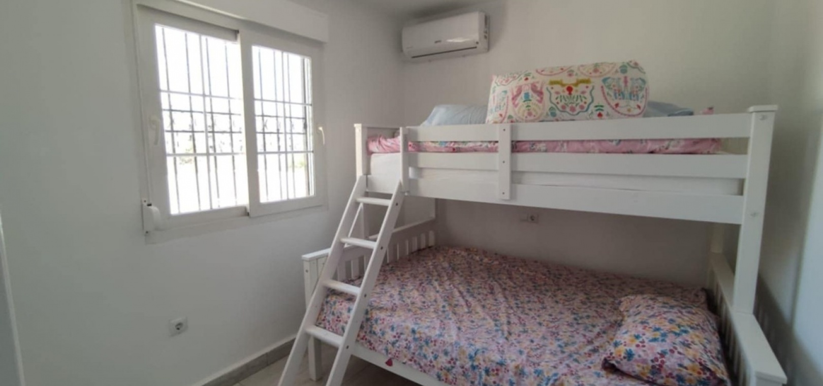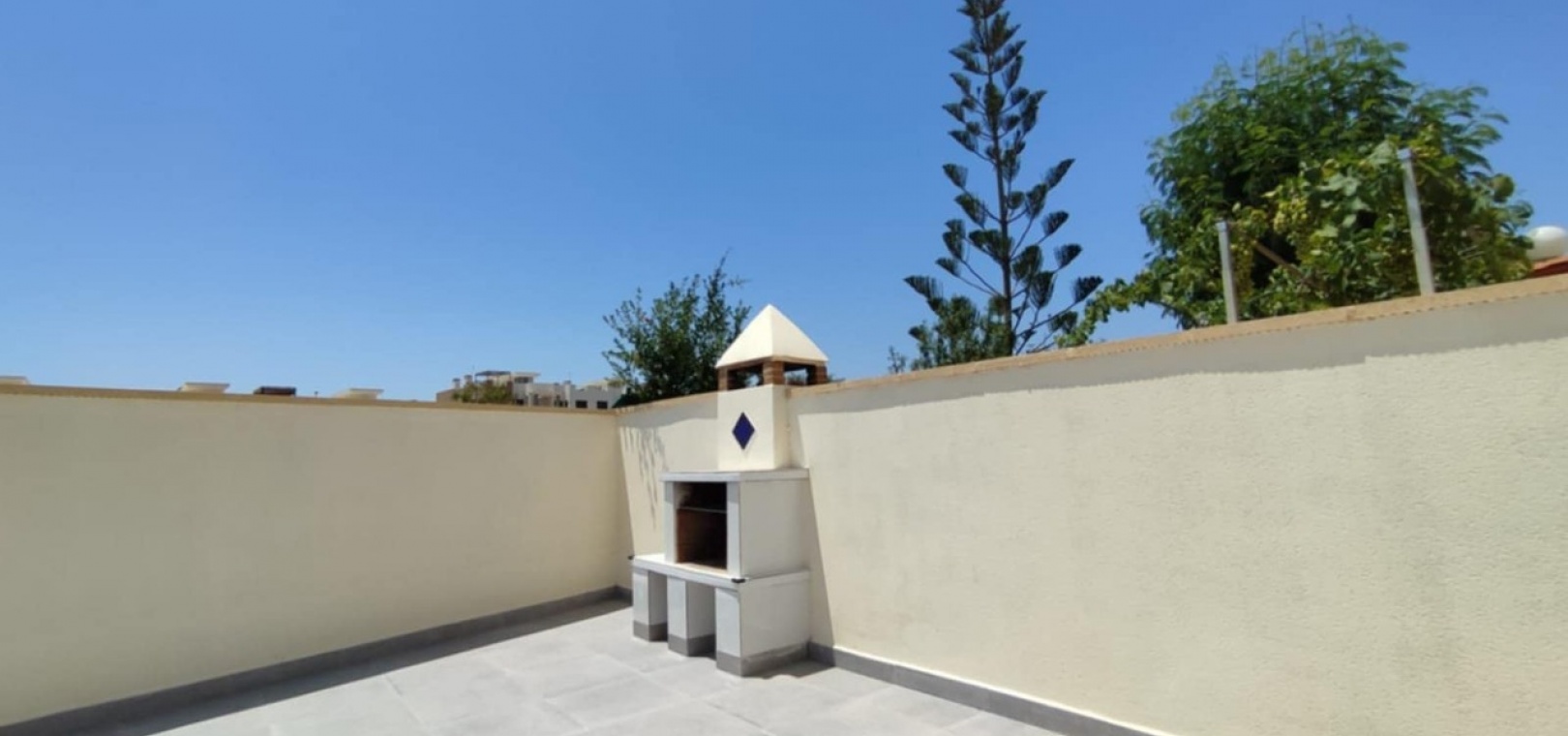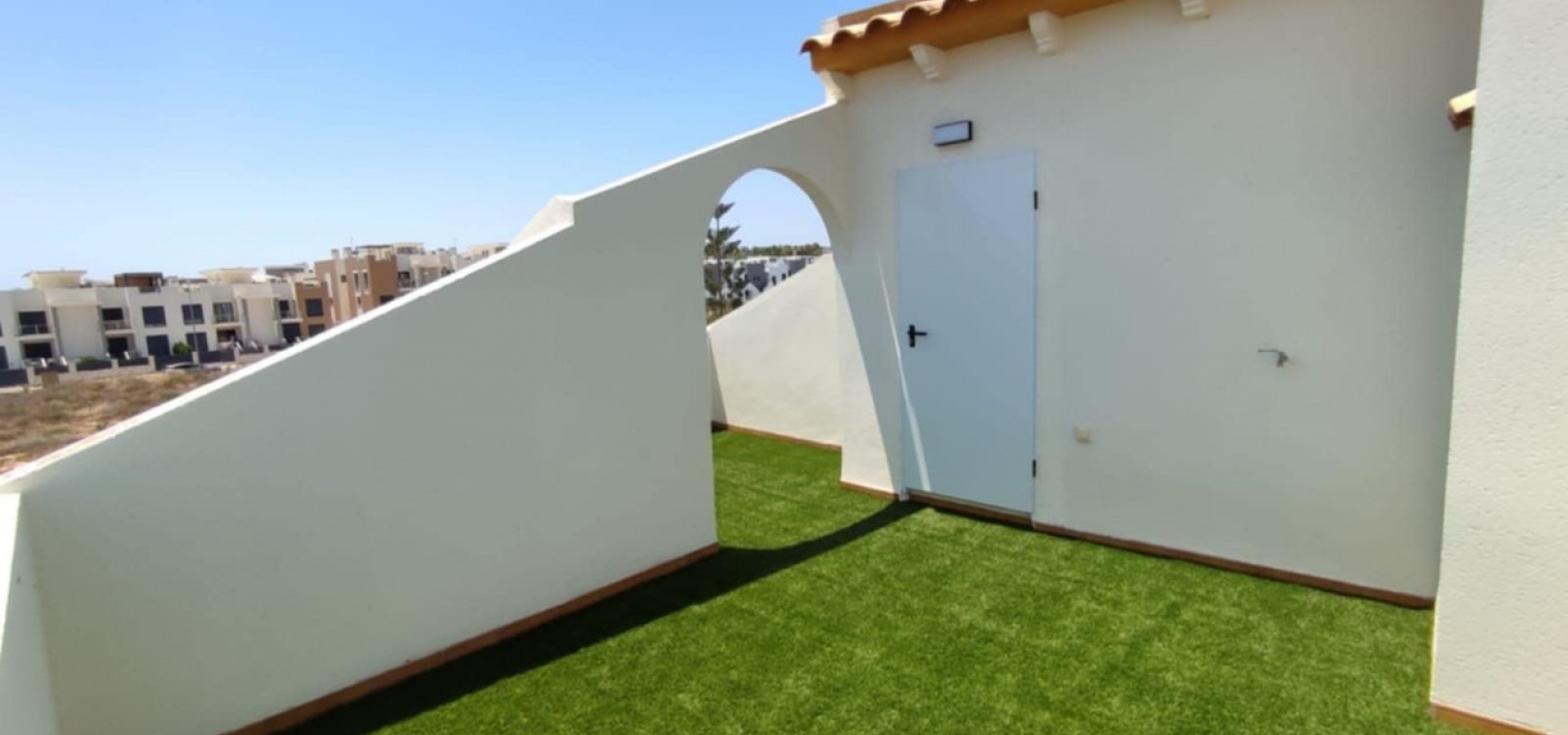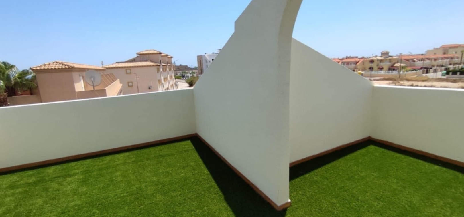 Nous sommes heureux de vous proposer cette magnifique villa quadruple rénovée avec goût. Elle comprend deux chambres doubles, deux salles de bains et une grande piscine privée chauffée. Elle est équipée de ventilateurs de plafond et de la climatisation, ainsi que d'une cuisine ouverte moderne avec spots et portes-fenêtres donnant sur la piscine. Cette dernière est vitrée pour éviter les chutes d'animaux ou d'enfants. Au rez-de-chaussée, une salle de douche et à l'étage, des salles de bains familiales carrelées de marbre moderne, sont à votre disposition. Les chambres sont climatisées et disposent de placards intégrés. La chambre principale donne sur un balcon ensoleillé avec vue sur la piscine. Au dernier étage, un solarium en gazon synthétique offre une vue imprenable sur les environs et la mer, accessible en 10 minutes à pied. La propriété se trouve à la frontière entre Playa Flamenca et La Zenia. Le centre commercial de La Zenia est à 5 minutes à pied, d'un côté, et le célèbre marché du samedi de Playa Flamenca à 5 minutes, de l'autre. Plusieurs parcours de golf de championnat sont accessibles en quelques minutes en voiture. Une superbe villa pour les vacances ou pour y vivre.