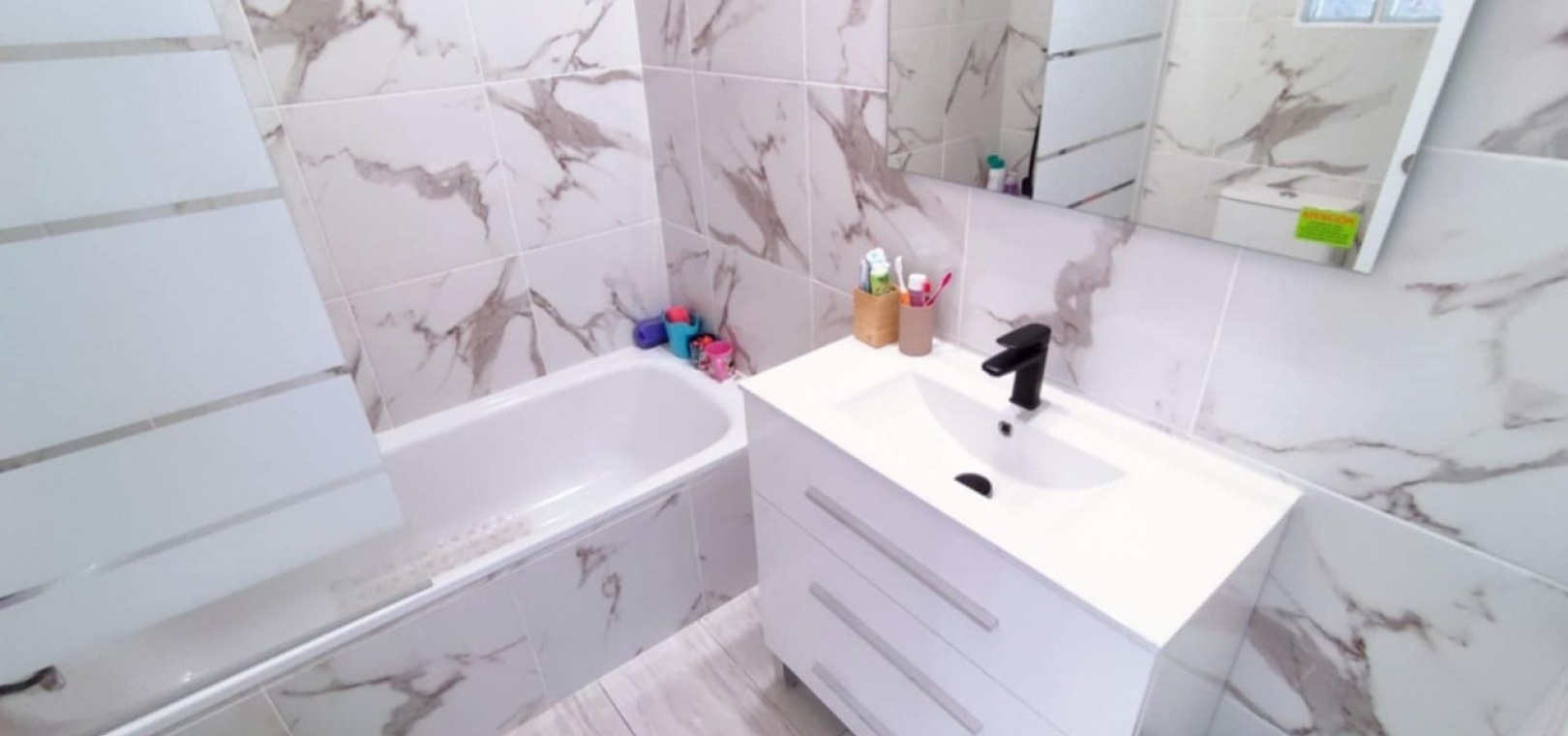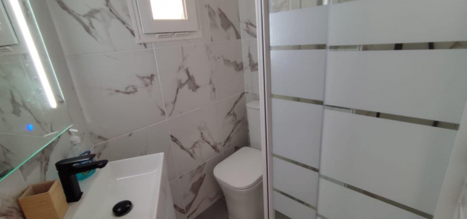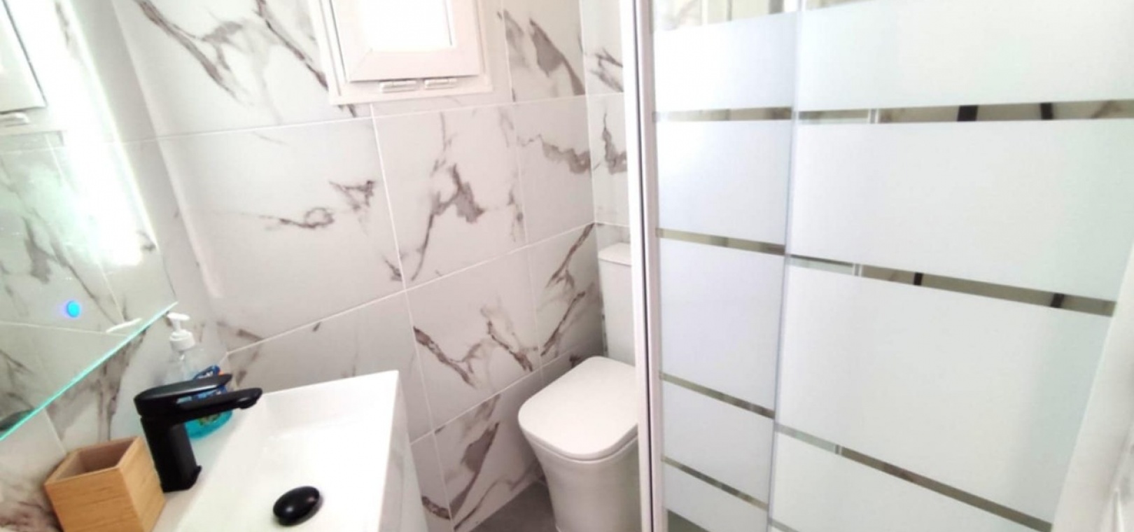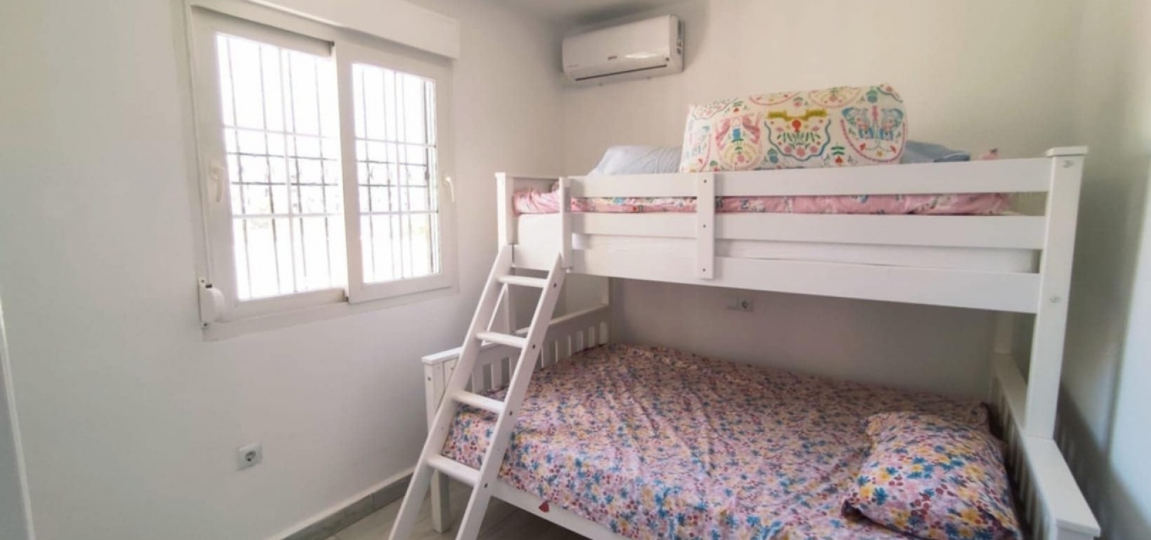 Nous sommes heureux de vous proposer cette magnifique villa quadruple rénovée avec goût. Elle comprend deux chambres doubles, deux salles de bains et une grande piscine privée chauffée. Elle est équipée de ventilateurs de plafond et de la climatisation, ainsi que d'une cuisine ouverte moderne avec spots et portes-fenêtres donnant sur la piscine. Cette dernière est vitrée pour éviter les chutes d'animaux ou d'enfants. Au rez-de-chaussée, une salle de douche et à l'étage, des salles de bains familiales carrelées de marbre moderne, sont à votre disposition. Les chambres sont climatisées et disposent de placards intégrés. La chambre principale donne sur un balcon ensoleillé avec vue sur la piscine. Au dernier étage, un solarium en gazon synthétique offre une vue imprenable sur les environs et la mer, accessible en 10 minutes à pied. La propriété se trouve à la frontière entre Playa Flamenca et La Zenia. Le centre commercial de La Zenia est à 5 minutes à pied, d'un côté, et le célèbre marché du samedi de Playa Flamenca à 5 minutes, de l'autre. Plusieurs parcours de golf de championnat sont accessibles en quelques minutes en voiture. Une superbe villa pour les vacances ou pour y vivre.