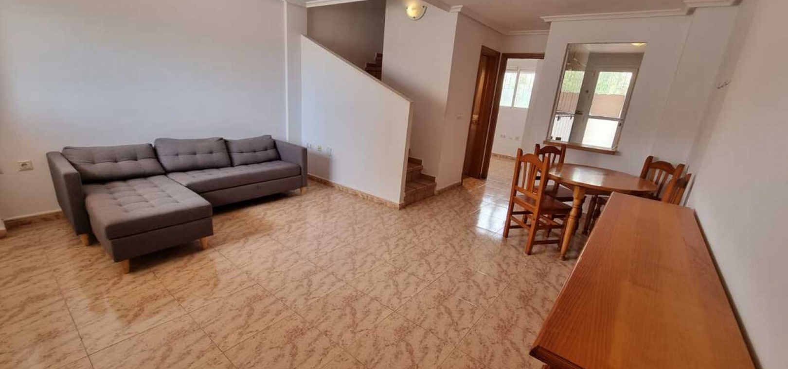 Nous vous présentons cette maison de ville triplex à Villamartín, Orihuela Costa, dans un charmant quartier résidentiel de seulement 9 logements. Profitez d'un emplacement privilégié, à seulement 3 km de la plage de La Zenia et à 5 minutes du centre commercial La Zenia Boulevard, à proximité de supermarchés, de restaurants et de tous les services nécessaires. La propriété dispose d'une piscine commune, accessible directement par l'arrière. Son orientation est assure lumière naturelle et chaleur tout au long de la journée. De plus, à l'avant de la maison, un grand patio vous permettra de garer votre véhicule ou simplement de profiter de bons moments en famille ou entre amis. À l'intérieur, dès l'entrée, vous trouverez un salon chaleureux, des toilettes invités, une petite chambre et une cuisine ouverte fonctionnelle avec accès à la terrasse arrière. De là, vous pourrez accéder à la piscine pour profiter du soleil et de la tranquillité. À l'étage supérieur, vous trouverez deux chambres : l'une avec salle de bain attenante et dressing, idéal pour tout organiser. Une autre salle de bain complète avec baignoire est également disponible. Et au dernier étage, un solarium, idéal pour bronzer ou simplement se détendre. Si vous cherchez une maison idéale pour vivre toute l'année ou pour profiter de vos vacances, ne manquez pas cette opportunité. Contactez-nous pour plus d'informations et planifier votre visite !
