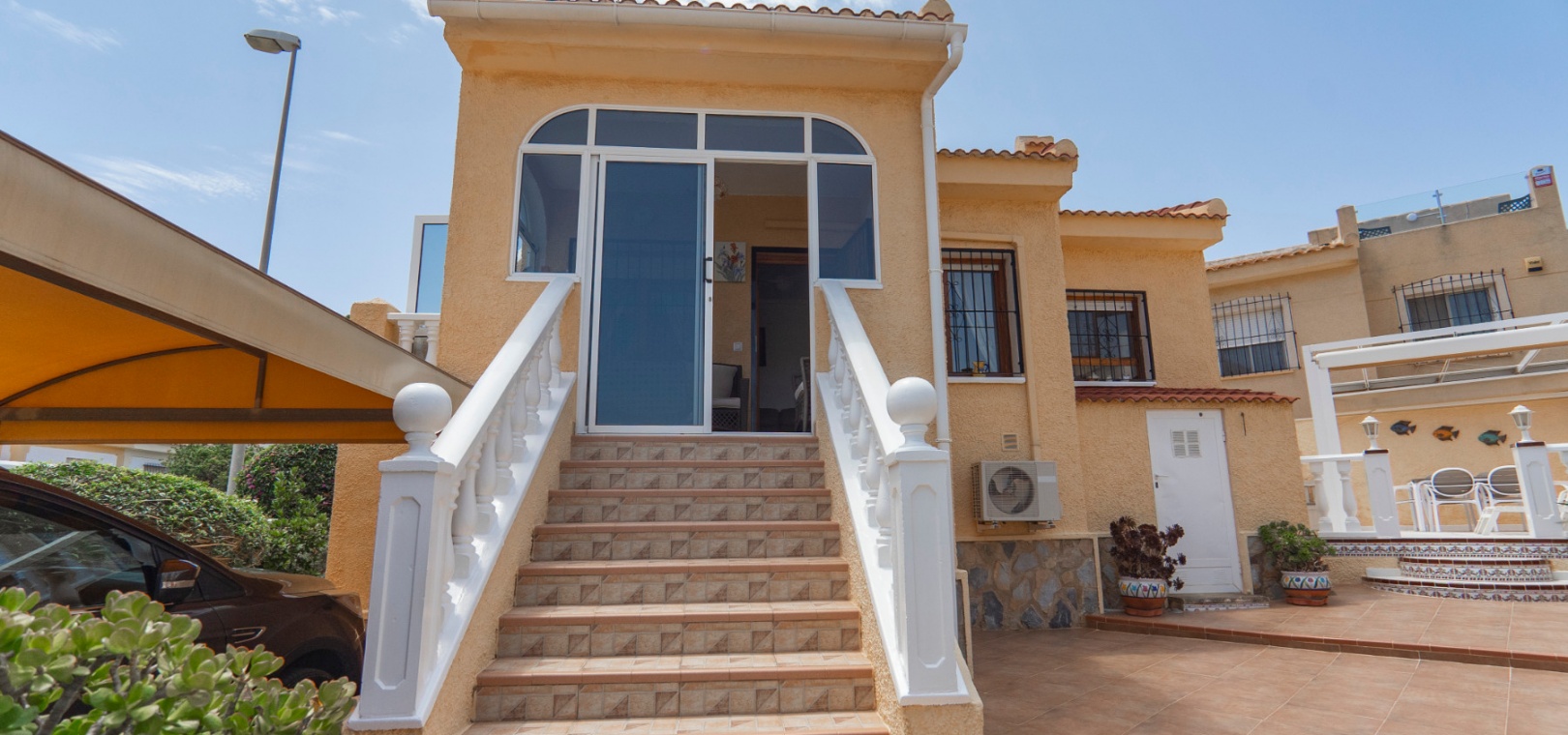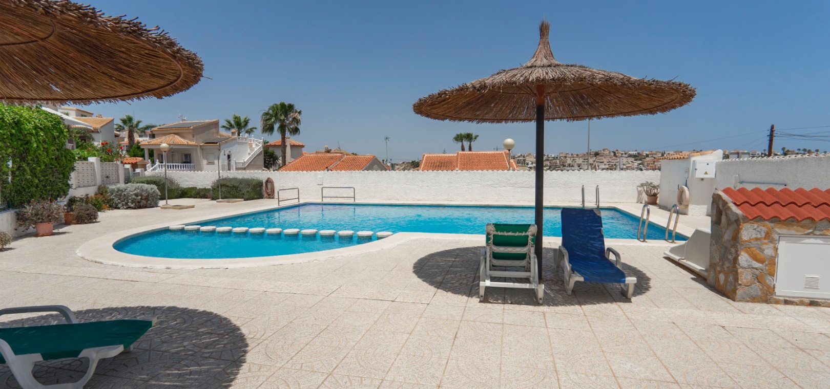 Nous vous proposons une belle villa individuelle comprenant deux chambres doubles lumineuses et deux salles de bains familiales, dont une attenante à la chambre principale. Elle comprend un grand salon/salle à manger lumineux, une terrasse vitrée et une cuisine américaine avec accès direct au jardin. Le vaste jardin offre de nombreux espaces pour se détendre ou recevoir amis et famille. Deux espaces de rangement et une allée couverte permettent de garder votre voiture au frais et à l'abri du soleil. Vous trouverez également un petit solarium sur le toit. La grande piscine commune est à quelques pas, tout comme le golf et le parc aquatique. Les plages Pavillon Bleu de Guardamar sont à seulement 15 minutes en voiture. Ce type de propriété est rare sur le marché ; une visite rapide est donc fortement recommandée.