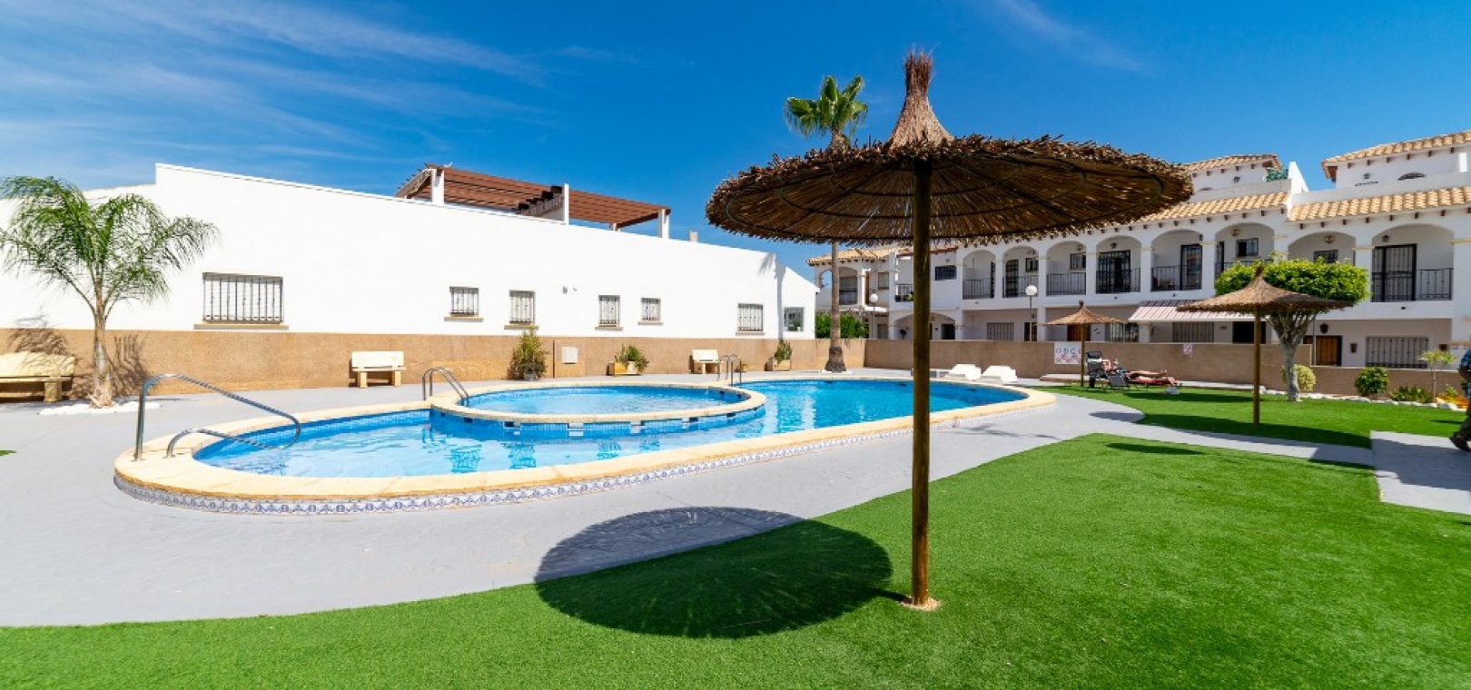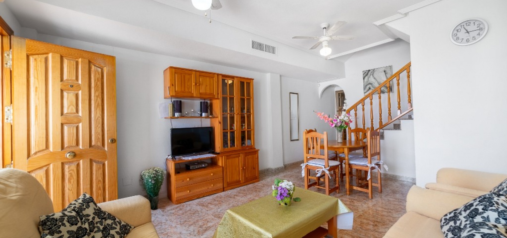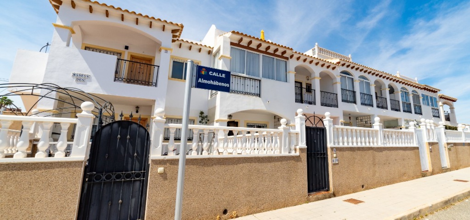 Maison de ville à vendre à La Cinuelica, Punta Prima, Orihuela Costa. Nous vous proposons à la vente une charmante maison de ville dans la résidence fermée La Cinuelica R10, qui offre à ses résidents une belle piscine commune avec solarium et des places de parking souterraines. La propriété se compose de 2 chambres de bonne taille avec placards intégrés, d'une salle de bain complète, d'un WC invités, d'un spacieux salon-salle à manger, d'une cuisine séparée avec patio, d'un balcon vitré, d'un jardin privé et d'un grand solarium avec vue dégagée sur la ville et la mer. Le parking est également inclus dans le prix. La résidence est située à quelques pas de toutes les commodités : supermarchés, centres commerciaux, bars, restaurants, pharmacies, banques et, bien sûr, les plages de sable d'Orihuela Costa sont également à proximité. Punta Prima est une station balnéaire touristique espagnole typique, située au sud de la Costa Blanca, à moins de 30 minutes des aéroports internationaux de Murcie, Corvera, et d'Alicante.