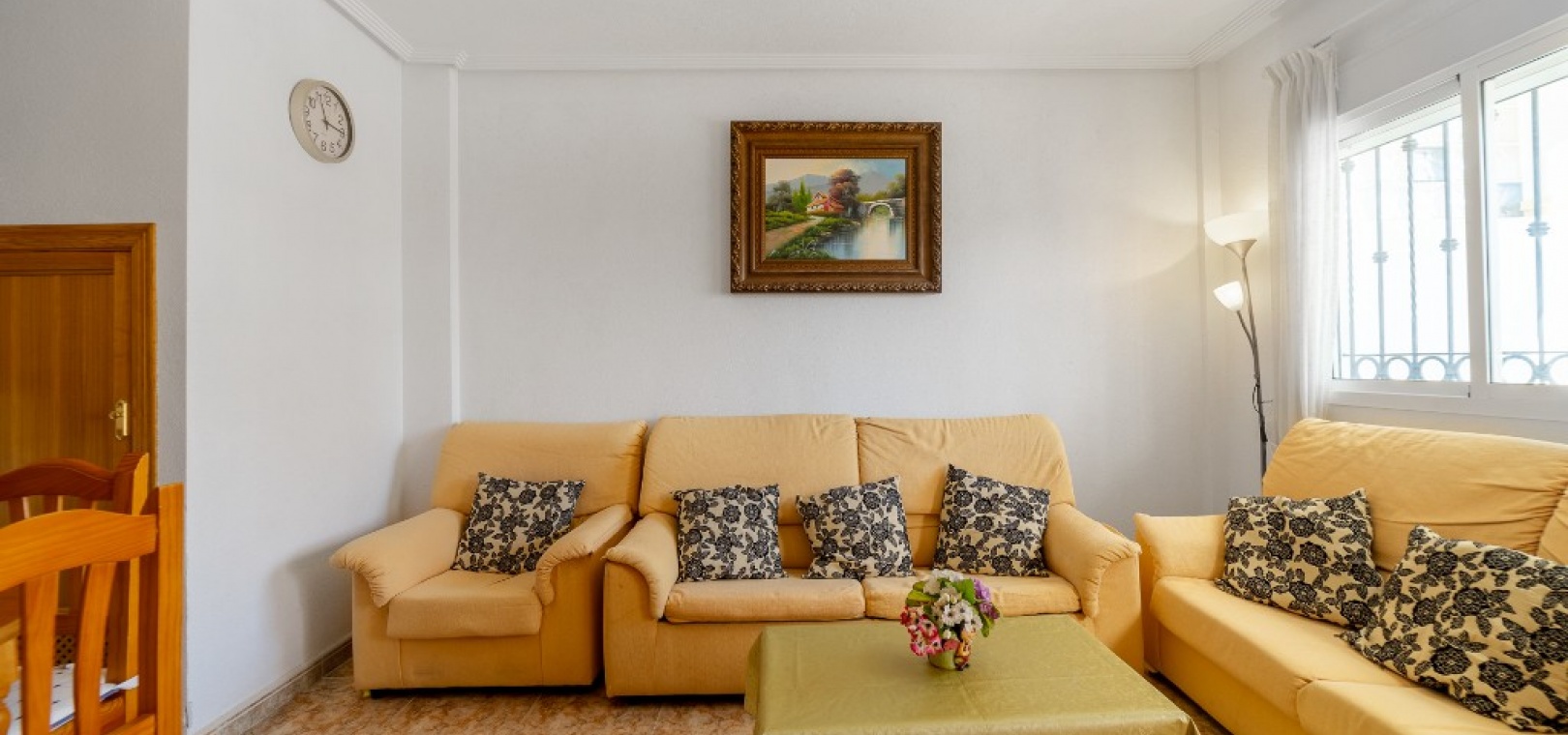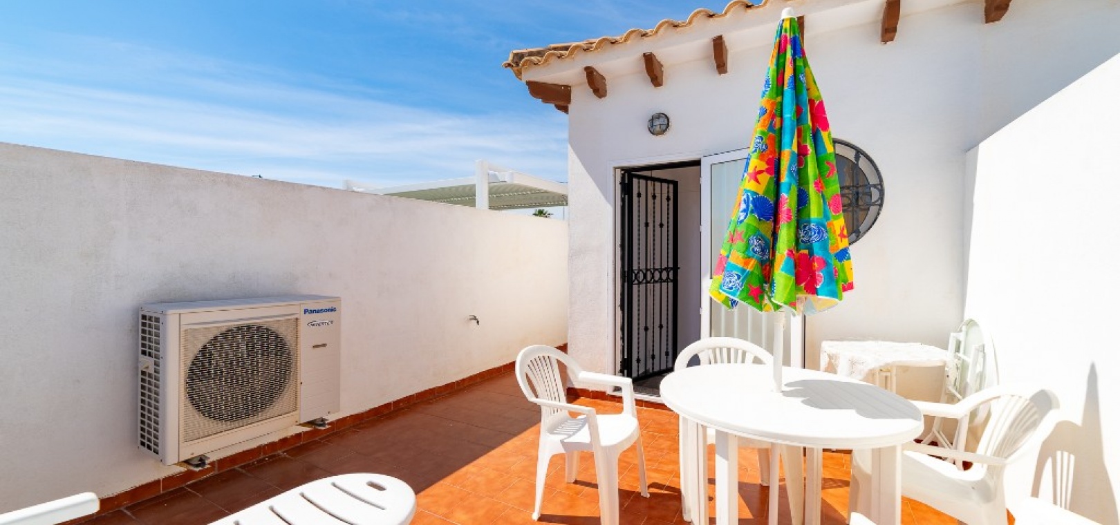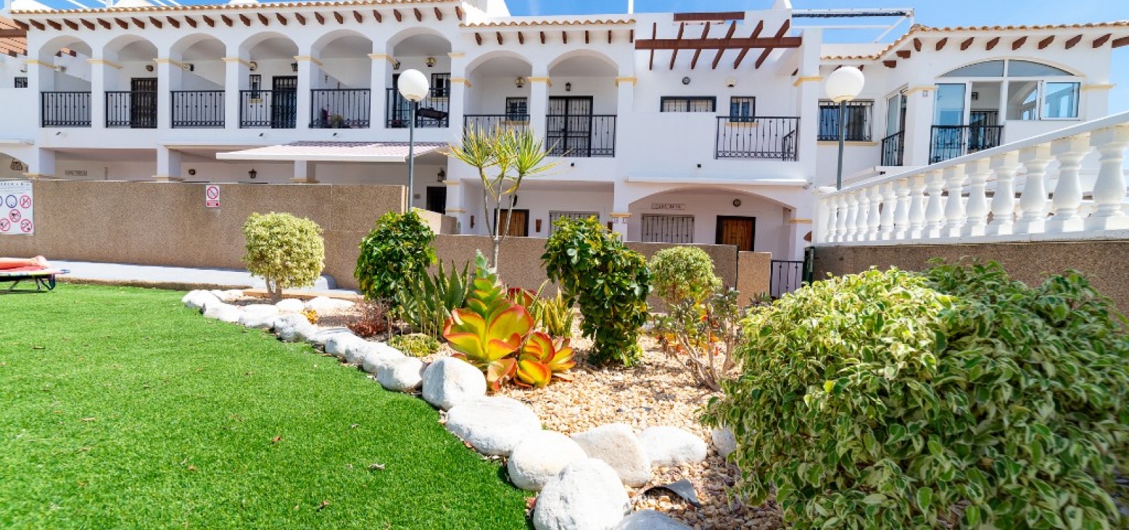 Maison de ville à vendre à La Cinuelica, Punta Prima, Orihuela Costa. Nous vous proposons à la vente une charmante maison de ville dans la résidence fermée La Cinuelica R10, qui offre à ses résidents une belle piscine commune avec solarium et des places de parking souterraines. La propriété se compose de 2 chambres de bonne taille avec placards intégrés, d'une salle de bain complète, d'un WC invités, d'un spacieux salon-salle à manger, d'une cuisine séparée avec patio, d'un balcon vitré, d'un jardin privé et d'un grand solarium avec vue dégagée sur la ville et la mer. Le parking est également inclus dans le prix. La résidence est située à quelques pas de toutes les commodités : supermarchés, centres commerciaux, bars, restaurants, pharmacies, banques et, bien sûr, les plages de sable d'Orihuela Costa sont également à proximité. Punta Prima est une station balnéaire touristique espagnole typique, située au sud de la Costa Blanca, à moins de 30 minutes des aéroports internationaux de Murcie, Corvera, et d'Alicante.
