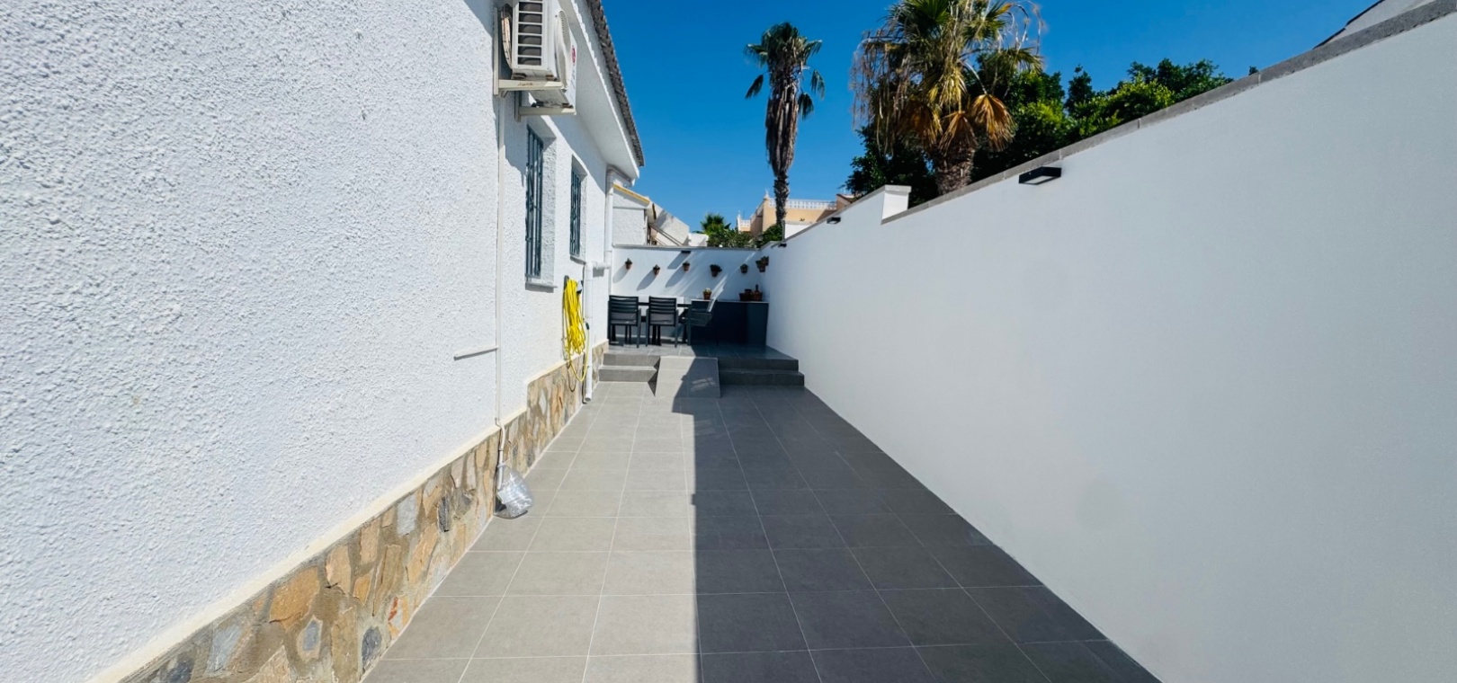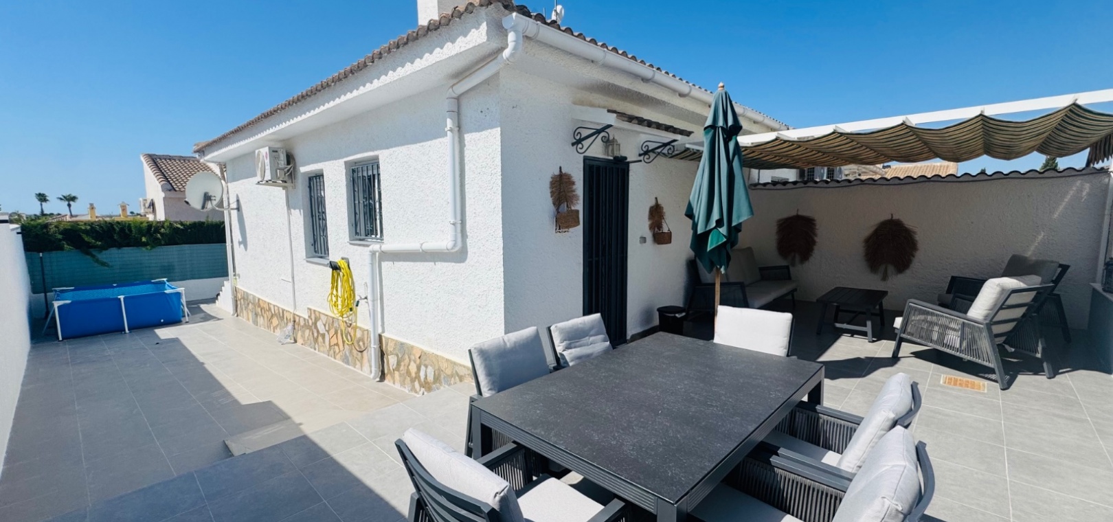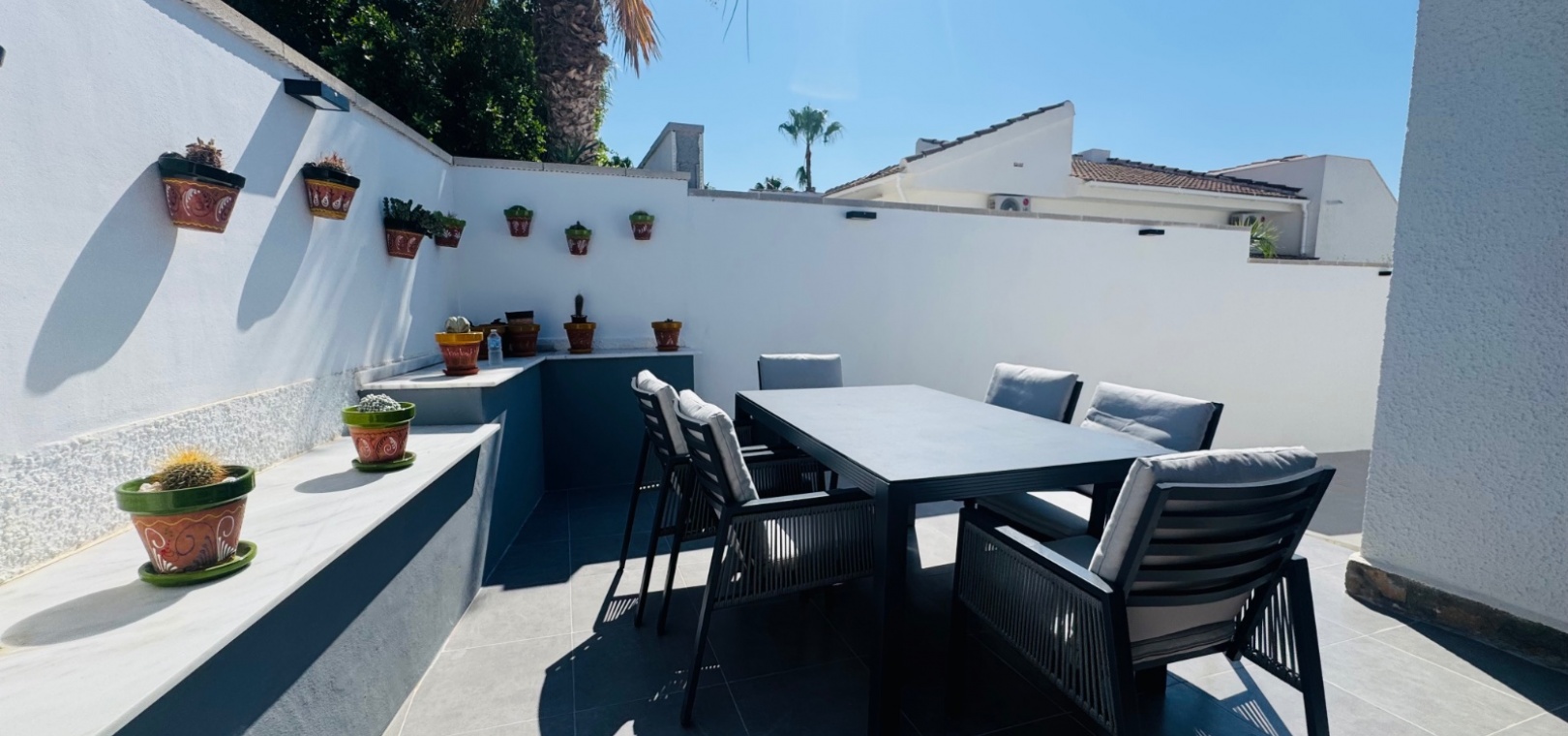 Découvrez ce charmant bungalow mitoyen de deux chambres situé dans le quartier prisé de Pueblo Bravo à Ciudad Quesada. Idéalement située à seulement 500 mètres des commodités et à seulement 3 km du golf de La Marquesa, cette propriété allie parfaitement confort, commodité et charme méditerranéen. Profitez d'une spacieuse terrasse carrelée, idéale pour les repas en plein air et la détente. La maison dispose d'un séjour lumineux, d'une cuisine entièrement équipée et de deux chambres spacieuses, pour un séjour confortable. Dotée d'une entrée sécurisée et d'éléments décoratifs de charme, cette propriété est idéale comme résidence secondaire, investissement locatif ou résidence principale. Caractéristiques principales : 2 chambres et 1 salle de bain - Aménagement confortable avec beaucoup de lumière naturelle Bungalow en terrasse - Intimité accrue et espace extérieur supplémentaire Terrasse carrelée spacieuse - Peu d'entretien, parfaite pour la vie en plein air À distance de marche des commodités - À seulement 0,5 mètre des magasins, bars et restaurants Le rêve des amateurs de golf - À seulement 3 km du parcours de golf de La Marquesa Entrée sécurisée et fermée - Tranquillité d'esprit avec un cadre privé À proximité des plages - À 10 minutes en voiture du magnifique littoral de Guardamar Excellente opportunité d'investissement - Idéal pour les locations ou une maison de vacances Ne manquez pas cette opportunité fantastique ! Contactez-nous dès aujourd'hui pour organiser une visite.