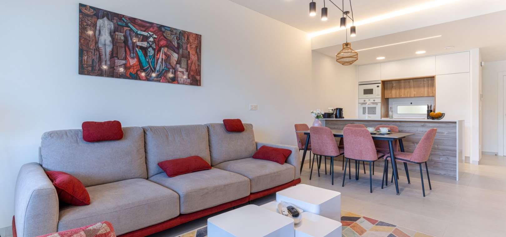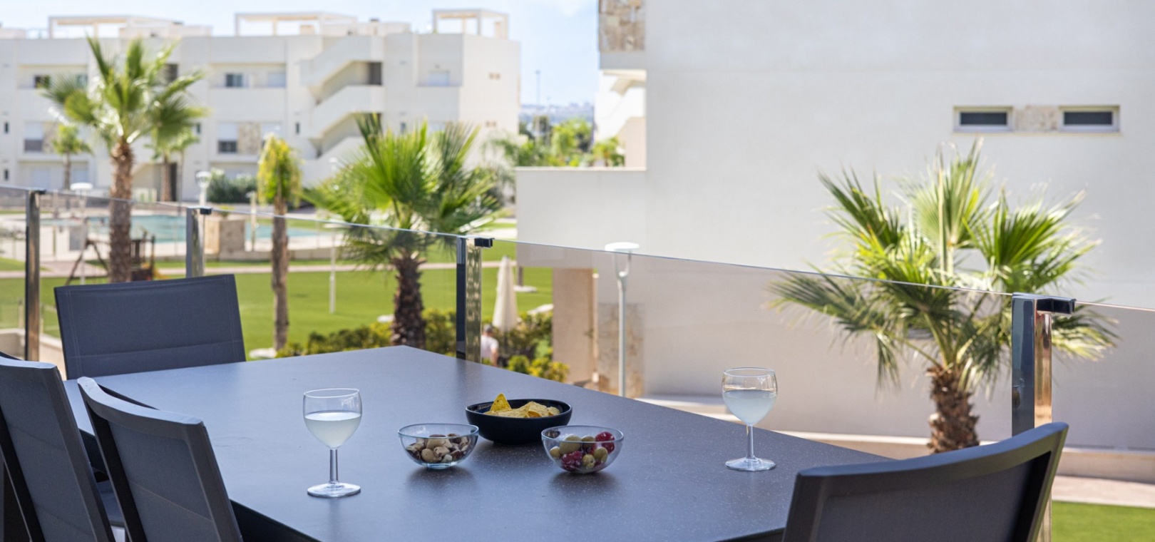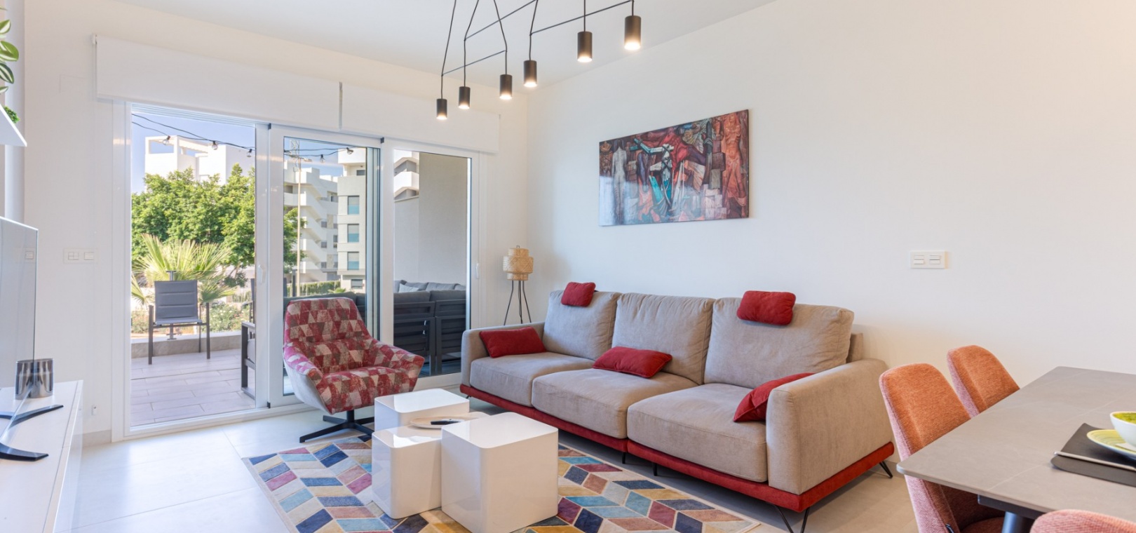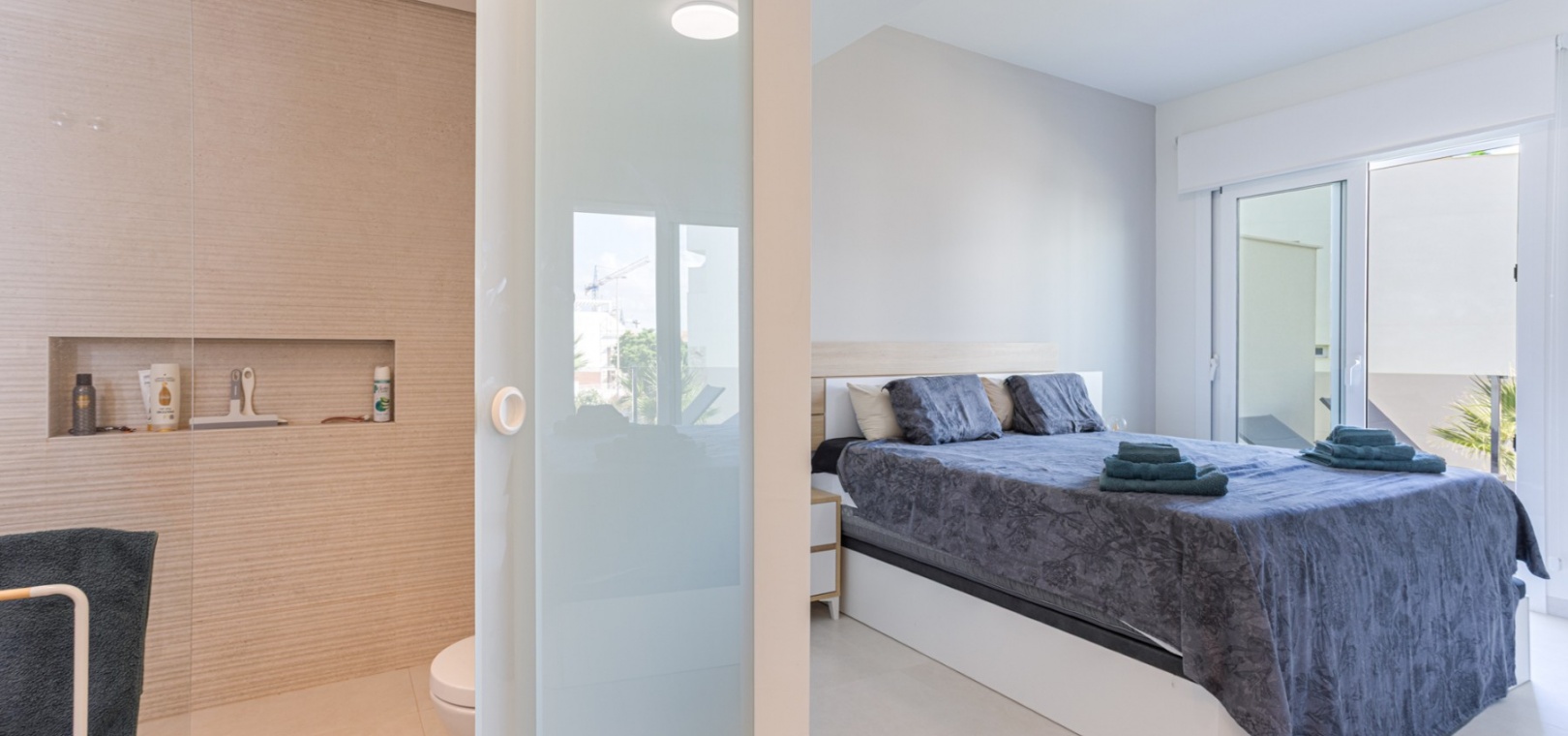 La cuisine ouverte est entièrement équipée d'appareils électroménagers modernes et s'intègre dans un spacieux et chaleureux salon-salle à manger, idéal pour passer des moments en famille ou entre amis. Le salon s'ouvre sur une terrasse privée exposée sud-ouest avec vue sur la piscine, idéale pour se détendre au coucher du soleil et profiter du climat chaud de la Costa Blanca toute l'année.
