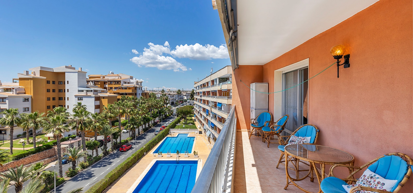 Ce magnifique appartement au cinquième étage est situé dans le quartier recherché de Rocío del Mar, à Punta Prima. Orienté plein sud, il offre une lumière naturelle abondante et une vue imprenable sur la mer.