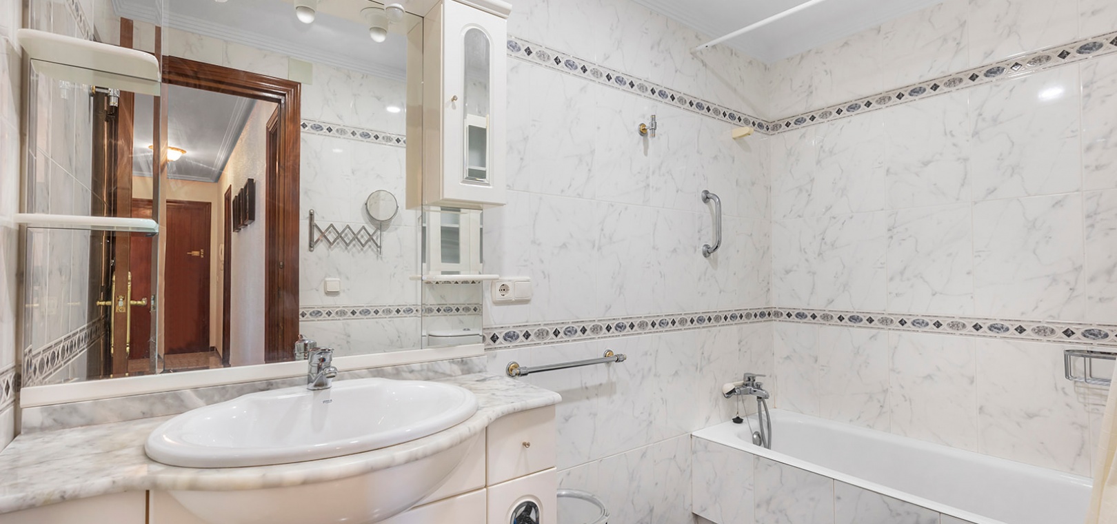 110 m² de surface construite 2 chambres spacieuses 2 salles de bain complètes Salon-salle à manger lumineux Cuisine entièrement équipée Vendu entièrement meublé Ascenseur dans l'immeuble Parking privé couvert Jardins communautaires Double piscine et espaces verts
