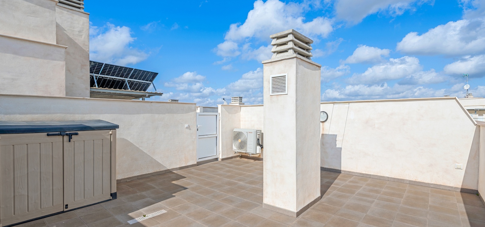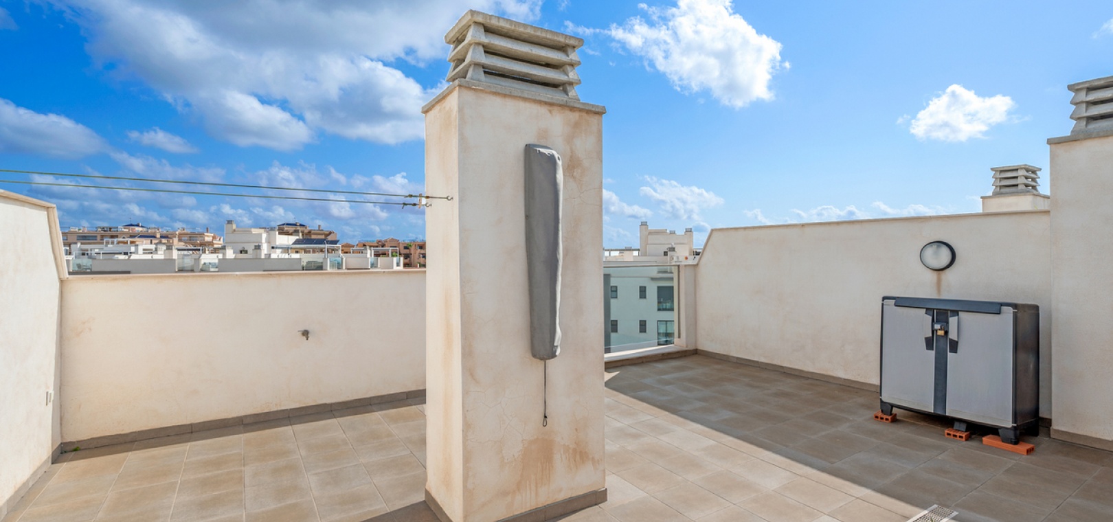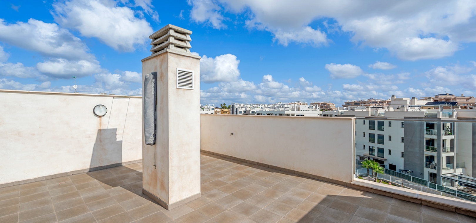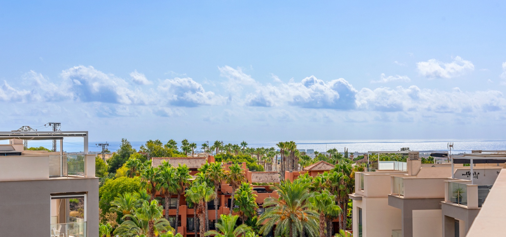 Les portes-fenêtres donnent sur une terrasse privée avec vue dégagée, et un grand solarium sur le toit offre un espace idéal pour bronzer et profiter de la vie en plein air toute l'année. La propriété comprend également une place de parking privée et réservée dans le garage souterrain sécurisé.