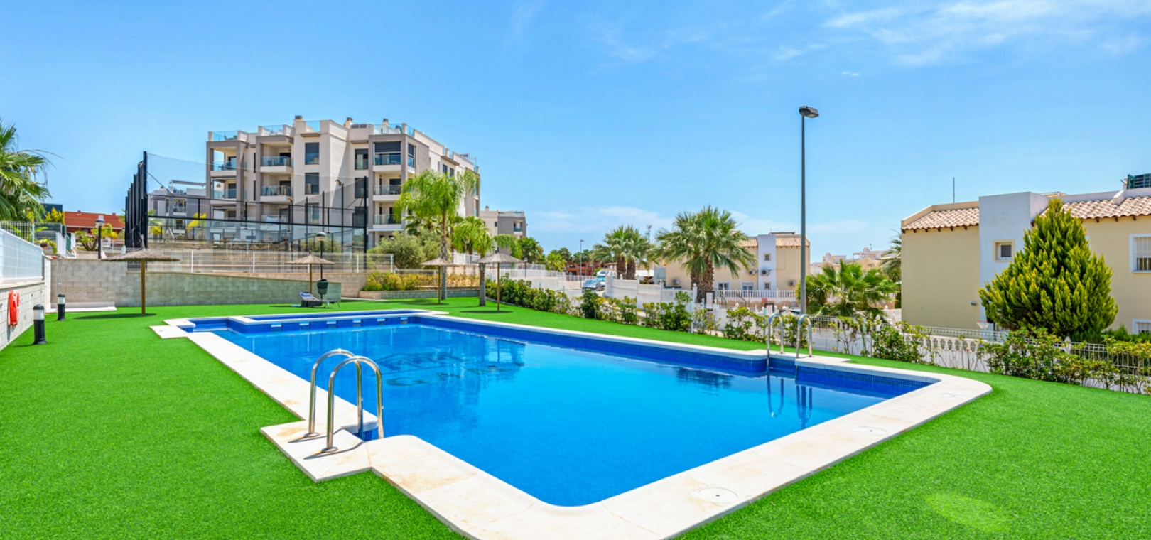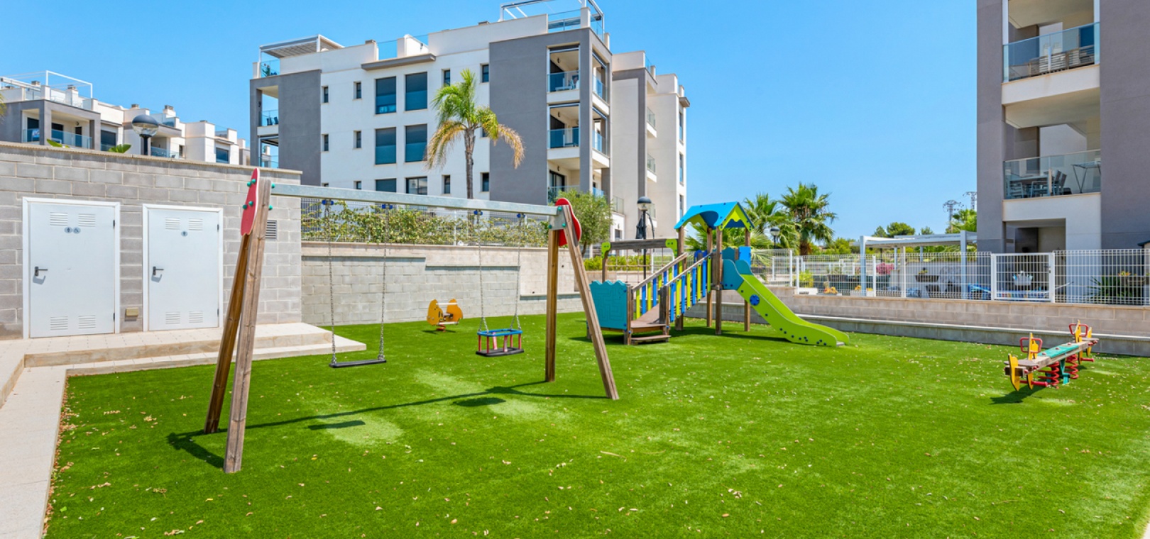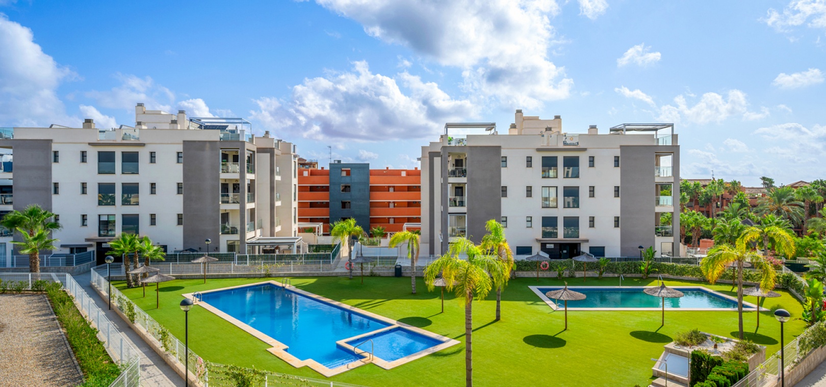 Les résidents bénéficient d'un accès à un espace commun bien entretenu avec trois piscines, une aire de jeux pour enfants, un court de tennis/padel et de magnifiques jardins paysagers.