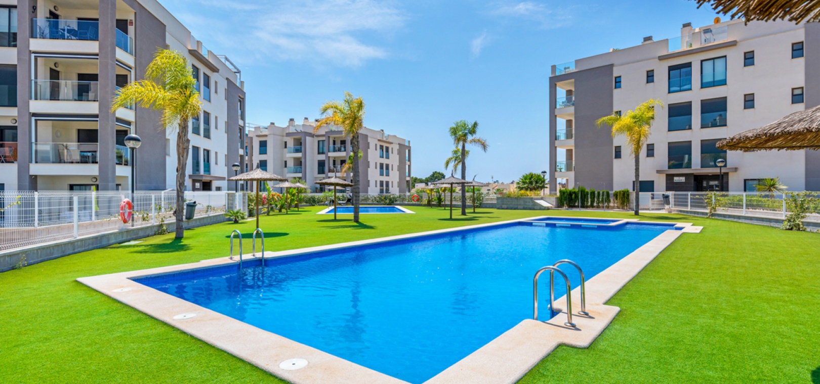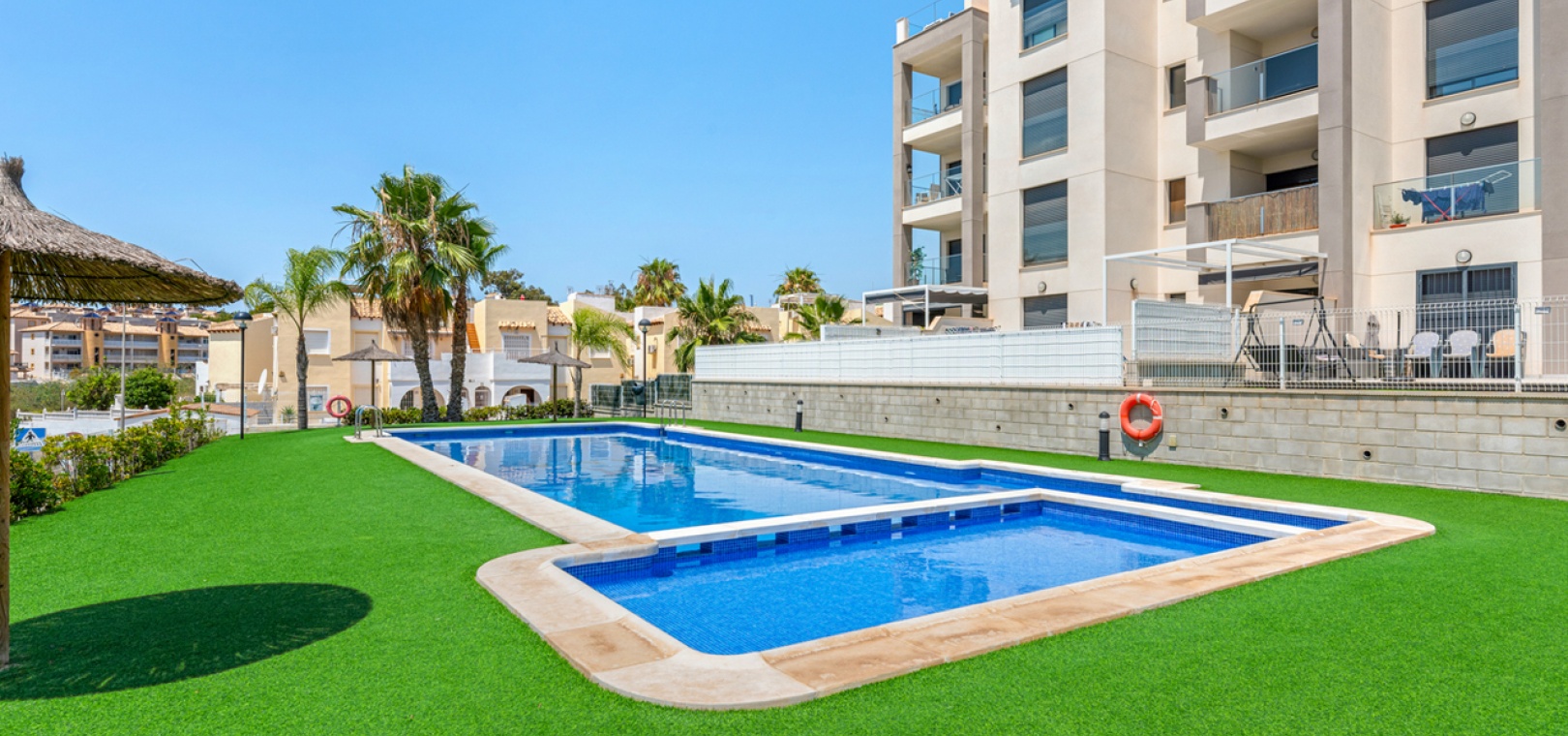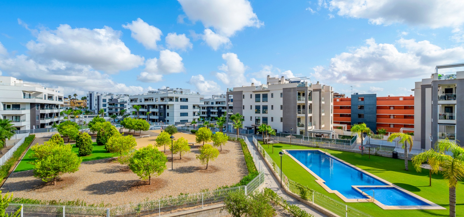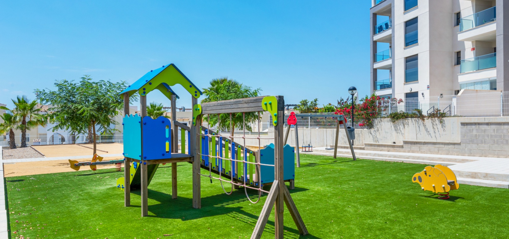 Les résidents bénéficient d'un accès à un espace commun bien entretenu avec trois piscines, une aire de jeux pour enfants, un court de tennis/padel et de magnifiques jardins paysagers.