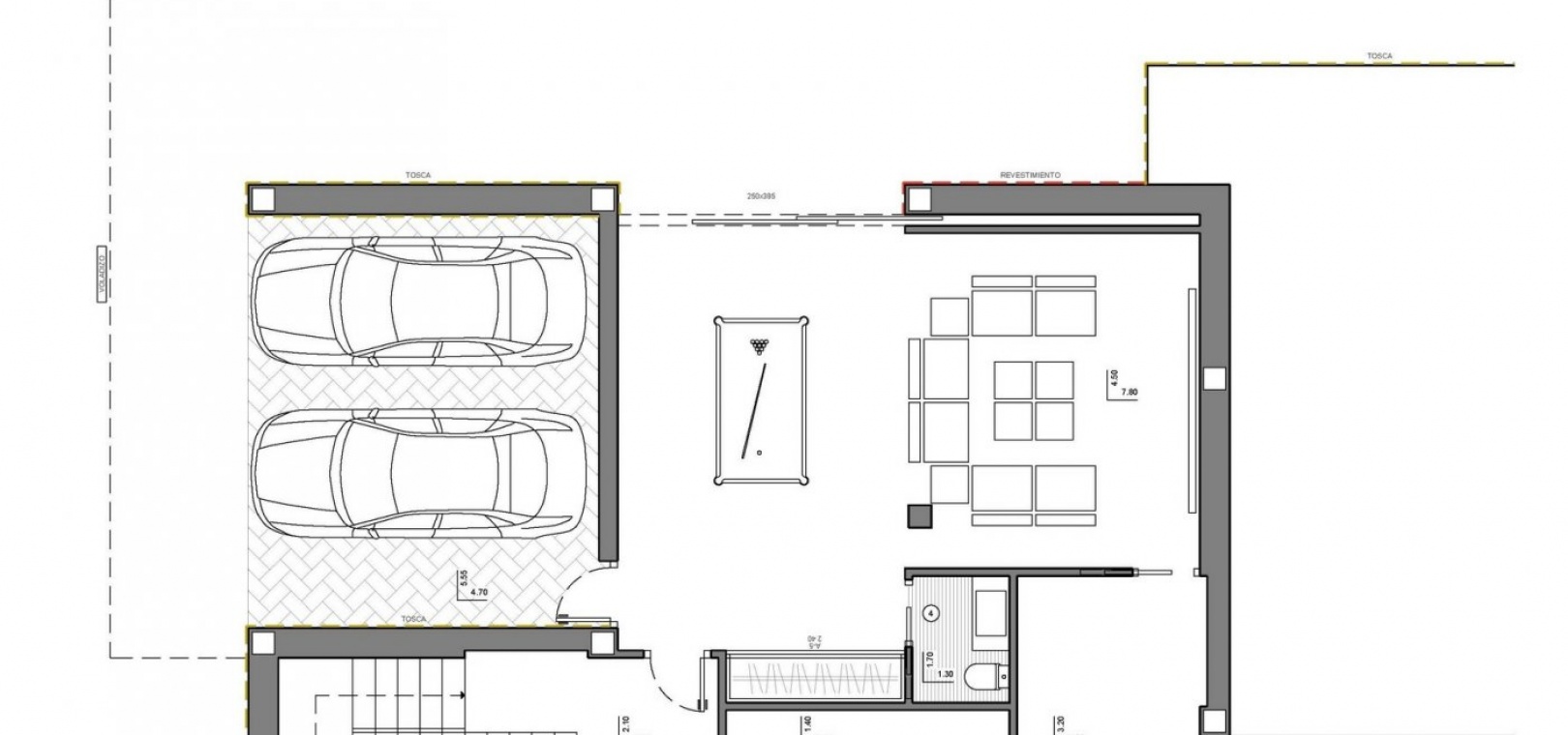 L'étage inférieur de cette villa est destiné aux loisirs et aux divertissements, à l'intérieur comme à l'extérieur. Cet étage est l'endroit où nous pouvons trouver un garage pour deux véhicules, une salle de bain, un débarras et un salon supplémentaire polyvalent qui mène directement sur la terrasse extérieure, avec une piscine et plusieurs espaces verts. Un espace luxueux pour profiter de votre temps libre, bronzer, regarder un film, nager ou simplement regarder la mer.