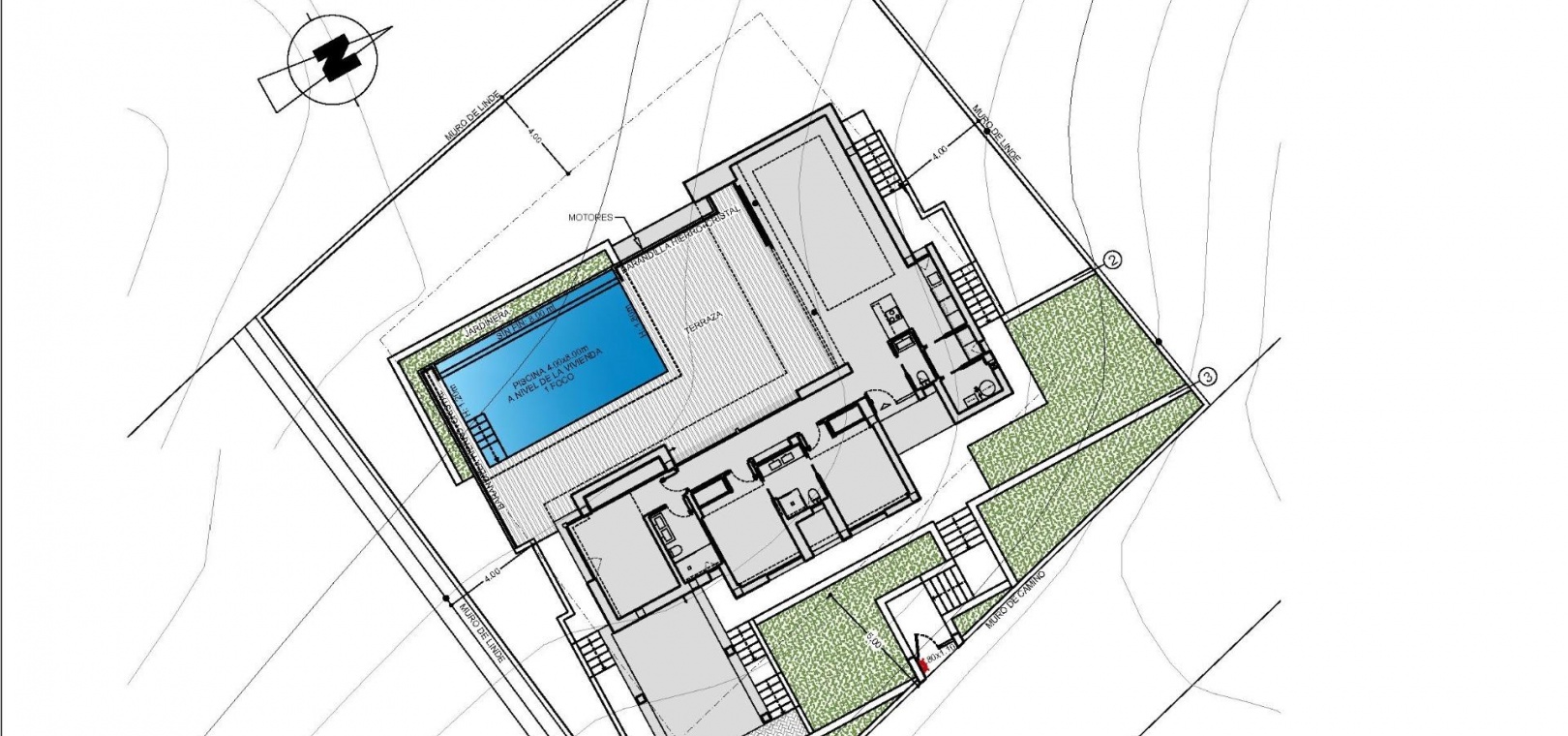 Conçue en modules ouverts en forme de L, la villa embrasse le jardin principal, où une impressionnante piscine à débordement se confond avec la mer. Un espace ouvert sur l'extérieur, qui invite à profiter du soleil et du climat méditerranéen, mais orienté de manière à obtenir un maximum d'intimité.