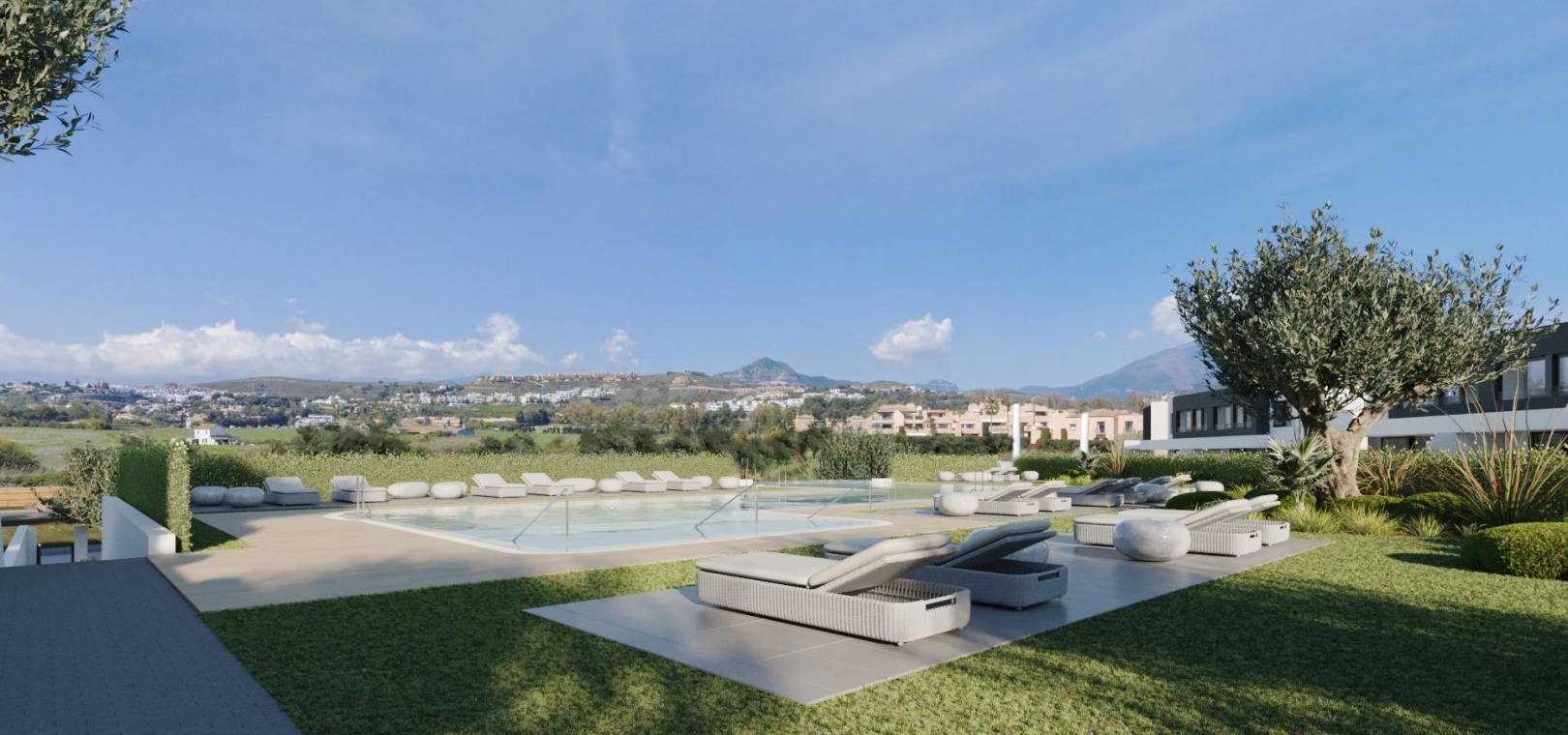 Les propriétés bénéficient d'excellentes vues et orientations pour profiter du soleil jusqu'au coucher du soleil et de magnifiques zones de jardins communs avec deux piscines d'eau salée, dont l'une pour les enfants et avec un accès de type plage.